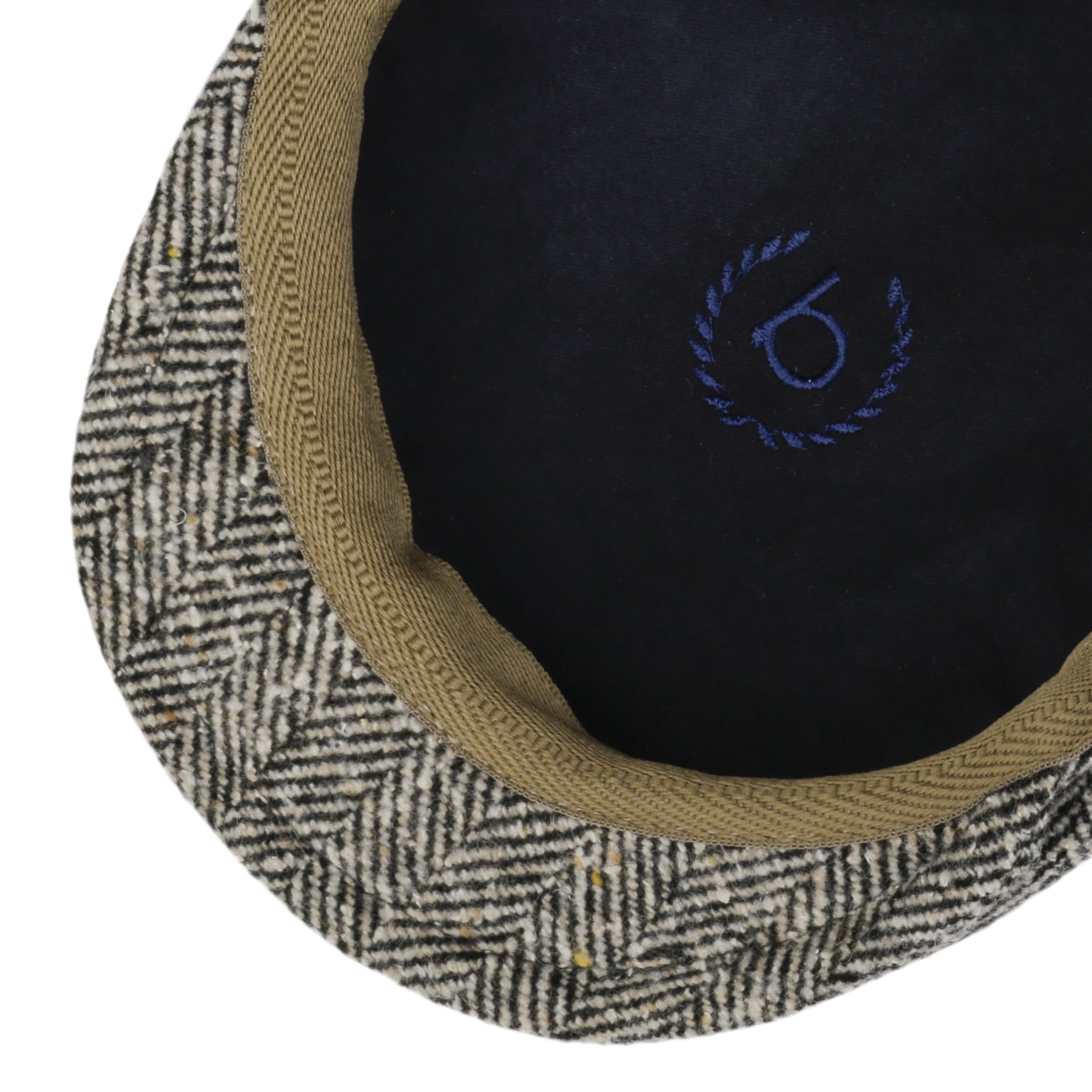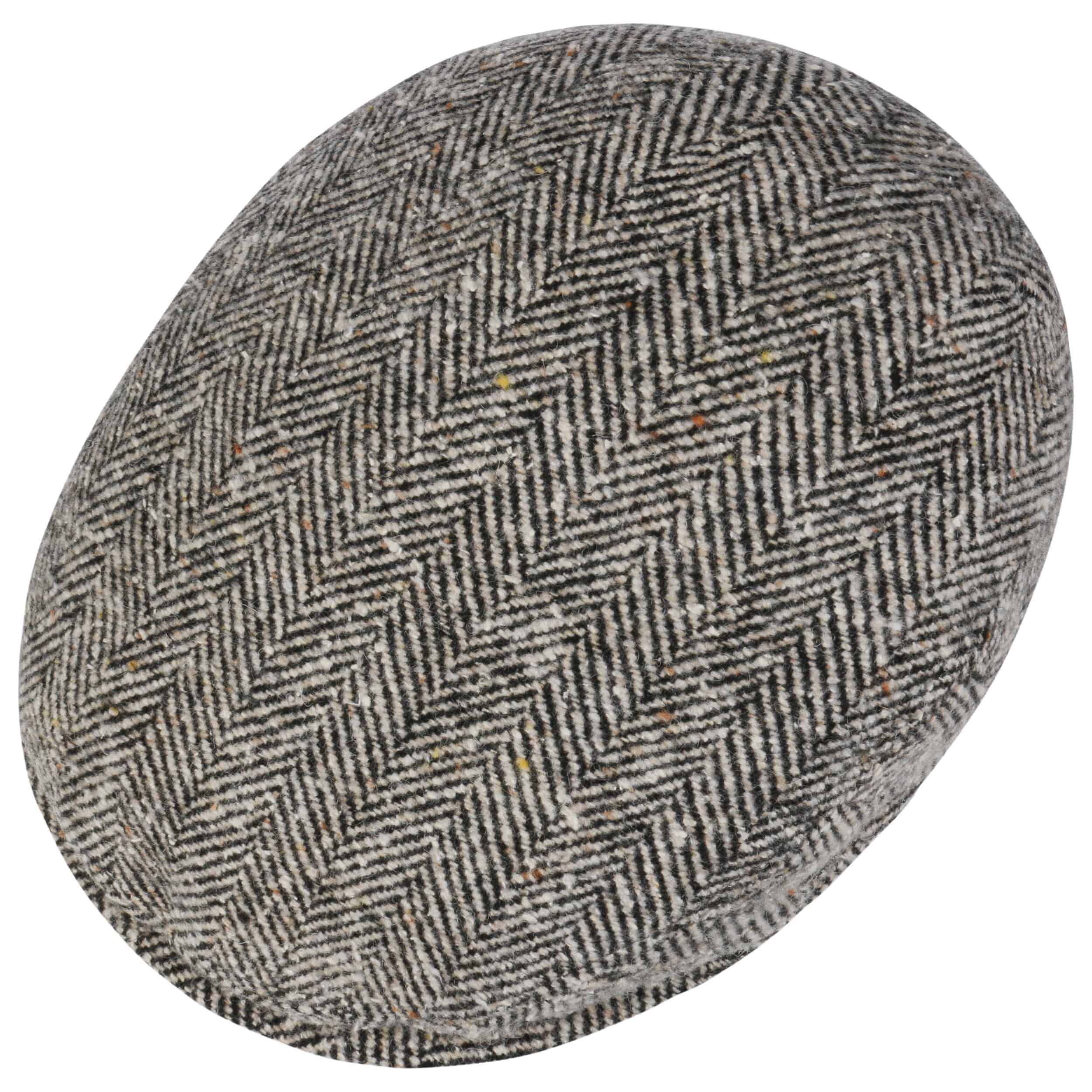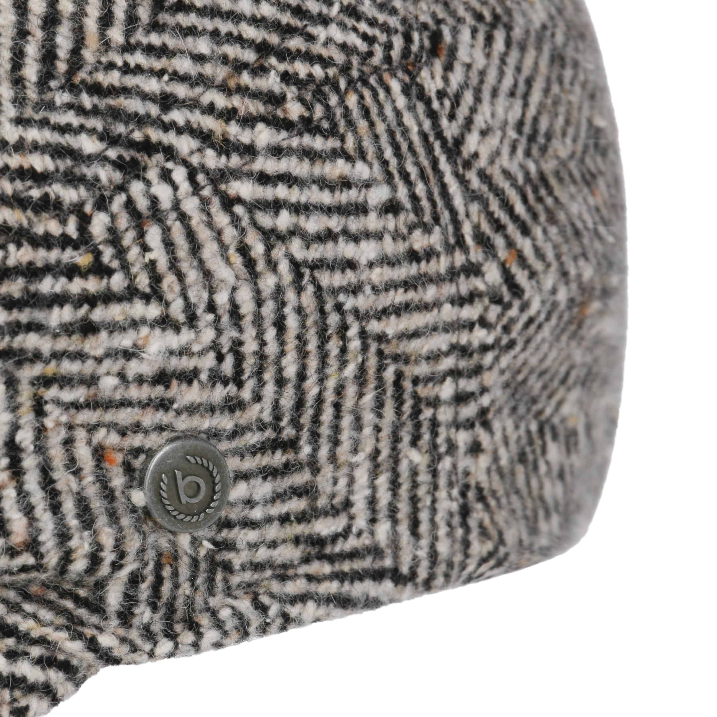 Herringbone Baker Flat Cap by bugatti black-beige