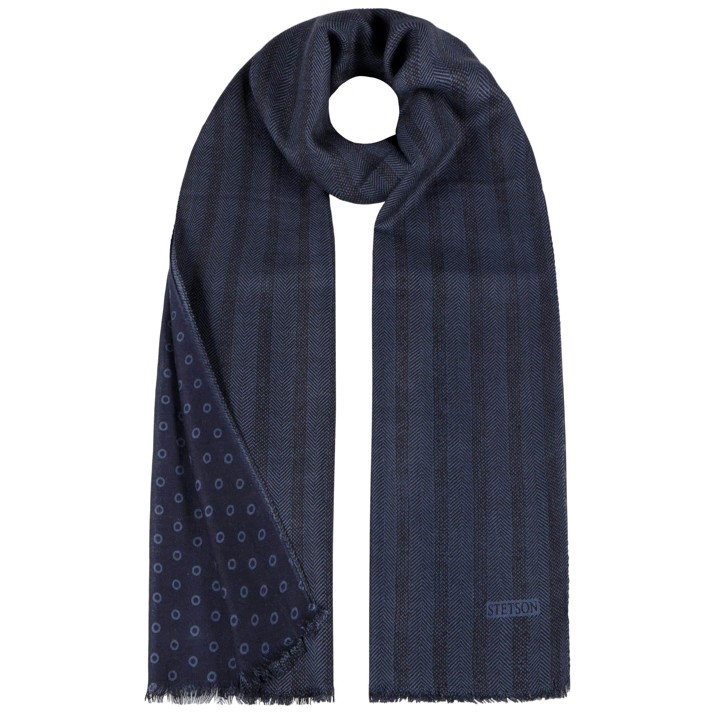 Since 1865, the name of John B. Stetson has been a synonym for best quality cowboy and Western hats. With the increasingly popular VitaFelt and VitaStraw collections, the U.S. brand has become pioneer of lightweight, water repellent and packable headwear. In the meantime, Stetson manufactures a wide range of first-class styles: army and baseball caps, flat hats, docker caps, beanies, trilbies and cowboy hats in many different designs.- Herringbone Dots Scarf by Stetson - black-blue 1