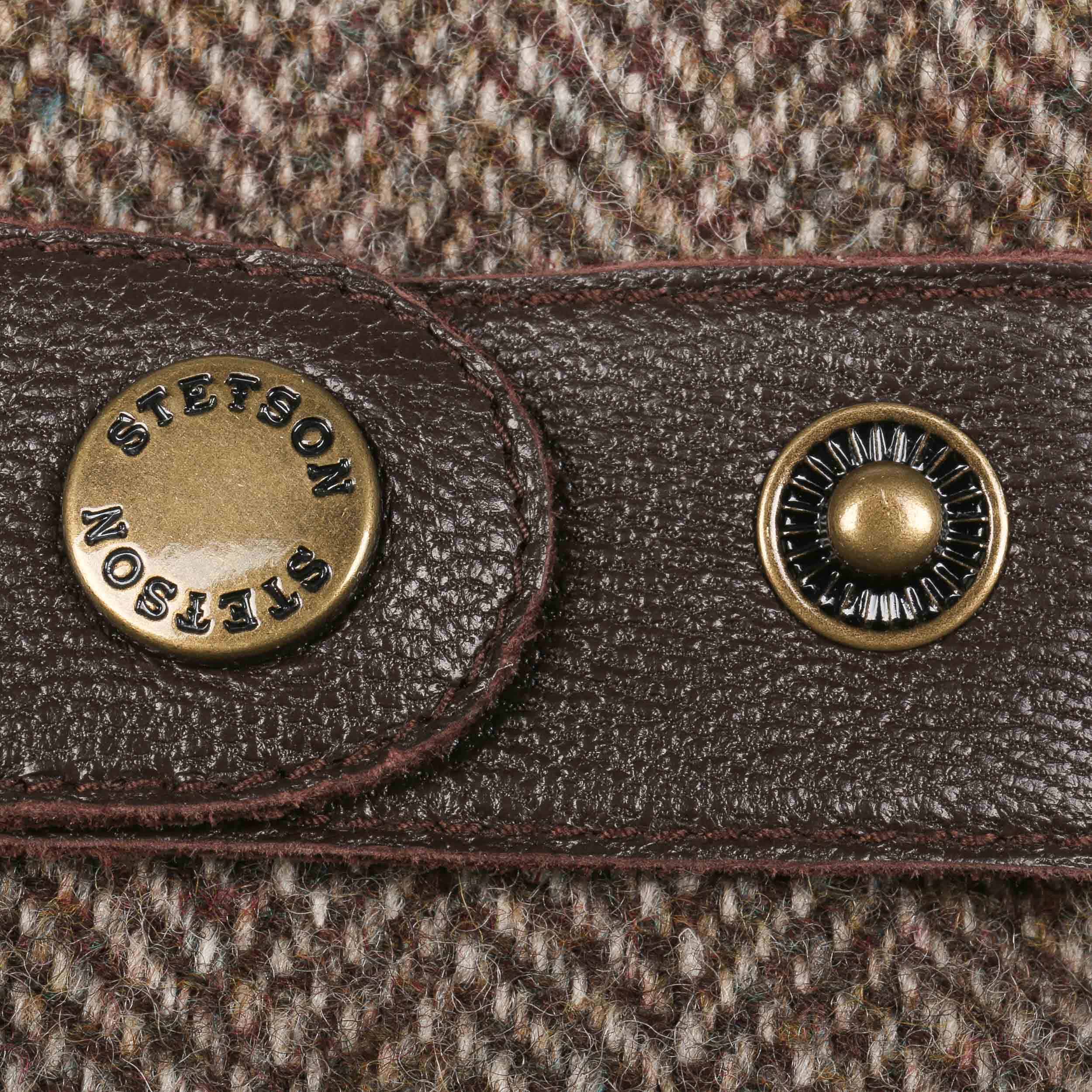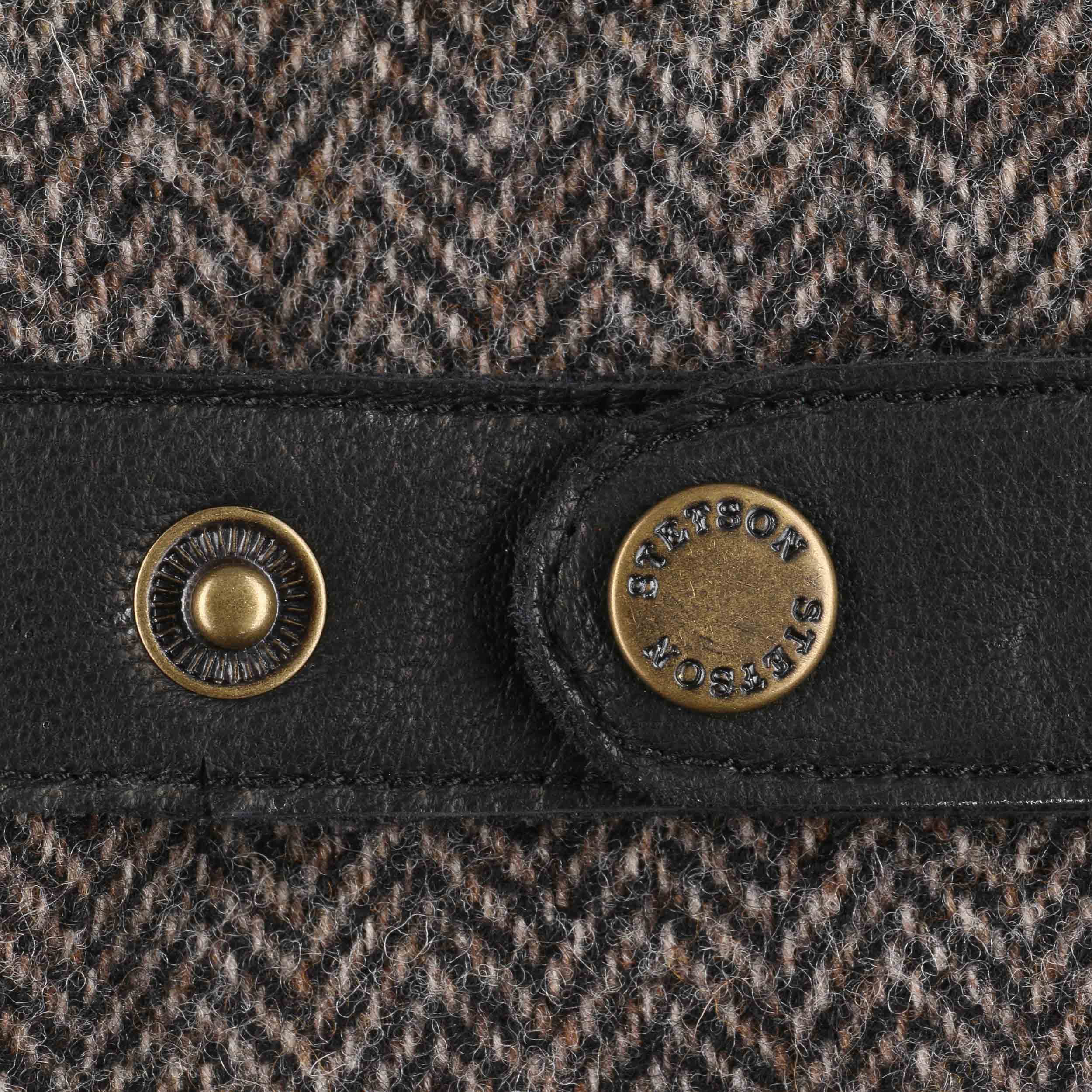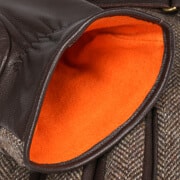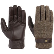 Soft kidskin leather makes up the inside of these Stetson gloves down to the wrists and gives them a smooth, rustic look. This is complemented by a high quality wool blend in a timelessly elegant herringbone pattern on the back of the hands. To finish, there are gathers on the inside of the wrists and press studs with adjustable straps on the back of the hands.
