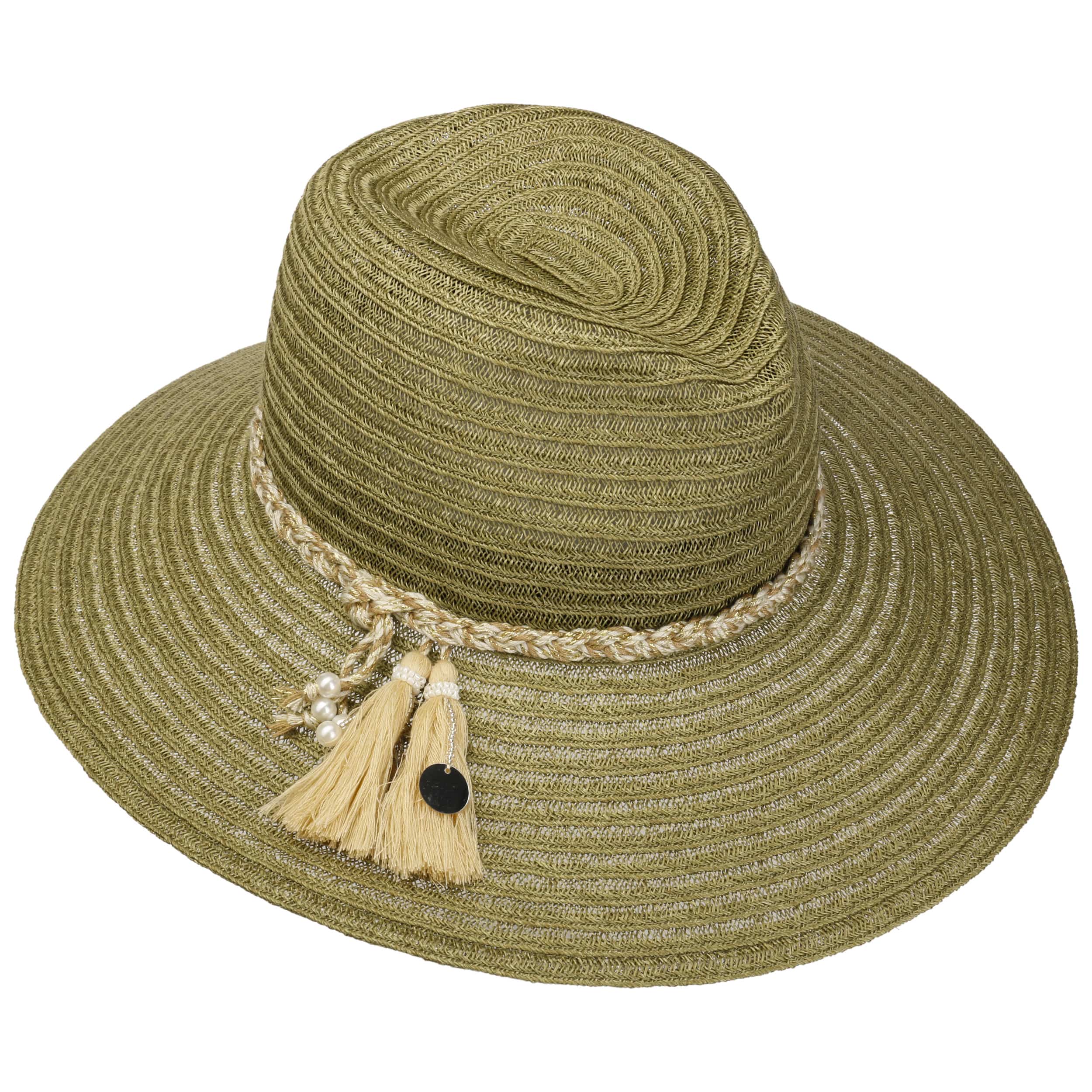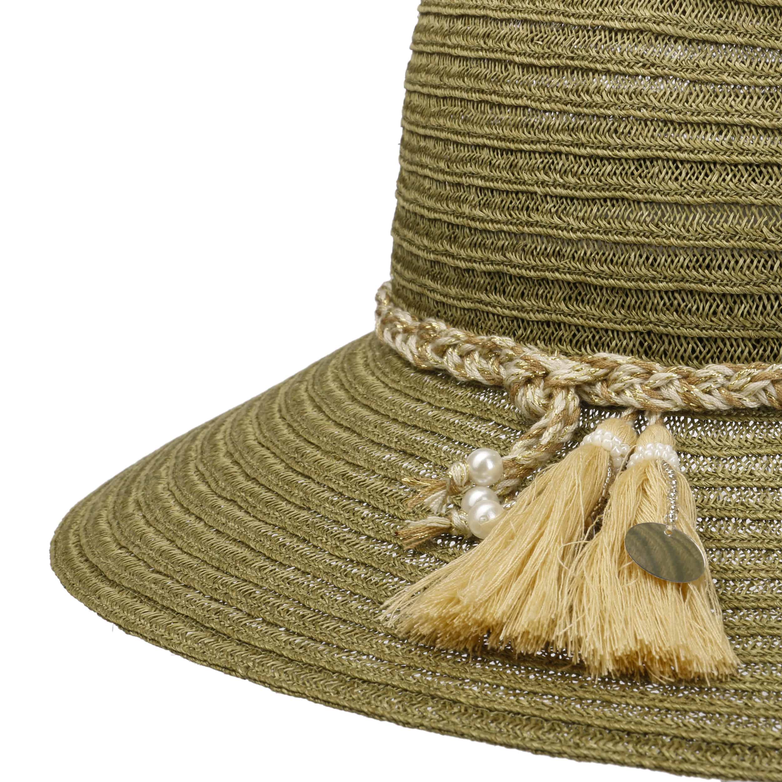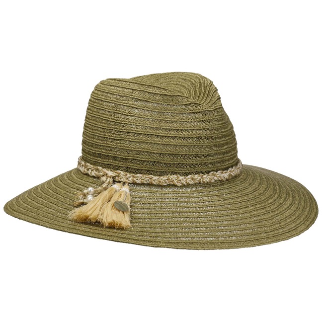 Made from hemp and cotton, the fabric hat from Mayser is ready for summer in the style of a casual straw hat. It flatters its lady with its feminine, slanting brim, which provides shade up to the tip of the nose. The crown of the plain-coloured women’s hat with its crumpled, comfortable fit features a heathered braided cord trim, with beads and tassels dangling from the sides.