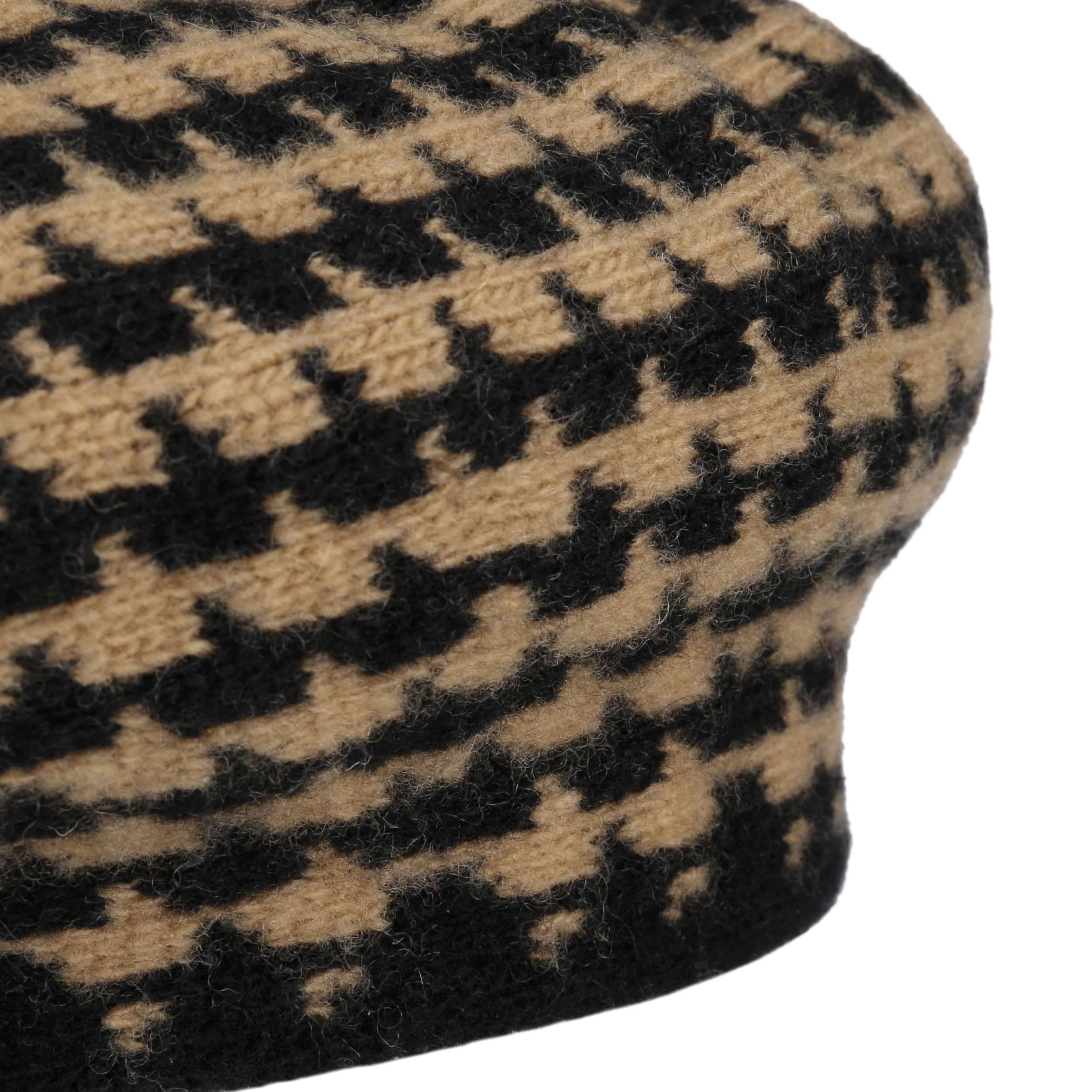 - Houndstooth Wool Beret by Barascon - beige-black 5