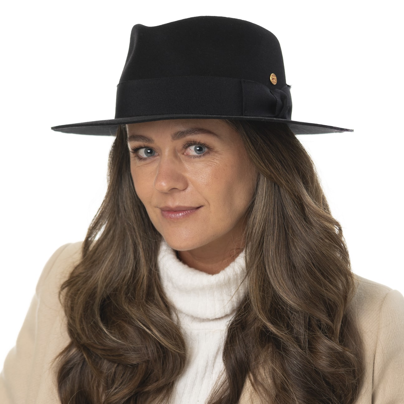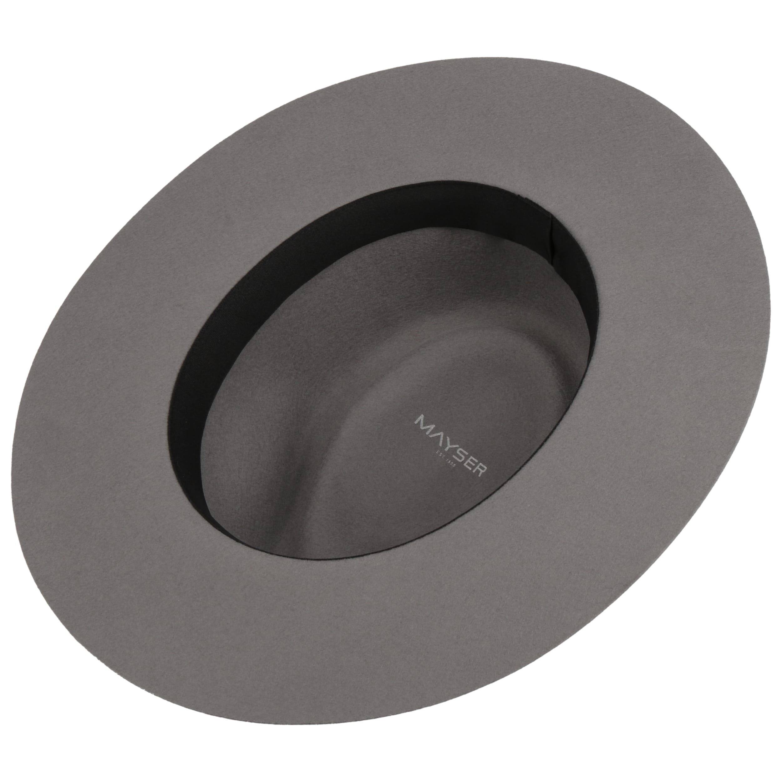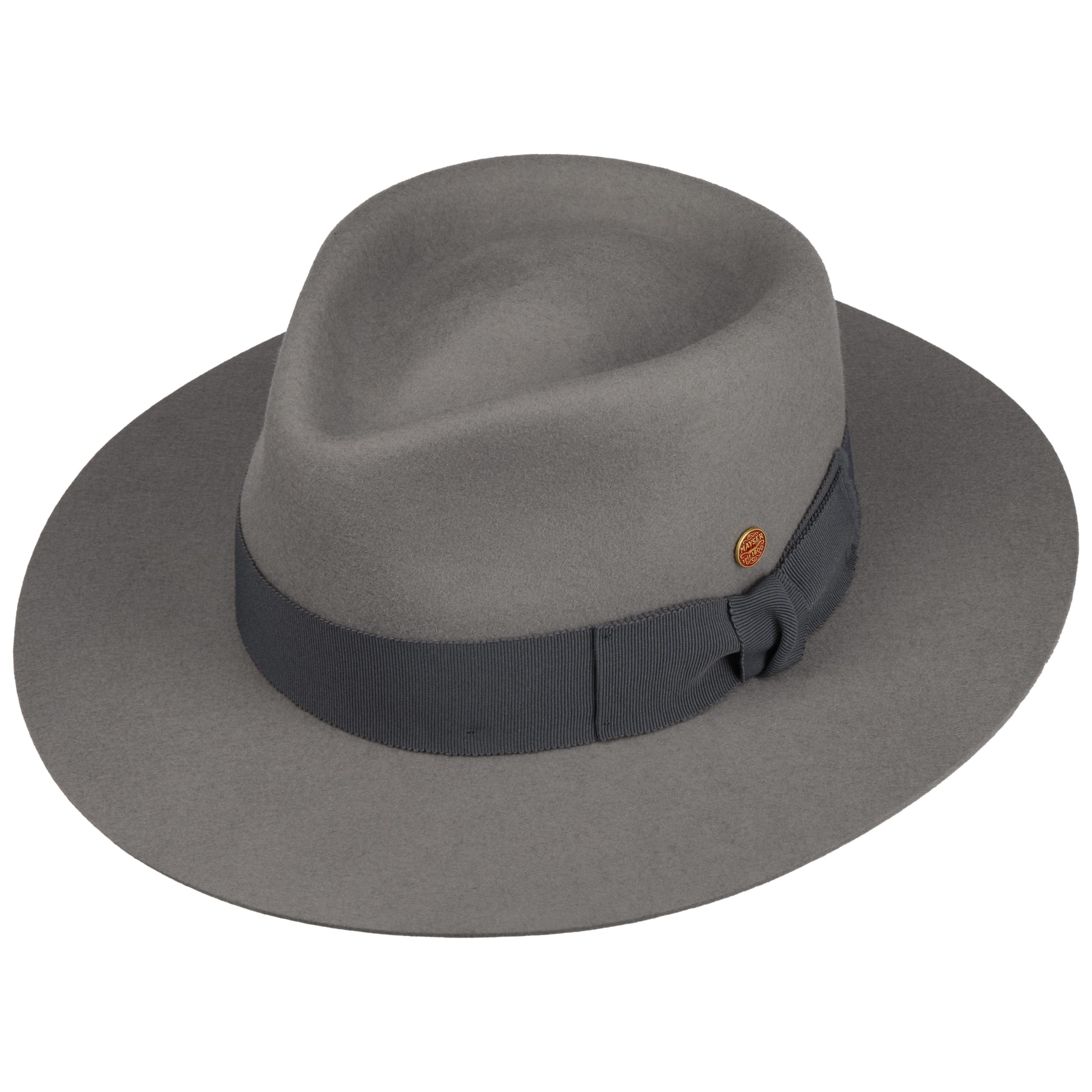The traveller hat from Mayser is handmade and deliberately dispenses with elaborate details. Wool felt makes it the perfect headgear for on the go, the plain-coloured felt hat can be flexibly combined with any outfit, and the grosgrain ribbon trim with bow is tone-on-tone. Its understated, stately elegance is skilfully emphasised by the drop-shaped, dented crown.