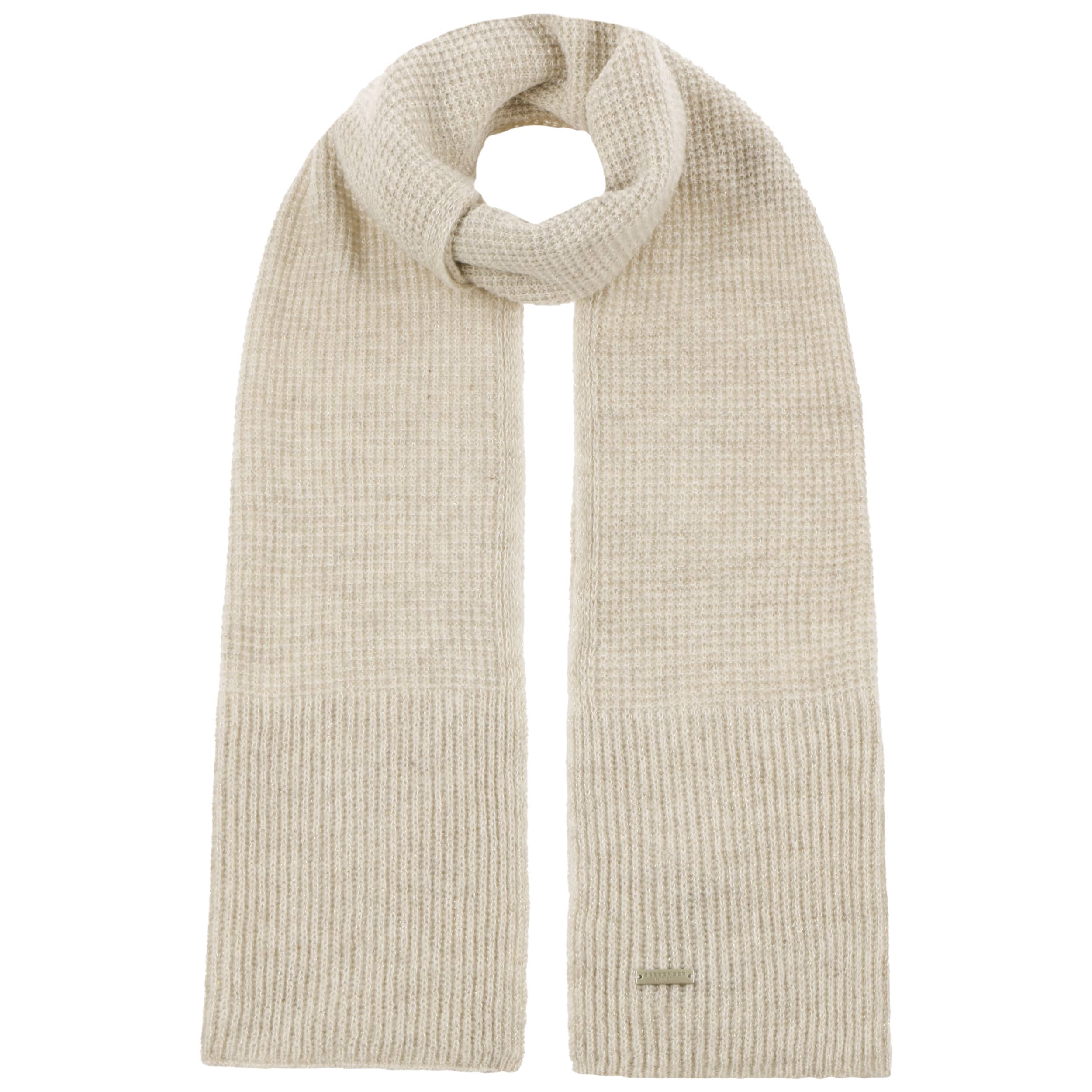 This stylish knitted scarf from Seeberger skilfully combines cosy warmth with a fashionable design. The lovely blend of materials with a touch of pure wool ensures maximum comfort and cosiness when the weather turns cold. An elegant mix of different knitted patterns makes this women’s scarf a charming eye-catcher. A metallic label stylishly rounds off the overall look.