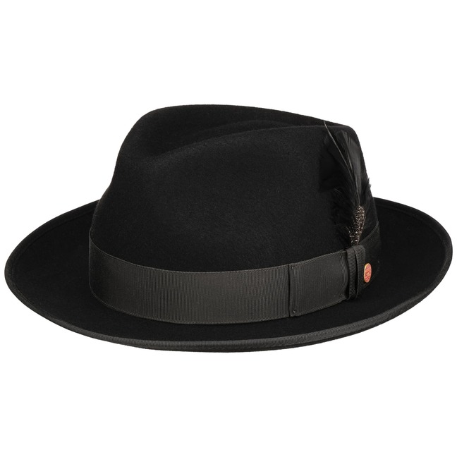 As long-established German company founded in 1800, Mayser has been standing for classic and elegant headwear ever since. First-class workmanship, high-quality fabrics and subtle plays of colours have always been typical characteristics of Mayser's collections. With its officially licensed Indiana Jones hats and sometimes extravagant combinations of styles and fabrics, Mayser knows how to enhance the wardrobe of both elegant men and fashionable women.- Jannes Player Wool Hat by Mayser - navy 1