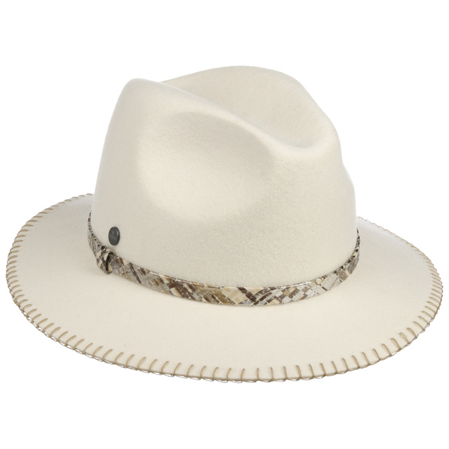 The label with the iris logo has dedicated itself to making modern, stylish and comfortable headwear along with matching accessories. Baseball caps, Trilby hats and Bogart hats have been made into timeless designs that give an outfit a classy splash of colour and bring a smart cut to your headwear. High quality knitted sets, which are available individually as beanies, peak pull on hats, Laplander hats, headbands, scarves, gloves etc., discreetly accentuate each lady’s or gentleman’s individuality. From woollen hats to flat caps, Lierys accessories can be worn in endless fashionable combinations.- Jelina Traveller Wool Hat by Lierys - white 1