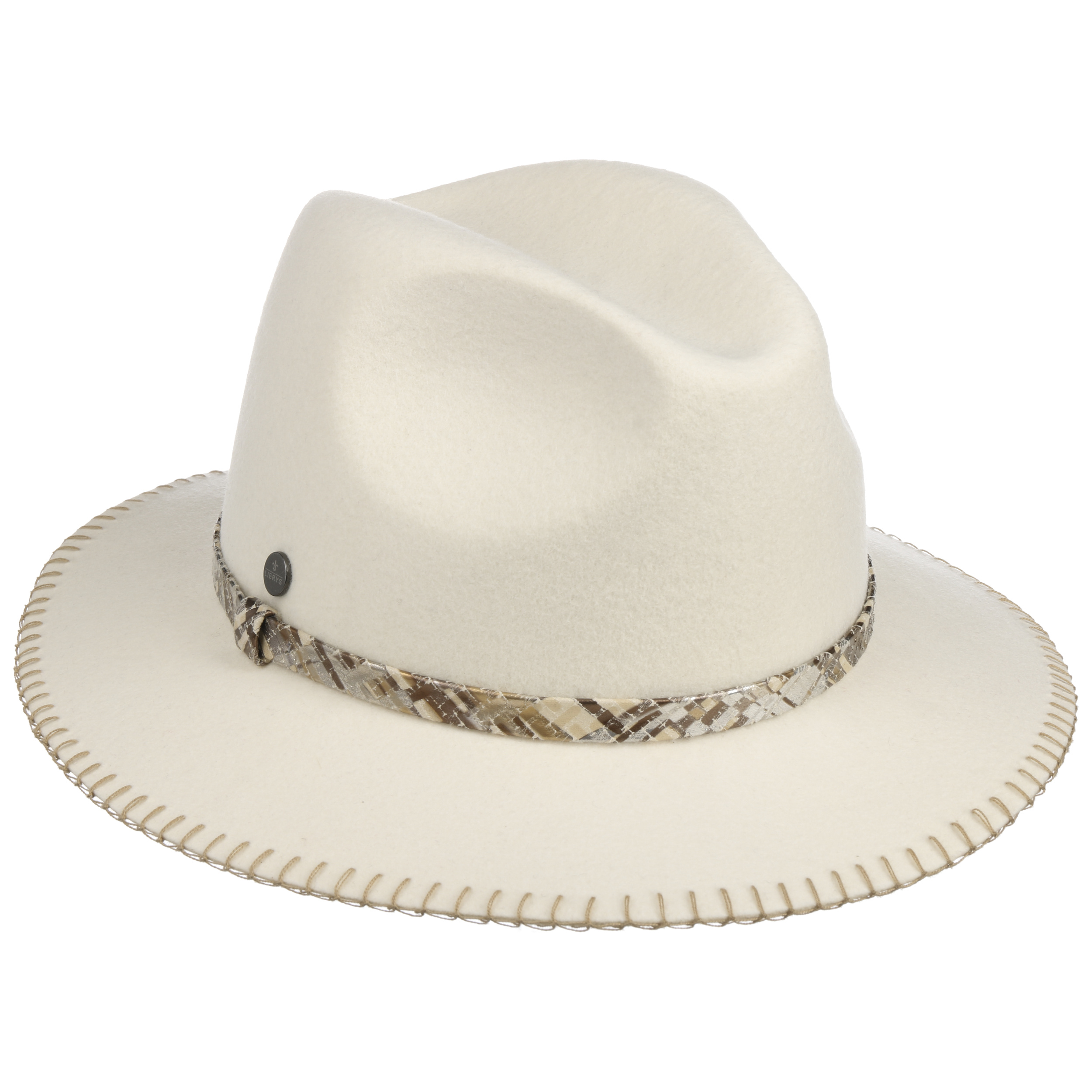 This felt hat from Lierys attracts attention with its gallant decorative stitching on the wide brim, deep indentations in the crown, and an elegant trim band with a refined mosaic effect. The monochrome surface shows off the individual design accents of this Italian-made hat to their best advantage. Made of 100% wool, the felt material is very comfortable to wear and provides protection against the cold and wet.