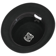 This handmade cloche from Lierys always looks stylish. The plain-coloured felt that makes up the headgear delights with its timelessly elegant radiance. This harmonises wonderfully with the attractive look of the shimmering, cleverly pleated trim band. In addition to its elegant look, the carefully processed material made of 100% is also bound to win you over with its traditional protection from the elements.