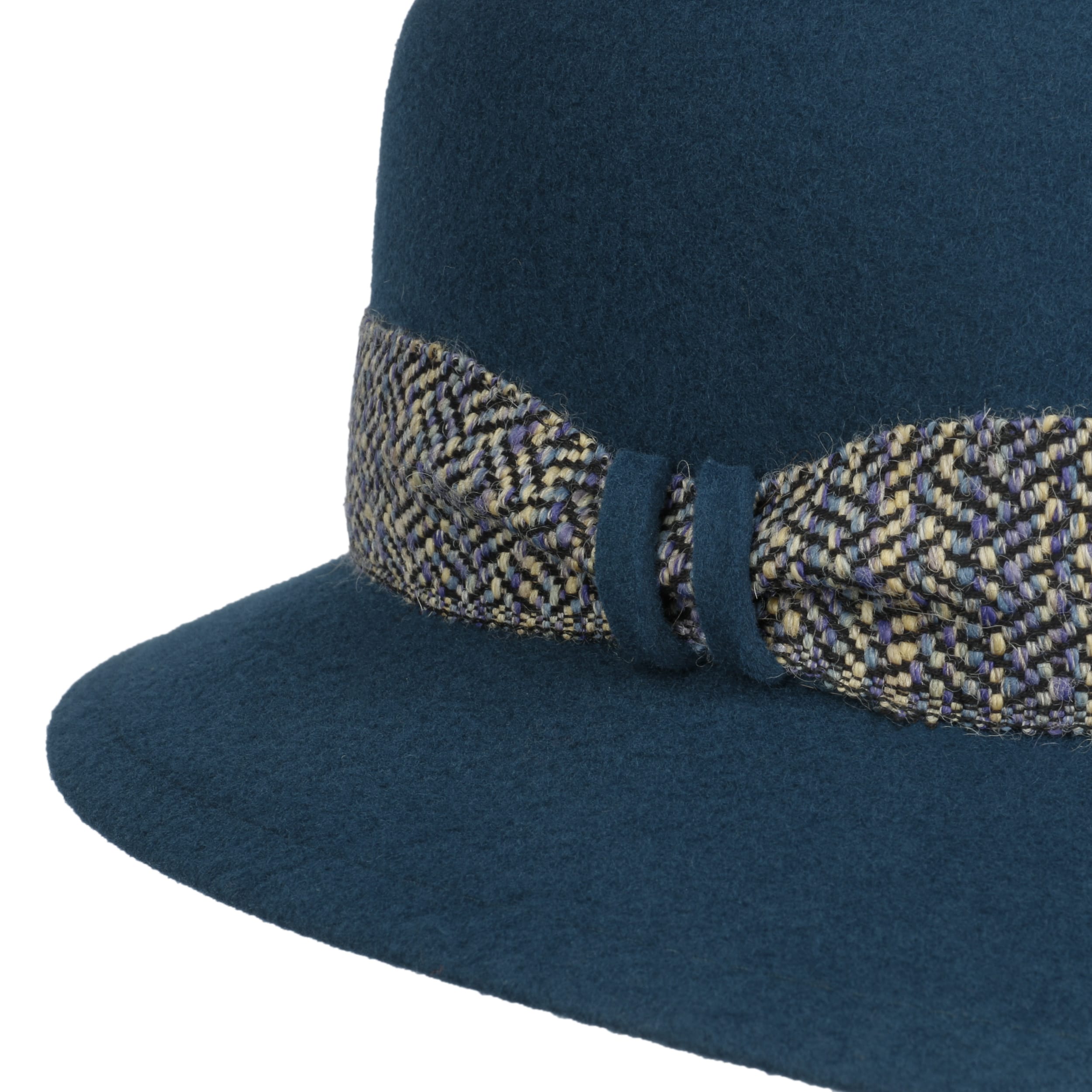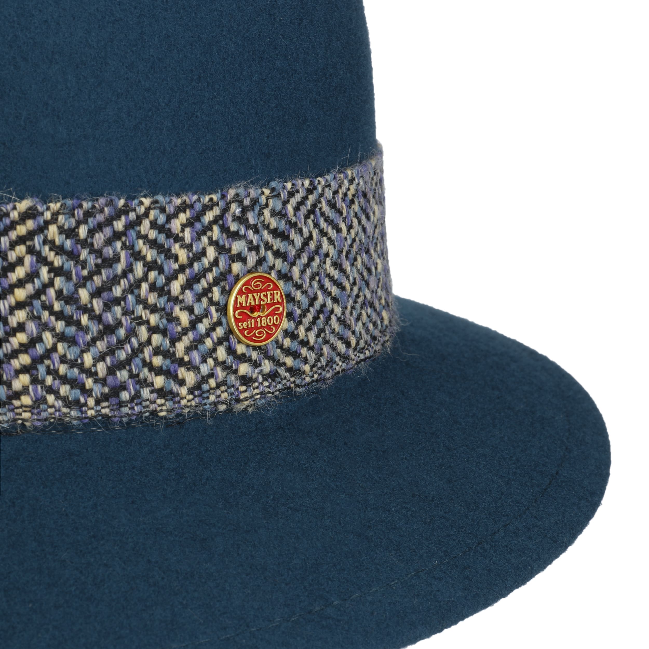 This perfectly shaped, plain-coloured women’s hat by Mayser is made entirely of wool felt, which gives it a cosy feel and warming comfort for the cold season. The heathered trim band with brand pin and discreet gathering on one side also exudes cosiness. Inside, a stretch lining band adds a comfortable finishing touch. Meanwhile, your feminine flirt of the eyes is skilfully accentuated under the straight brim.