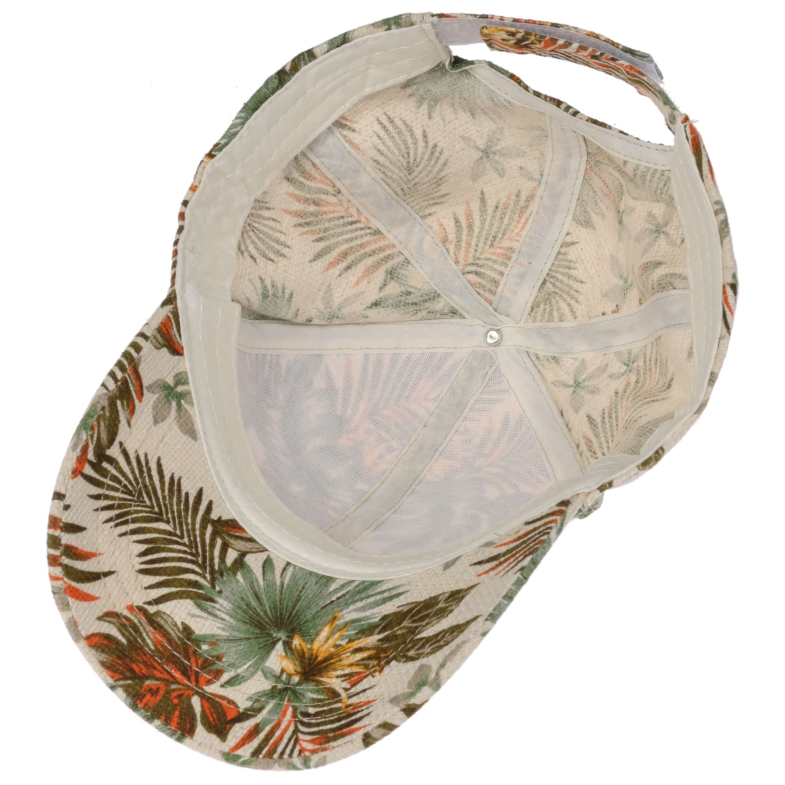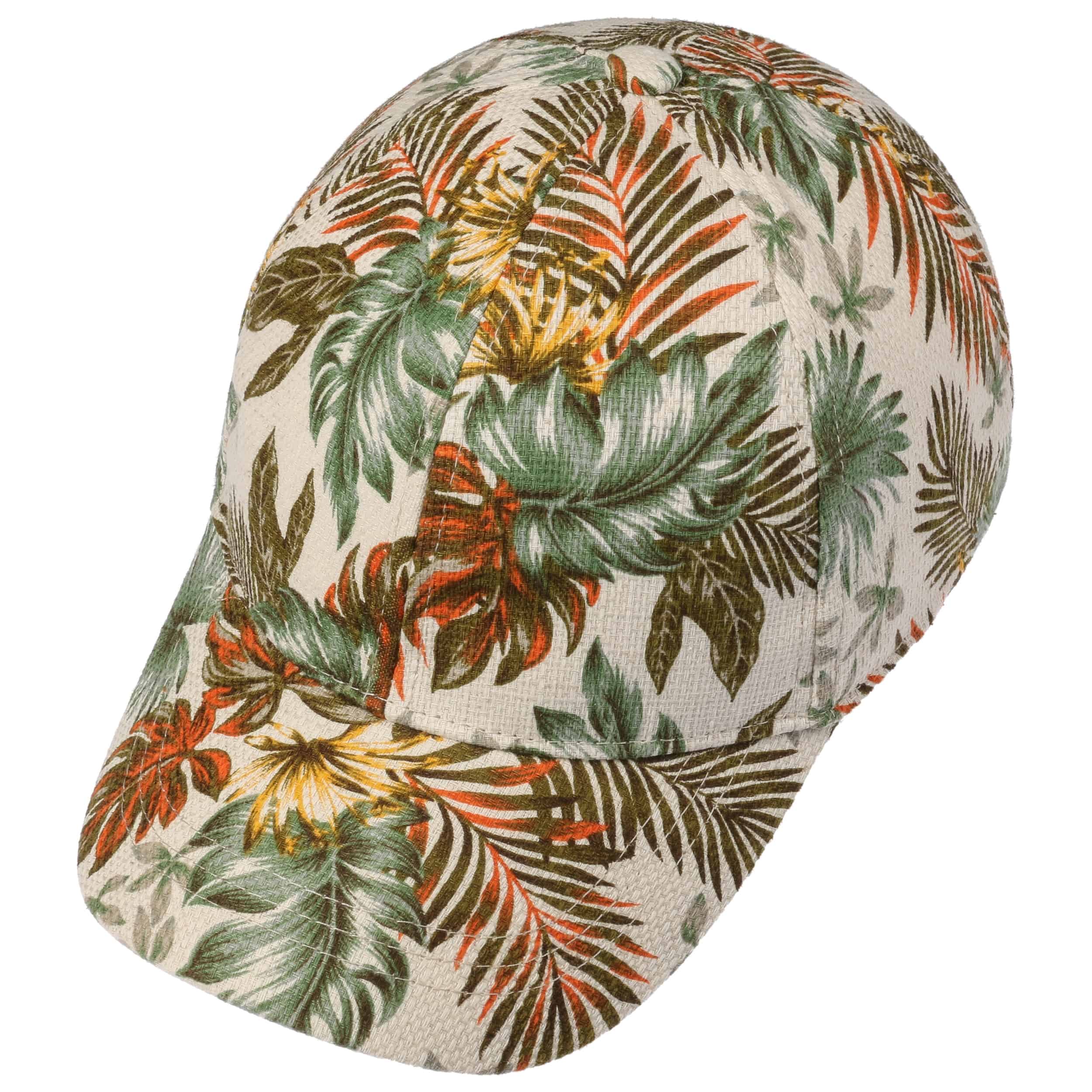 This high-quality processed baseball cap from Lipodo is made of the 100% natural fibres of cotton and ramie. The imaginatively designed floral pattern of the breathable fabric creates a true jungle feeling and sets optical accents. On hot days, the wearer of this practical fabric cap is therefore not only well protected from the strong sunlight, but it will also spice up their summer outfit with the peaked cap.