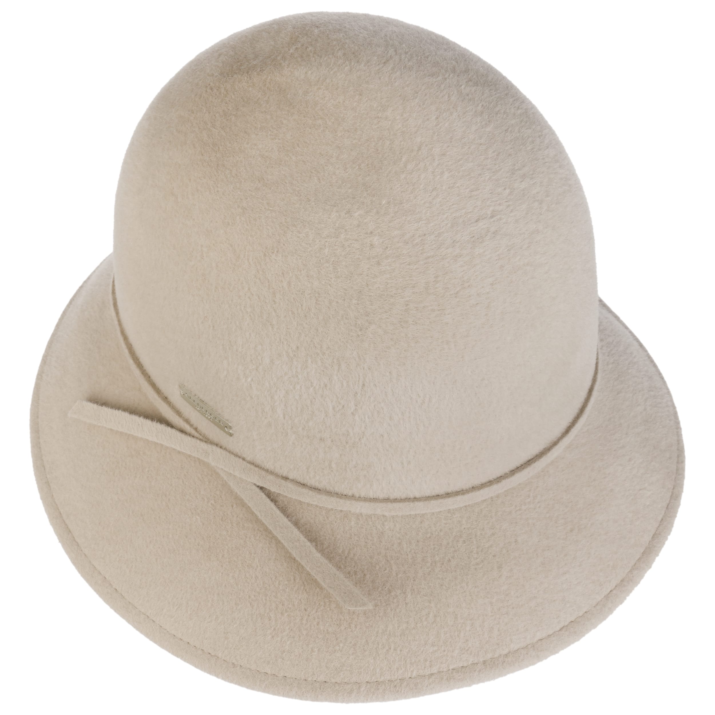 Seeberger presents this cloche hat made from 100% exquisite hair felt, offering a timeless and stylish headwear option that is naturally water-repellent and pleasantly light. Additionally, the felt hat impresses with its breathability, ensuring a comfortable climate for the head. The integrated stretch sweatband guarantees an excellent fit and exceptional wearing comfort. The hat, adorned with a felt trim, delights with its graceful shape and generously asymmetrical brim.