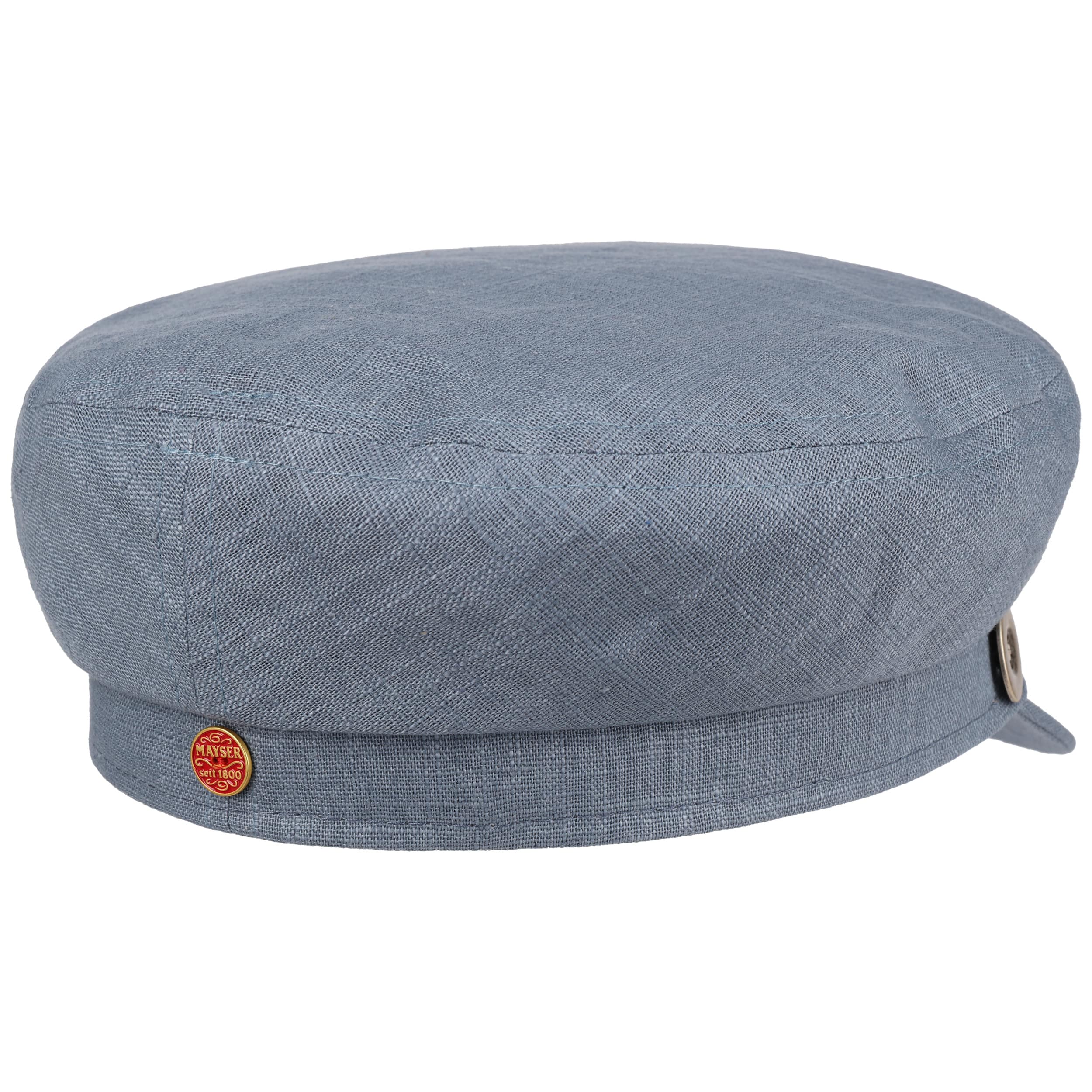 A lightweight finish makes this handmade baker boy cap from Mayser pleasantly comfortable to wear. Its lightweight material made of 100% linen is breathable, temperature-regulating and kind to the skin. The design of this attractive summer hat is given a touch of elegance by the double row of cord that adorns the front. It attracts the eye with its flattering, attractive sheen.