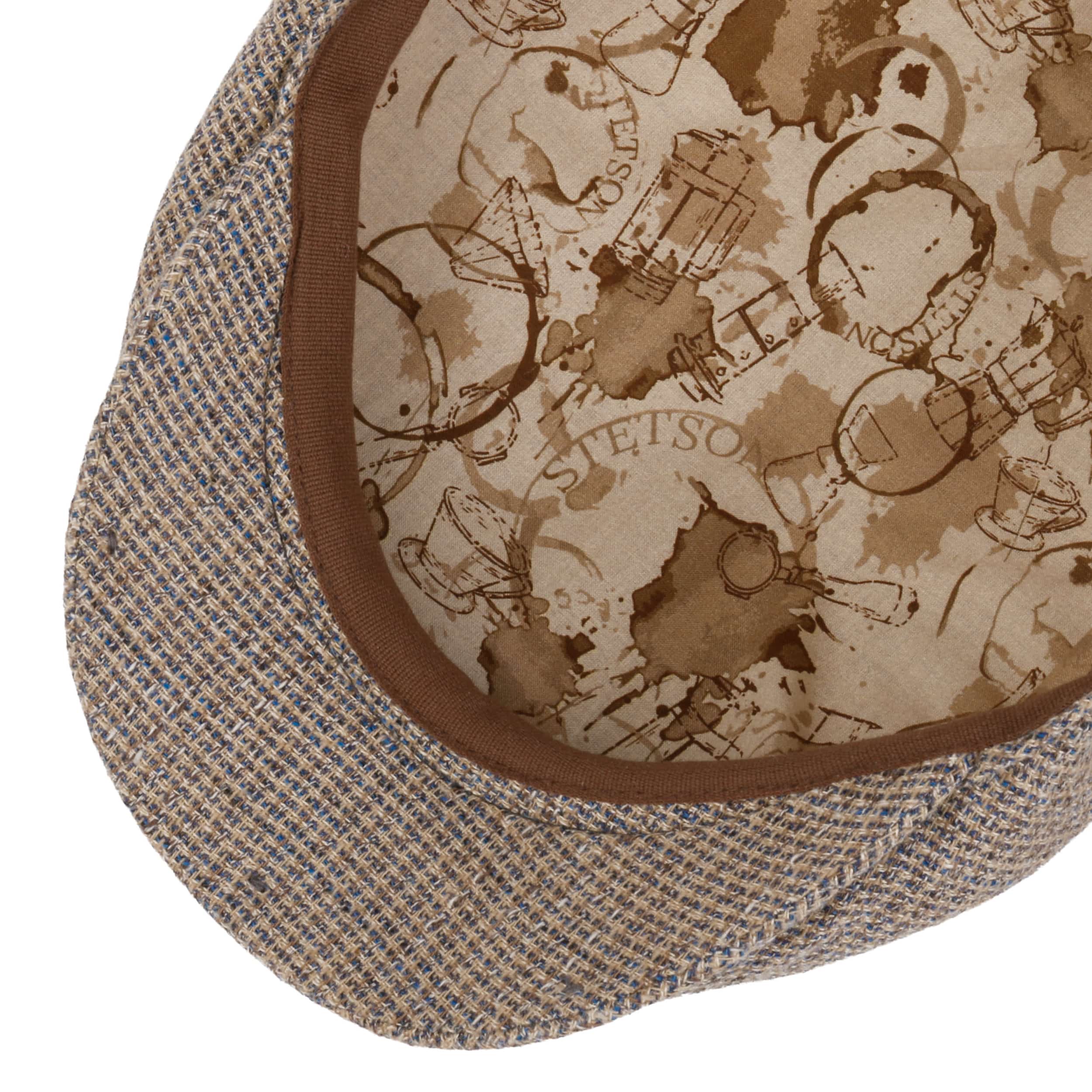 This flat cap by Stetson is crafted in the EU from a sophisticated blend of cotton, virgin wool, linen and silk that feels pleasantly light on warmer days. Coffee dyed yarn from a local roastery is combined with regular dyed fibres to create its distinctive heathered multicoloured finish, while the cotton lining ensures natural comfort. A short 5 cm visor adds a subtly sporty touch with practical sun protection.