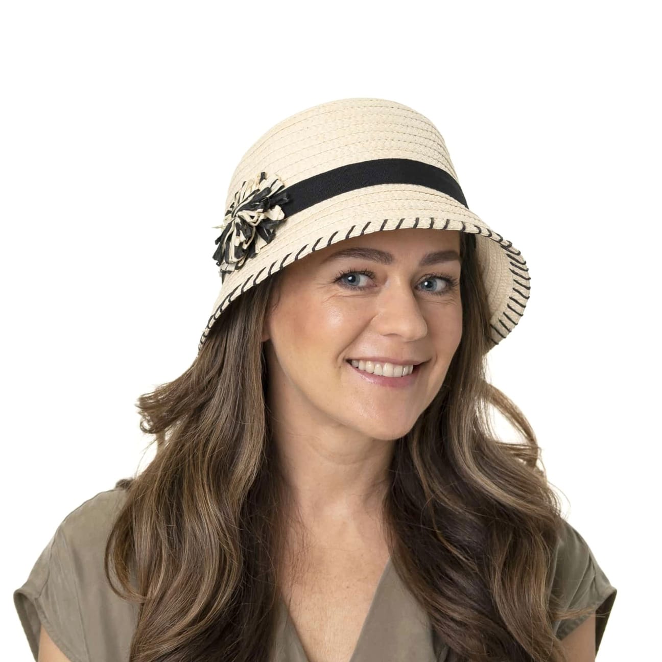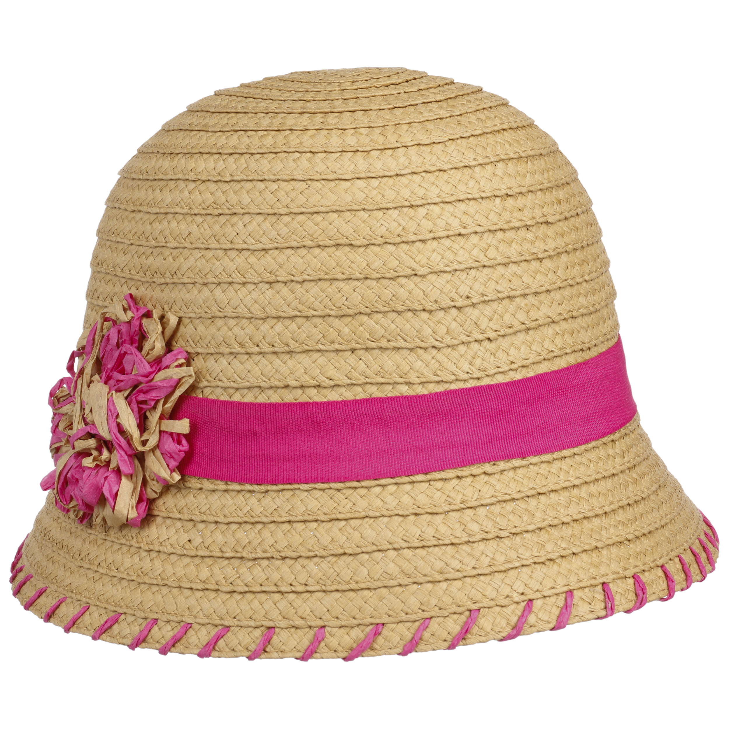 It’s the little details of this summery cloche from Betmar that catch your eye immediately: The striking decorative seam on the brim, the hat band in the same colour and of course the casual flower attached to the band, made of two-tone paper. A further strength is however invisible: It’s the fact that the sweet sun hat is also fitted with UV protection.