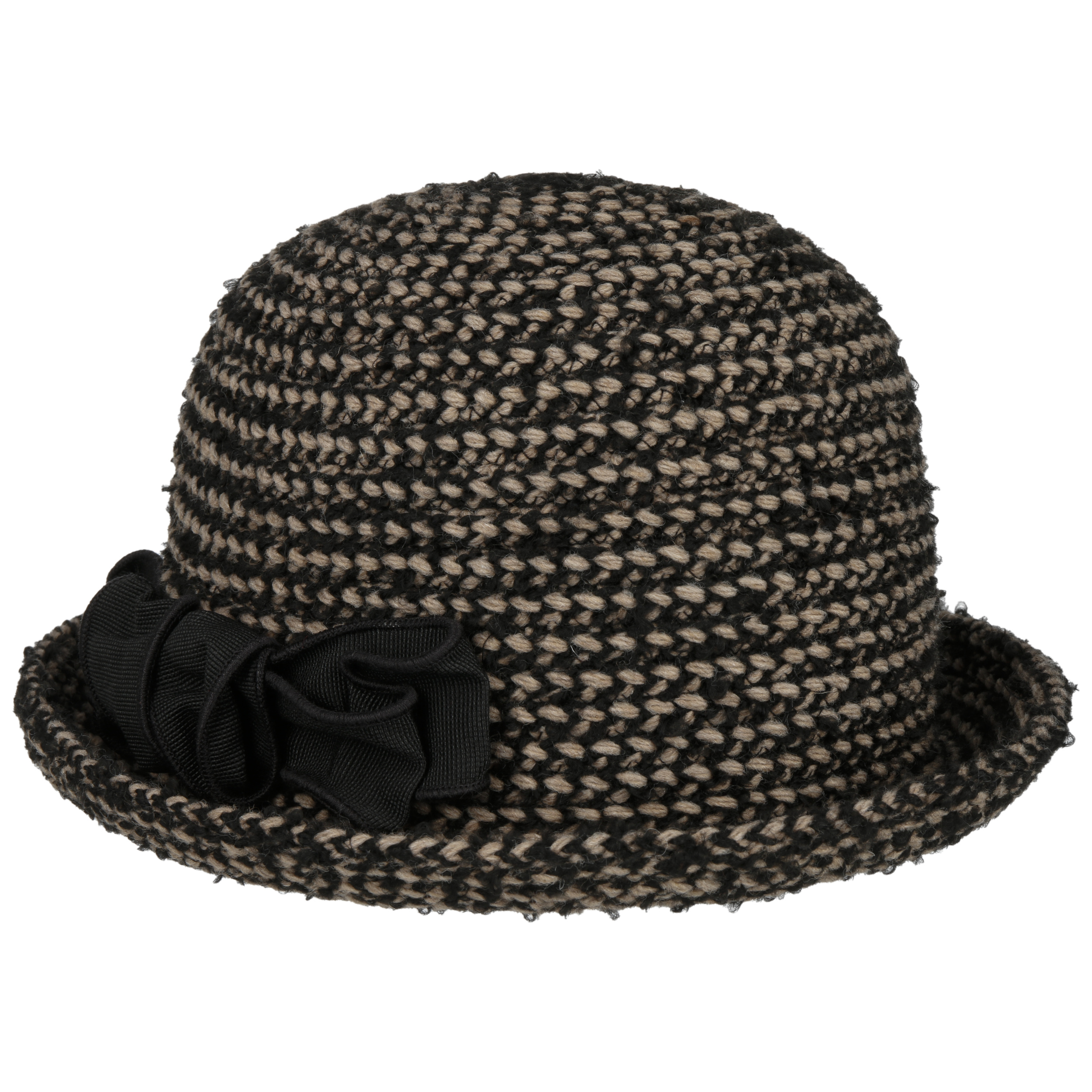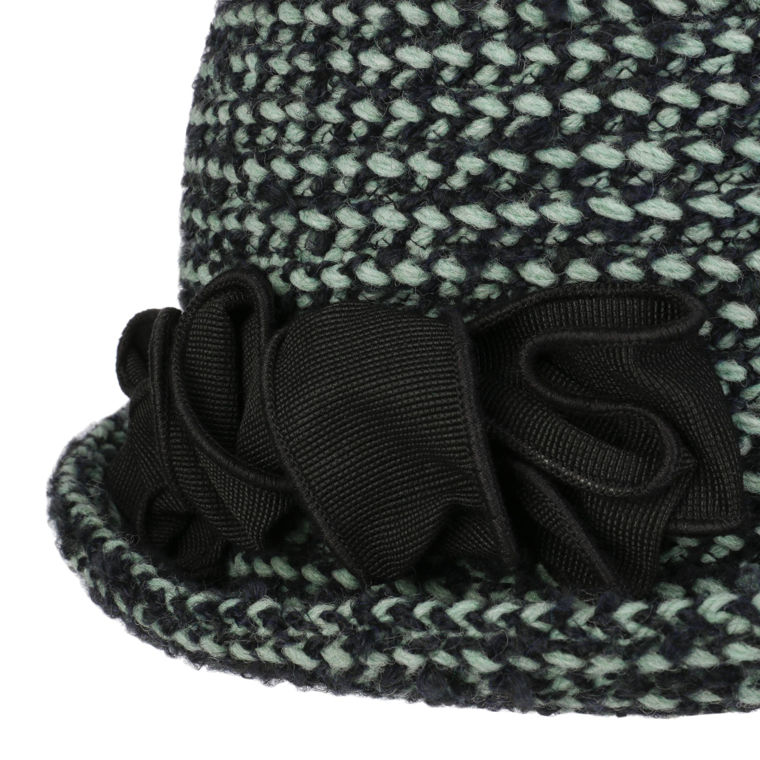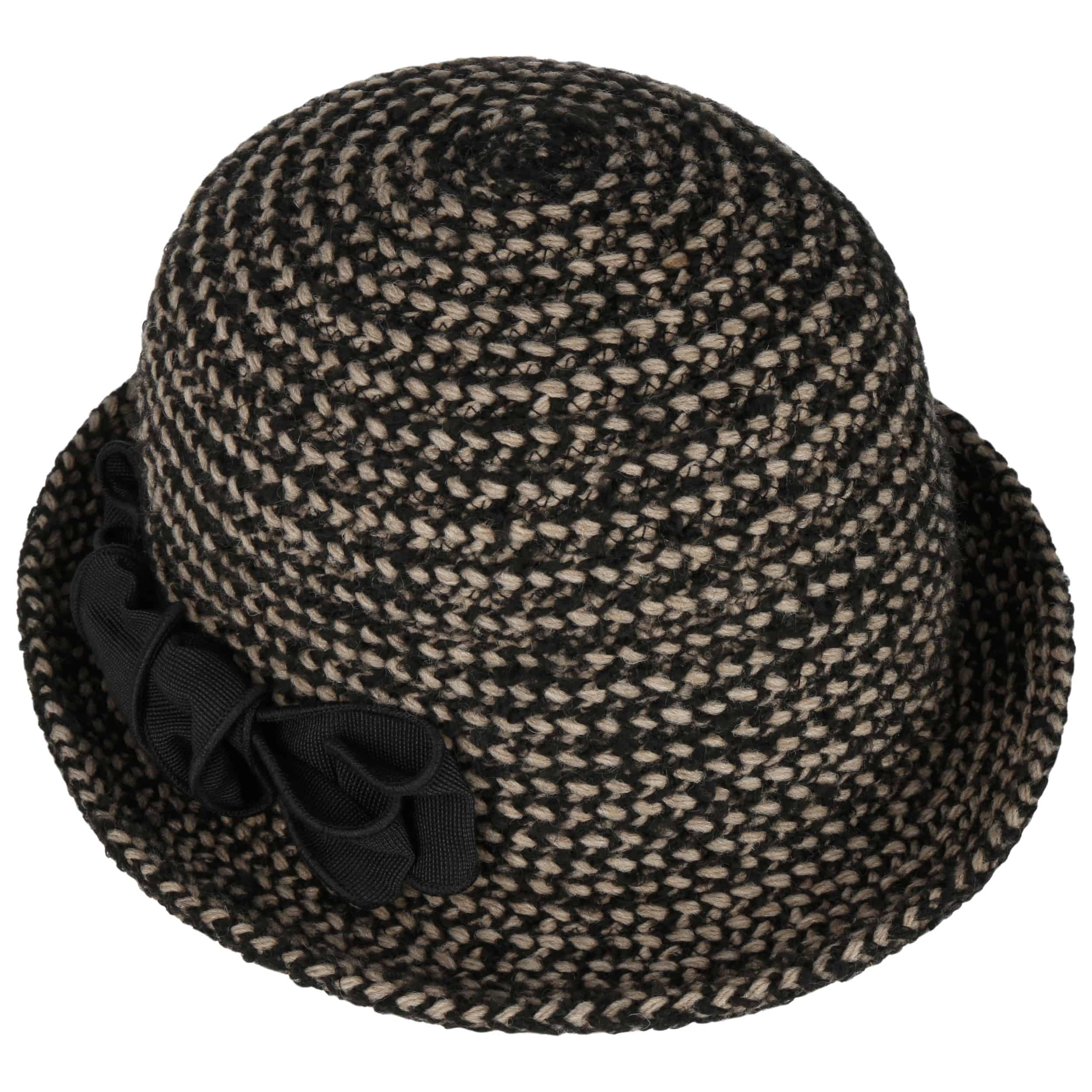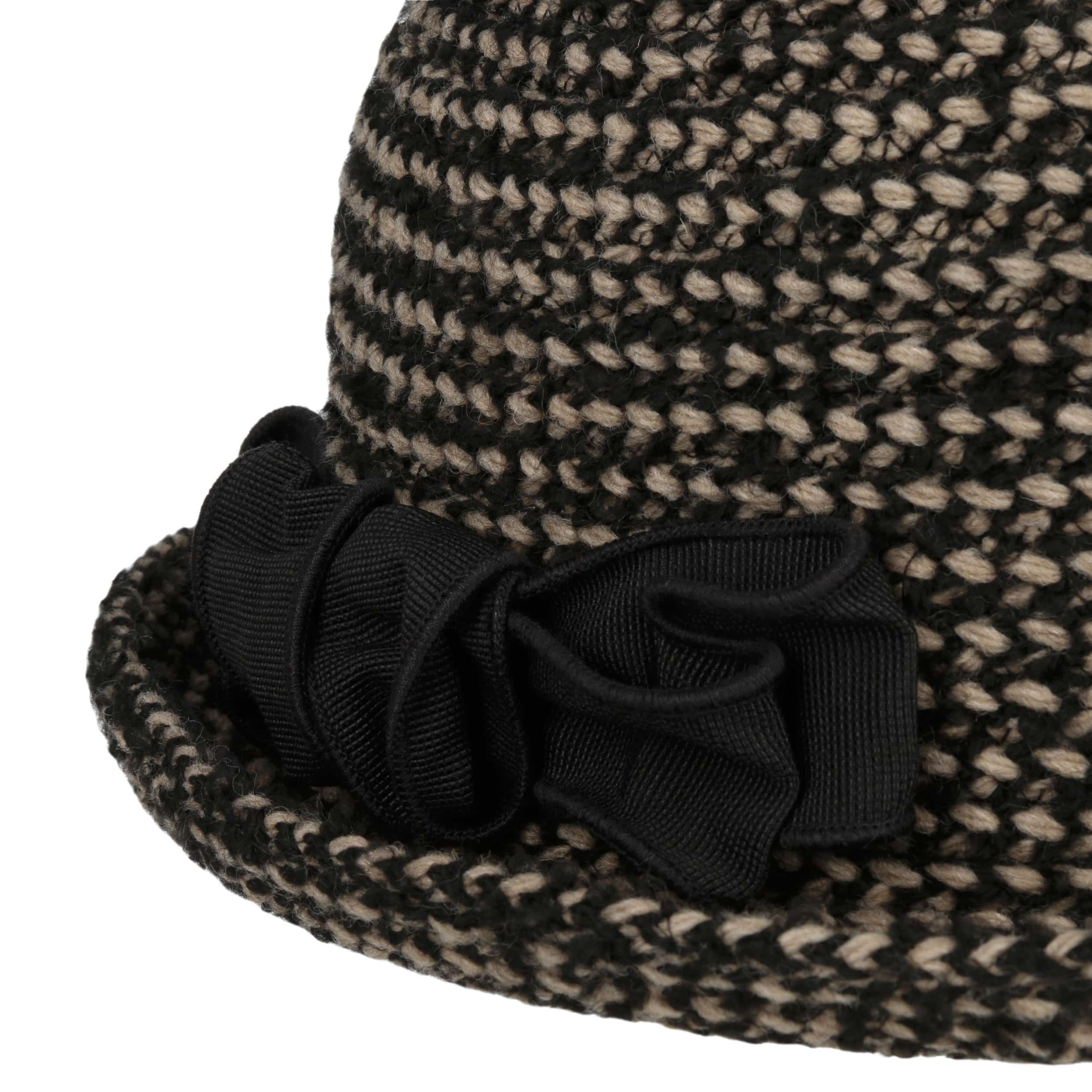 The bell-shaped hat in a knitted look is an accessory that can be used to create charming looks, and not just in the change of season. The bell hat also proves its worth on mild winter days thanks to the warming wool content. The upward curved brim in which the large bow seems to rest is charming. With this hat, the manufacturer once again underlines its sense of tasteful fashion that is always on trend.