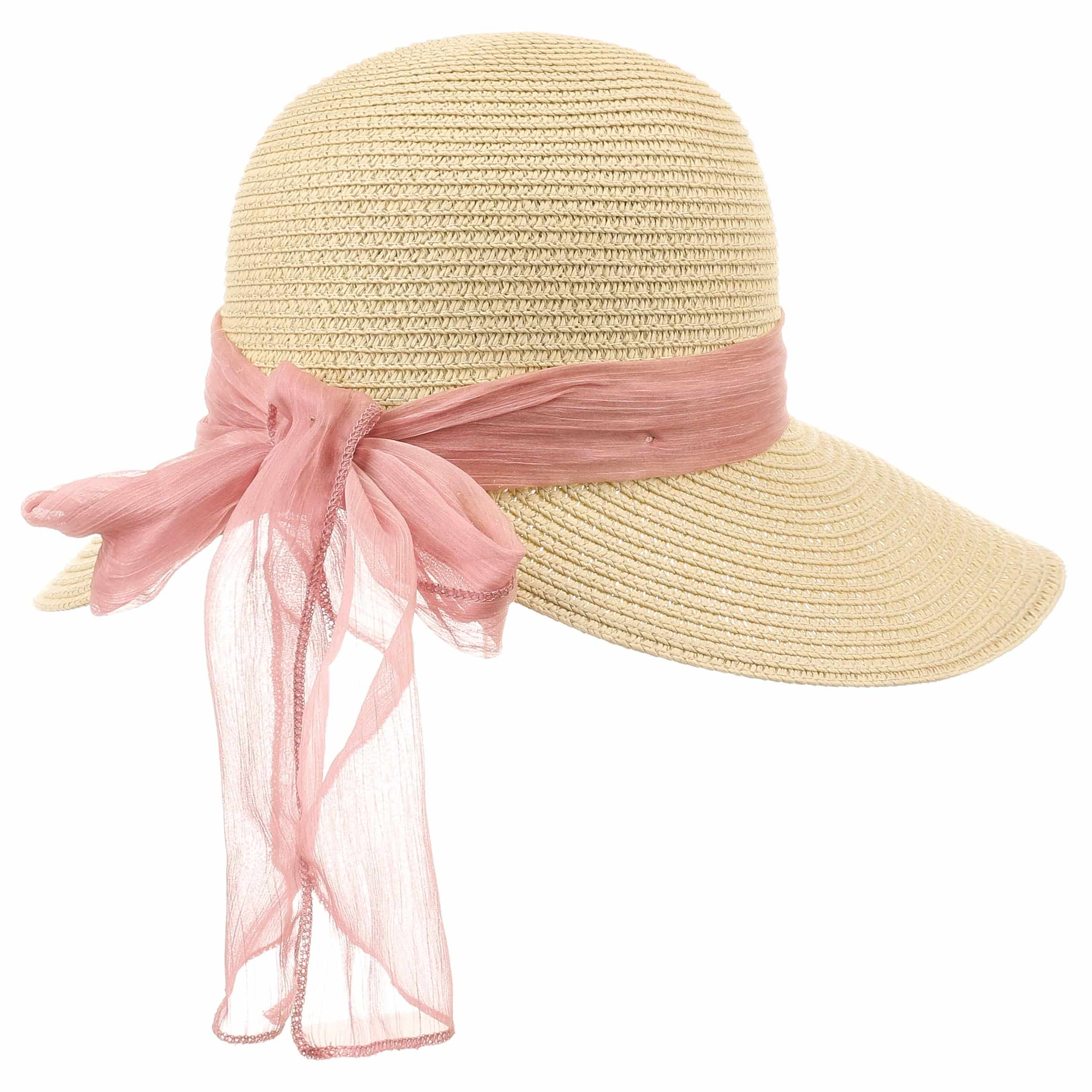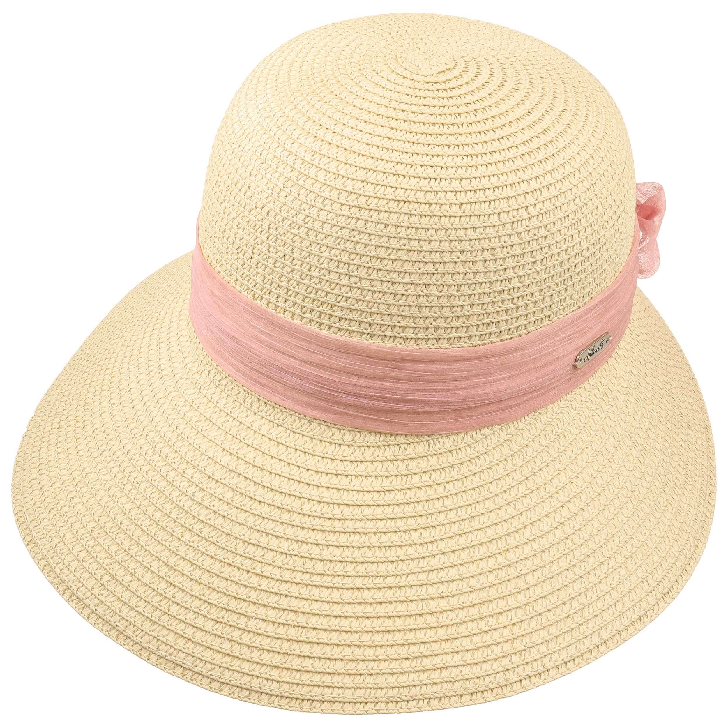 This high-quality bonnet from Chillouts delights with its refined design, which exudes lightness and elegance. Its accentuated, rounded shape, which immediately catches the eye with its large, curved brim, looks dynamic and spring-like. Just as exciting is the stylish trim band, which is tied into a voluminous bow at the back. The woven 100% paper straw gives the hat a carefree character.