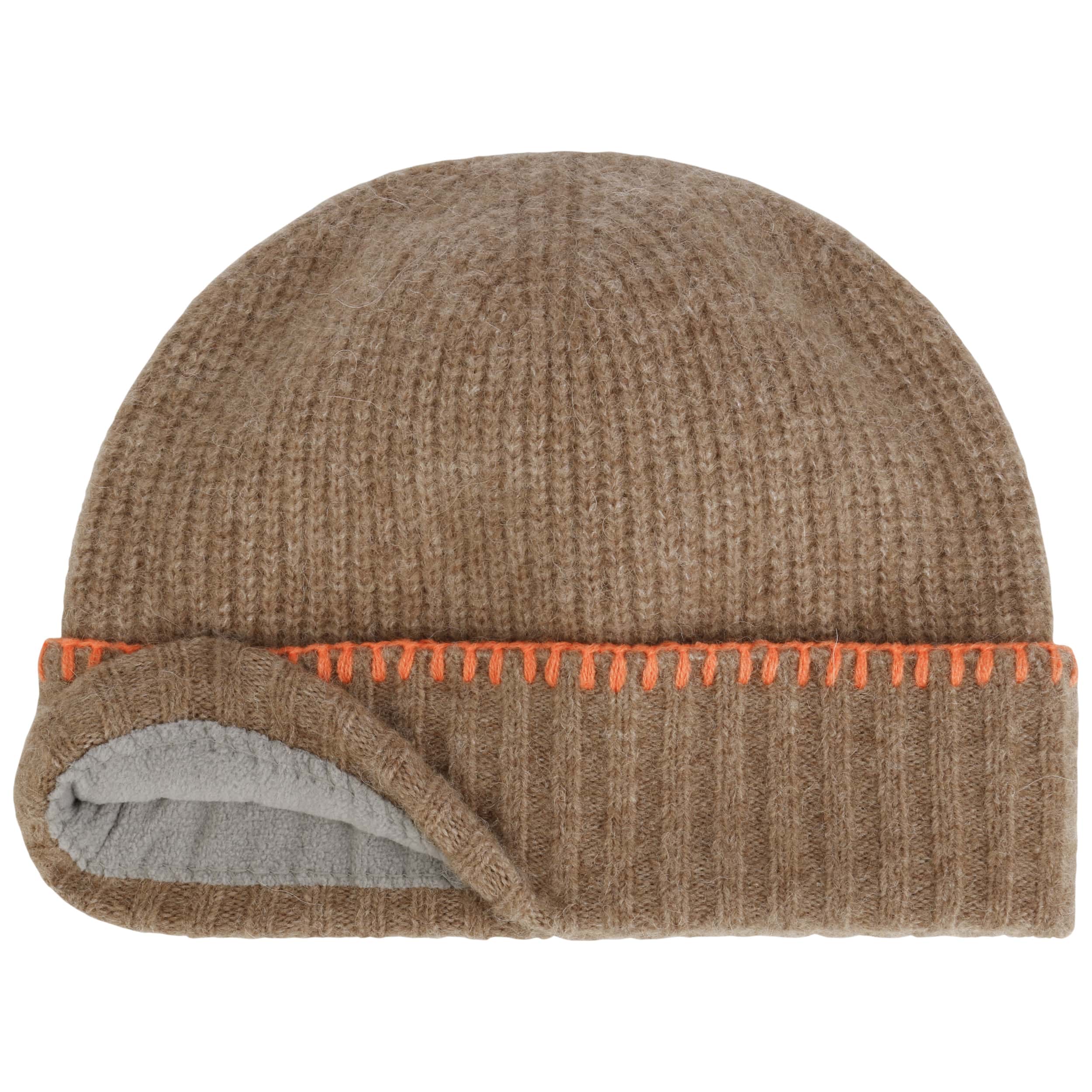 The 20 cm long beanie from Seeberger is made from wool and llama wool, among other materials, making it pleasantly soft, breathable and wonderfully warm. For increased comfort, the knitted hat also has a skin-friendly partial fleece lining in the ear area. On the outside, this hat with a heathered plain base colour stands out with its shape, turn-up and knitted pattern.