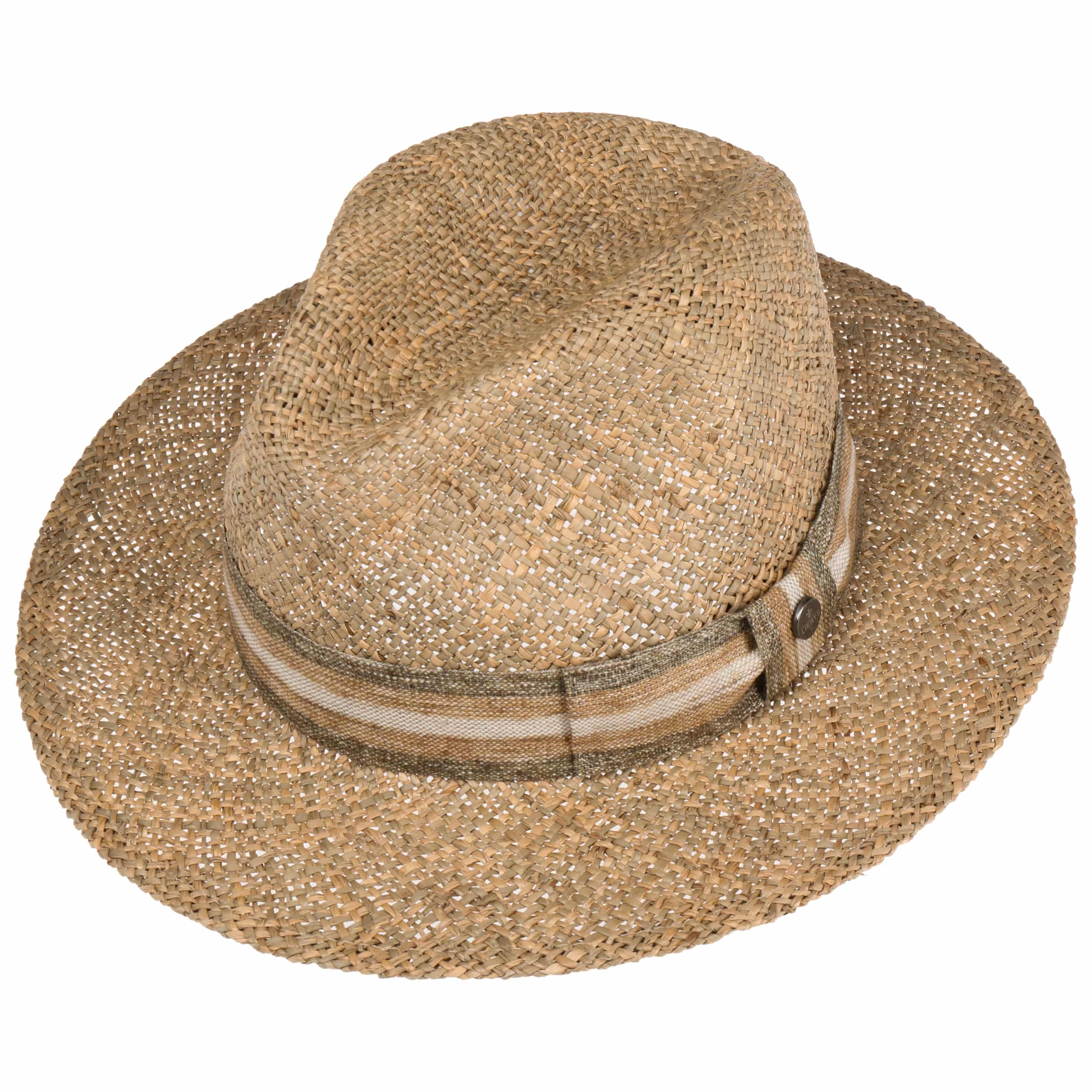 The label with the iris logo has dedicated itself to making modern, stylish and comfortable headwear along with matching accessories. Baseball caps, Trilby hats and Bogart hats have been made into timeless designs that give an outfit a classy splash of colour and bring a smart cut to your headwear. High quality knitted sets, which are available individually as beanies, peak pull on hats, Laplander hats, headbands, scarves, gloves etc., discreetly accentuate each lady’s or gentleman’s individuality. From woollen hats to flat caps, Lierys accessories can be worn in endless fashionable combinations.- Laranell Traveller Seagrass Hat by Lierys - nature-olive 1