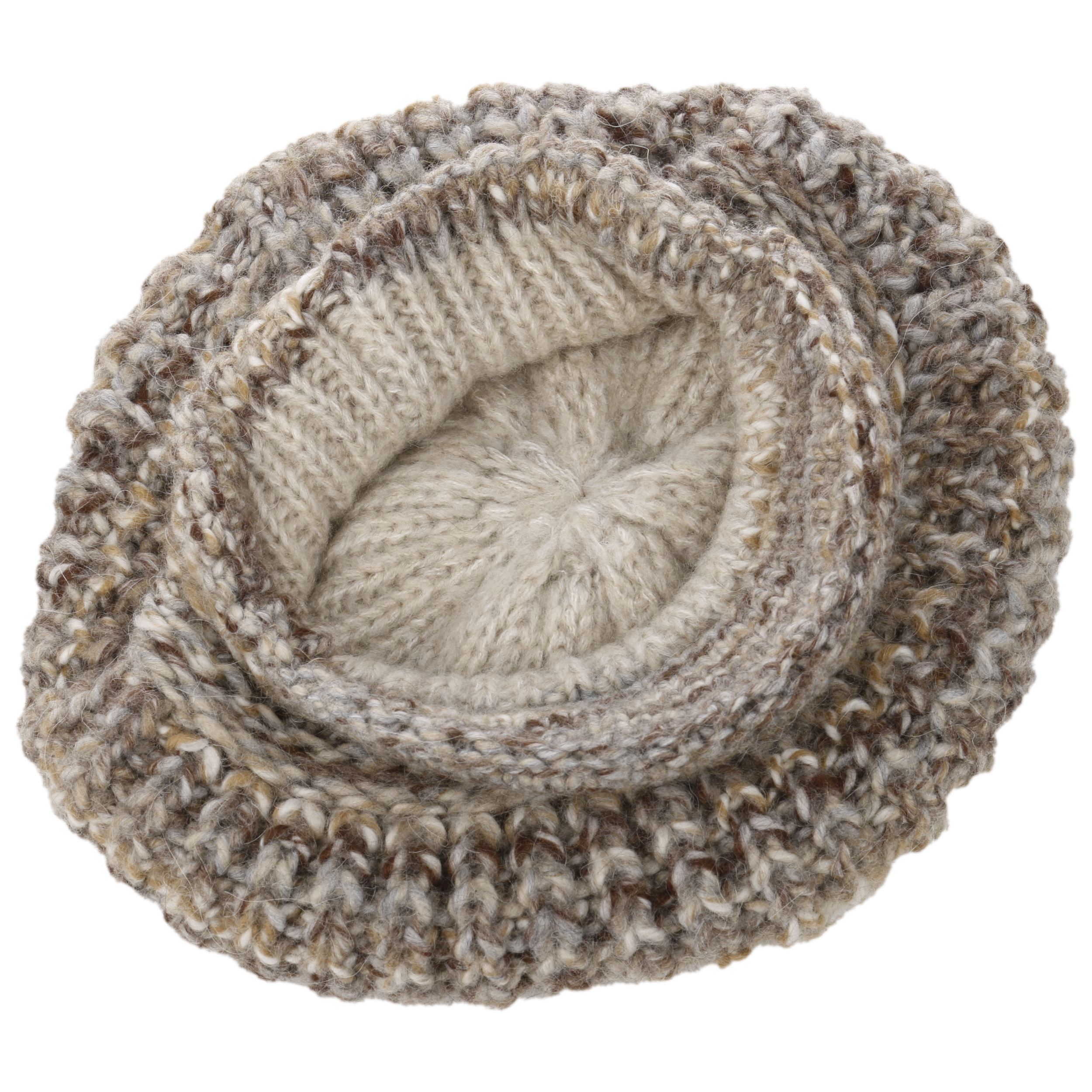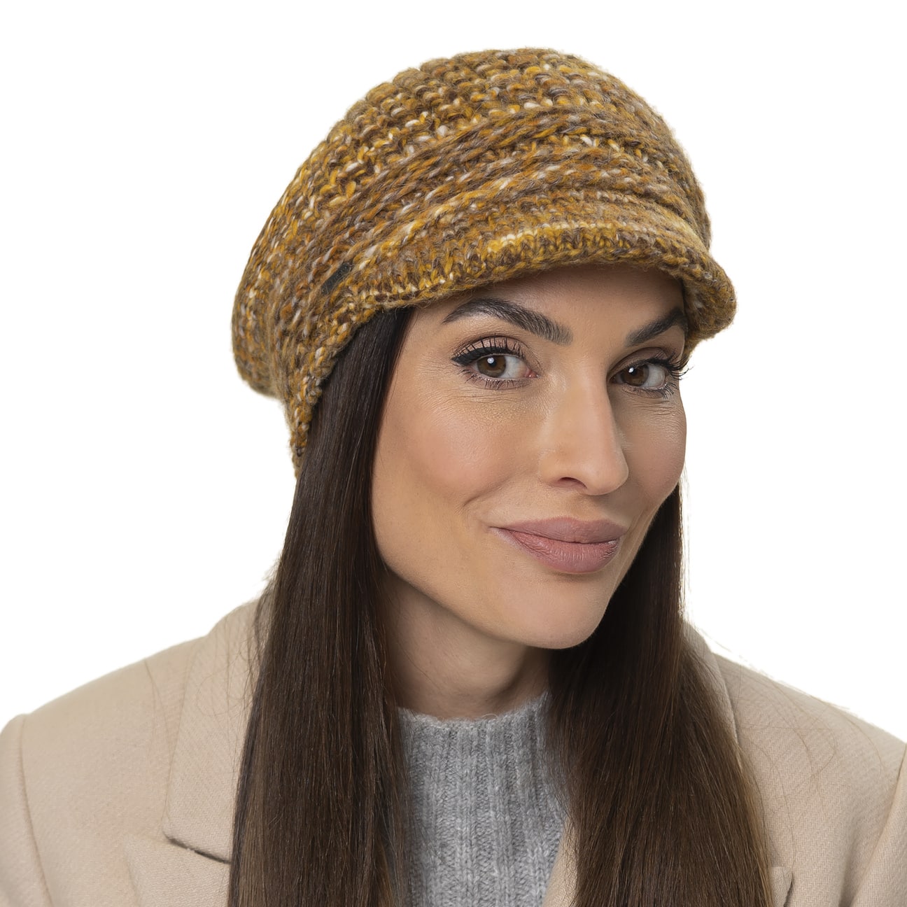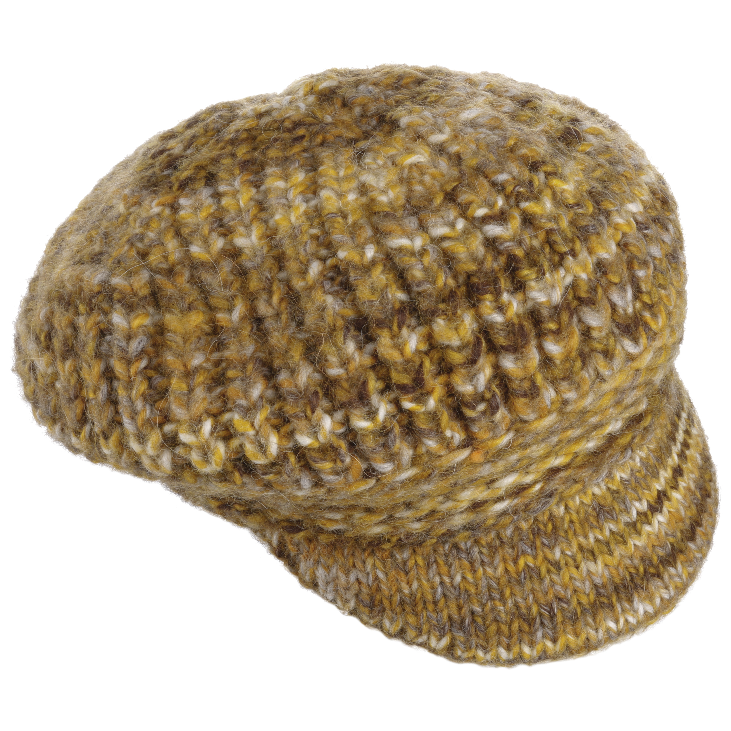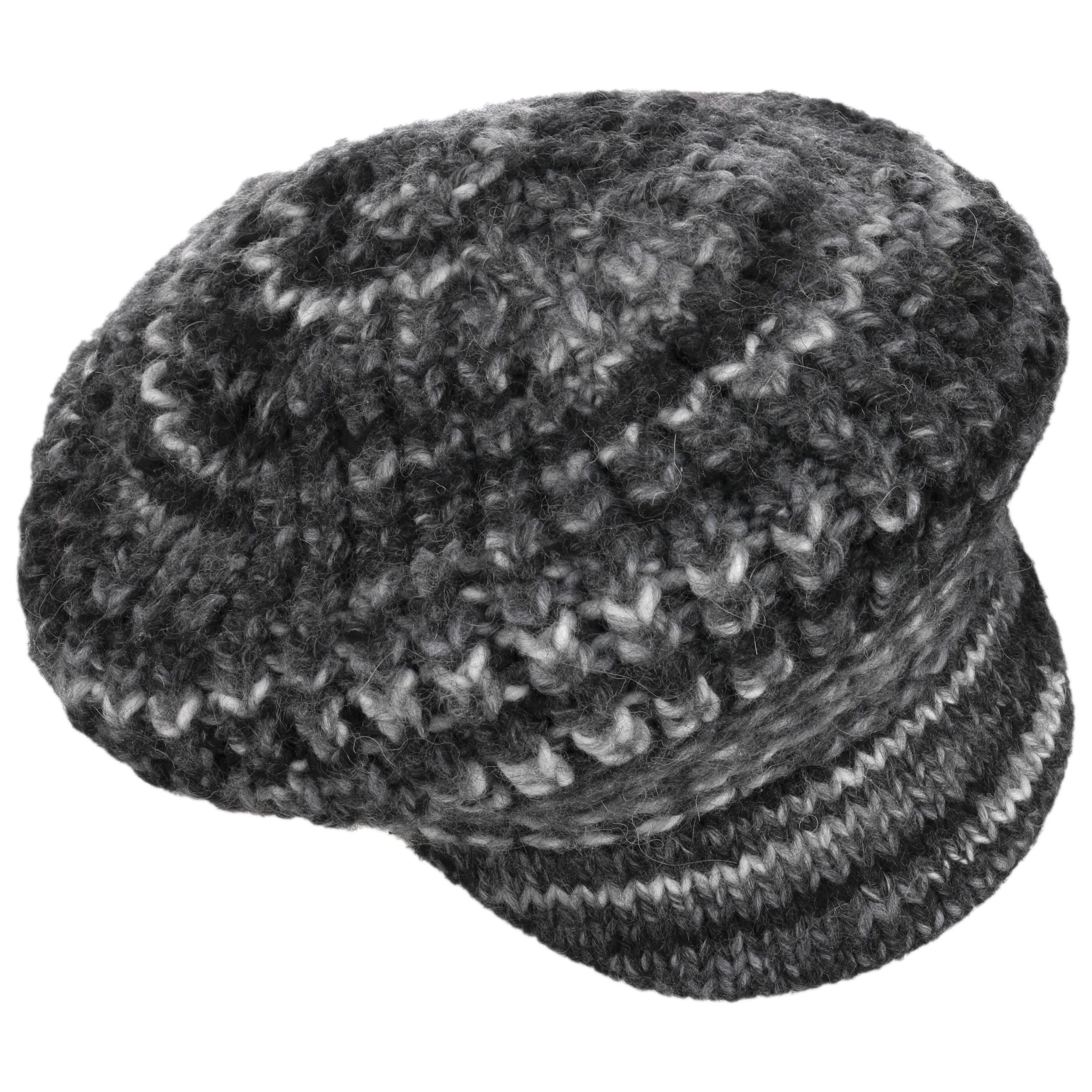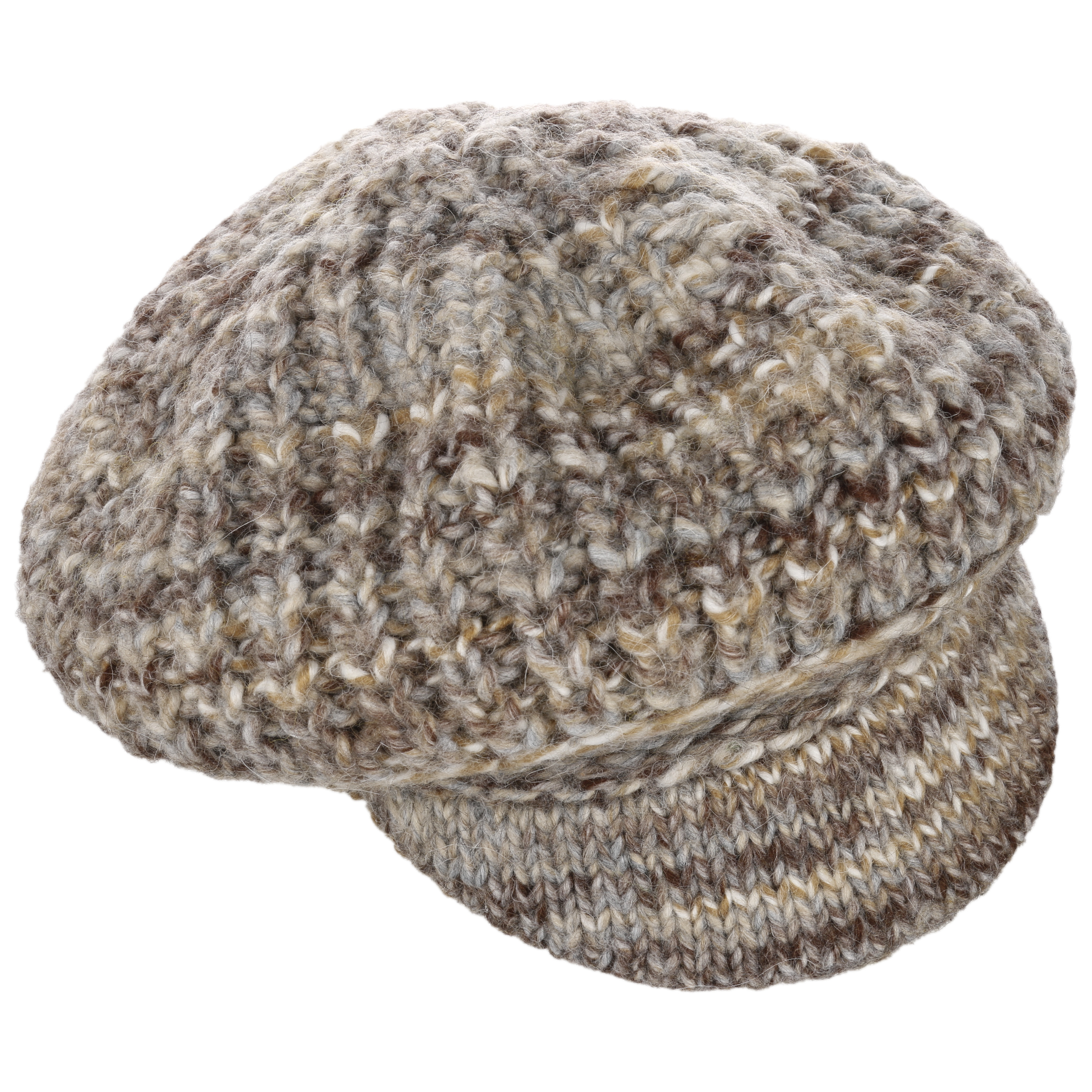 This winter hat from McBURN attracts attention with its jaunty peak. The casual yet elegant design blends harmoniously with feminine winter outfits. A chunky knit with a multicoloured, heathered pattern makes the cap look particularly cosy, while its blend of materials with wool and alpaca ensure it is pleasantly warm.