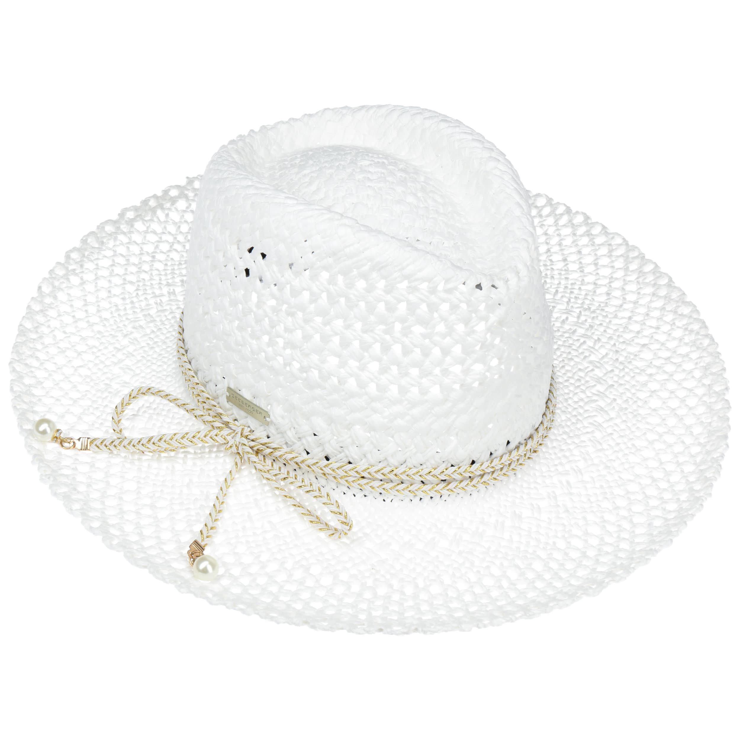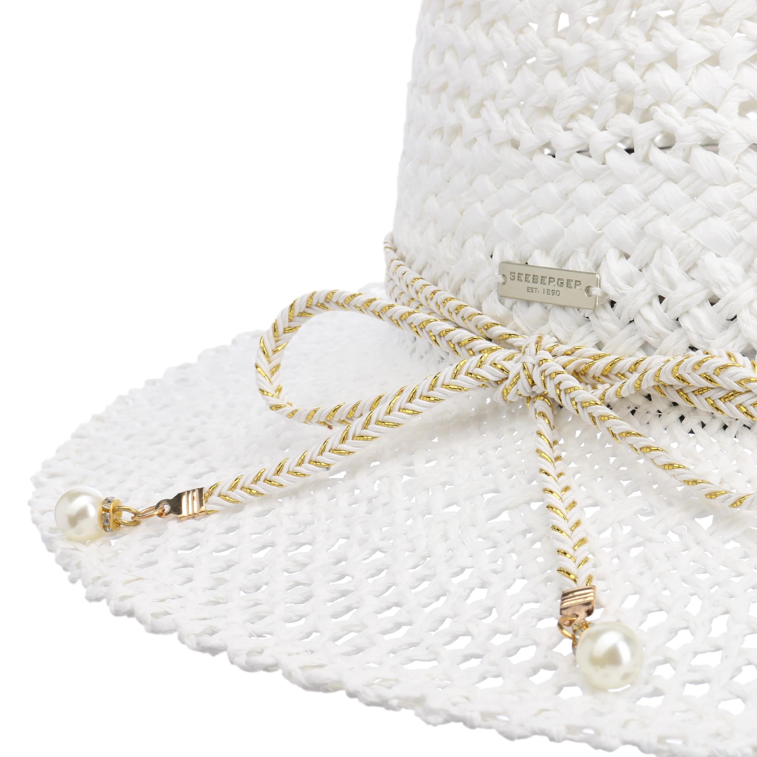 The family-owned entreprise from Allgaeu established in 1890 is known for stylish and timeless women's headwear. Using sophisticated fabrics pleasant to wear, Seeberger stands for very feminine, eye-catching women's hats: winter caps, cloth hats as well as different types of baker boy hats, broadbrimmed hats and berets.- Lasonja Straw Hat by Seeberger - white 1