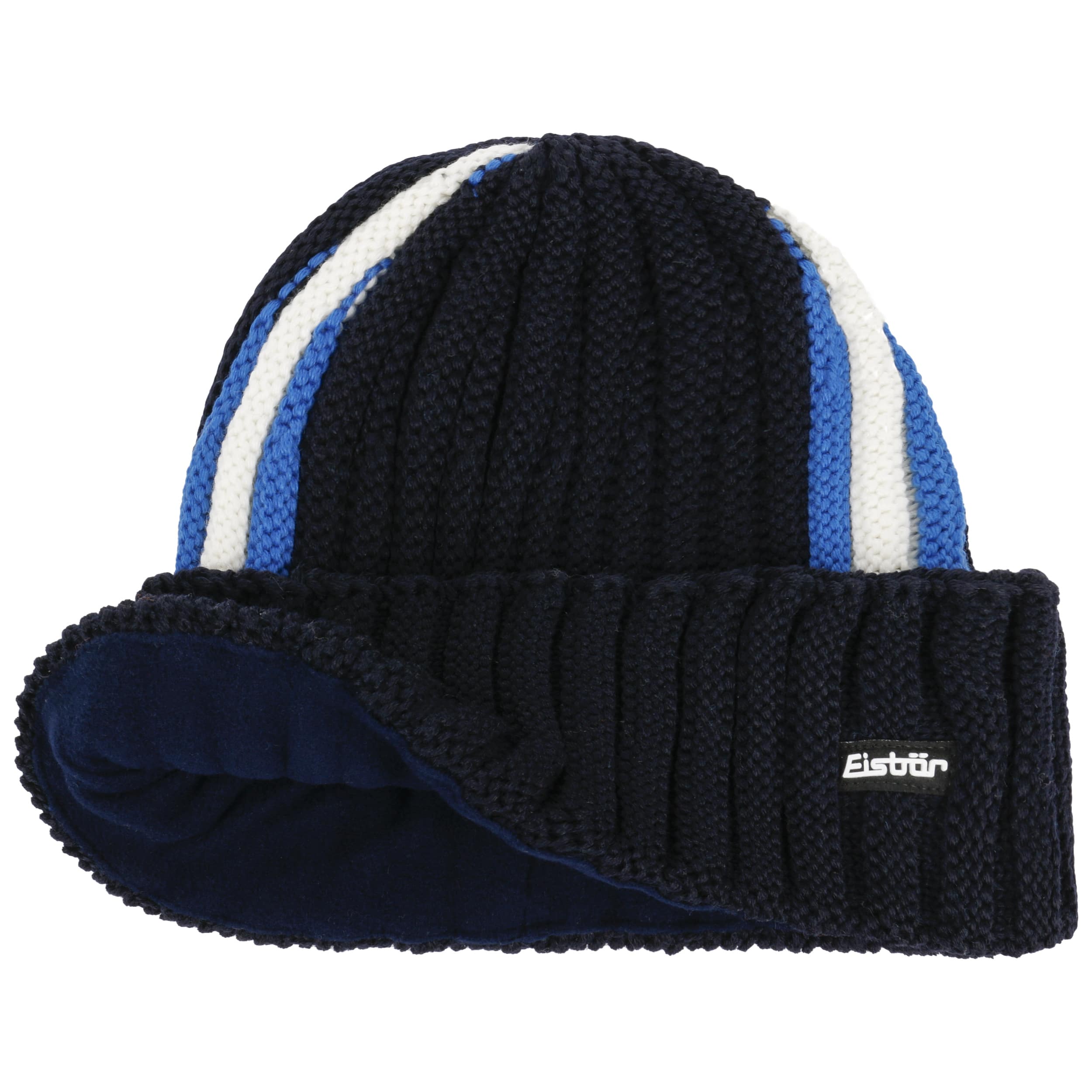 As official supplier of the Austrian national ski team, Eisbär makes high-quality sports hats, headbands and pullovers, using warm and functional knit and fleece fabrics. The identifying feature of the family-owned enterprise from Austria are extraordinary and funny styles in loud colours.- Leizel RL Merino Knit Beanie by Eisbär - navy 1