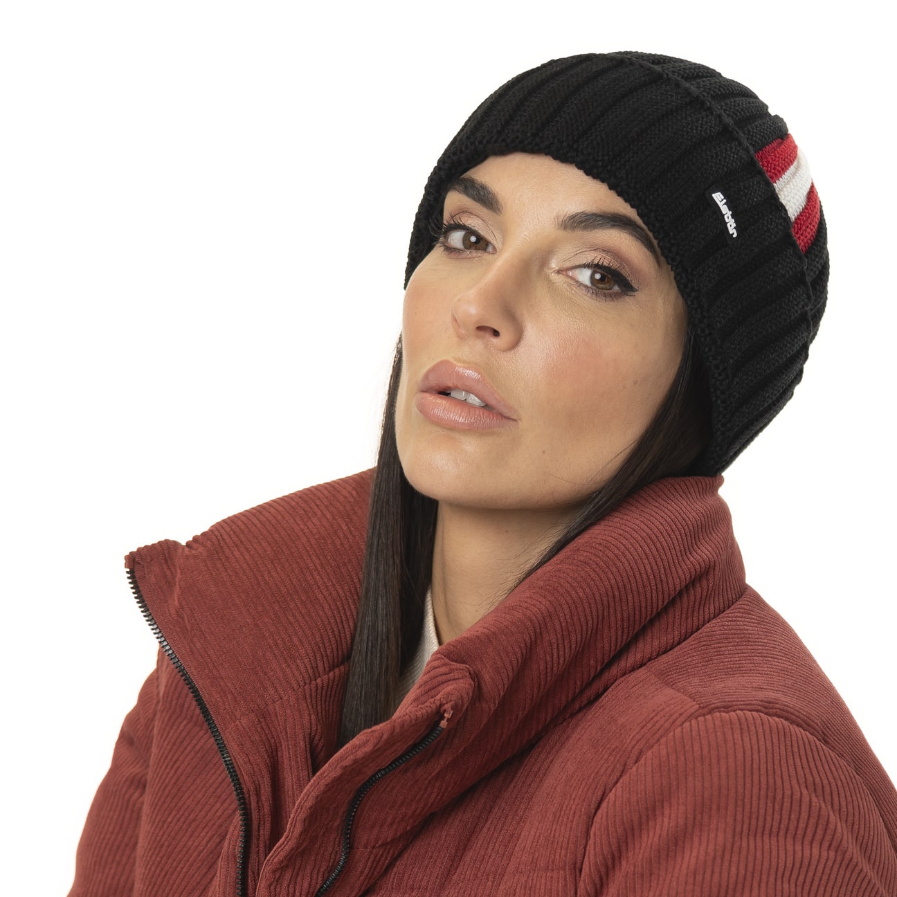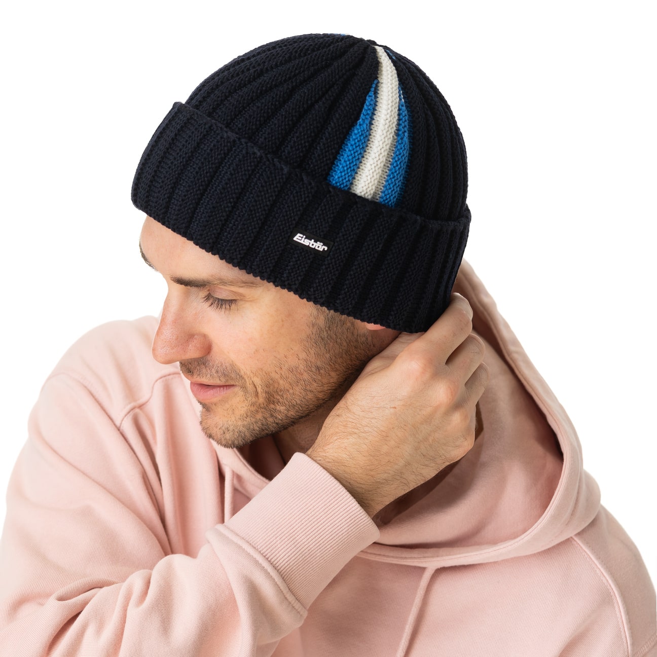 Environmental awareness is a priority for the Eisbär beanie, alongside warm comfort: The voluminous knitwear with three-dimensional and colourful vertical stripes is made from sustainably sourced merino wool and fabric fibres made from recycled plastic bottles. The complete absence of harmful and irritating chemicals and the fluffy fleece lining in the brim complete the carefree, cosy fit of the knitted hat with the wide turn-up that protects the ears.