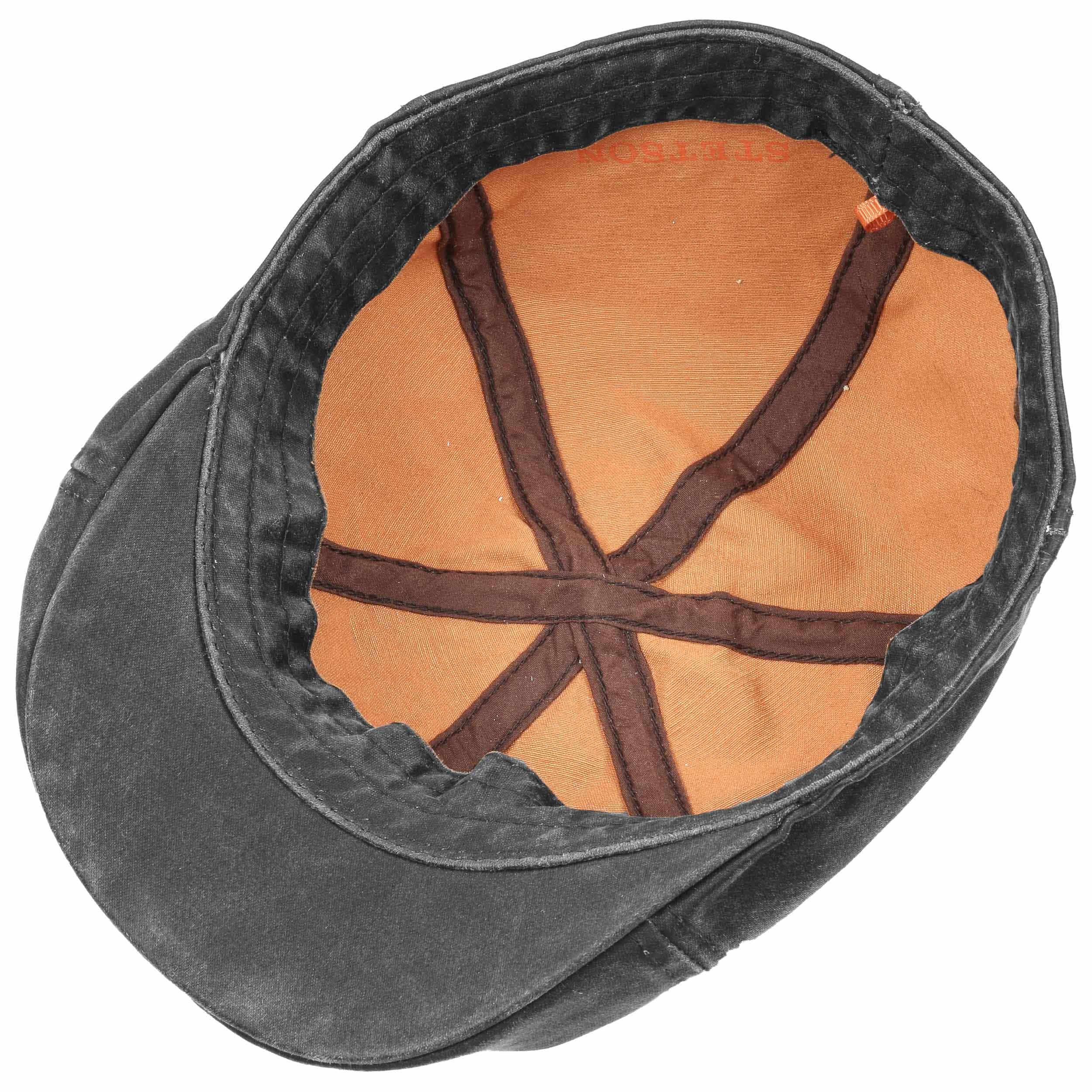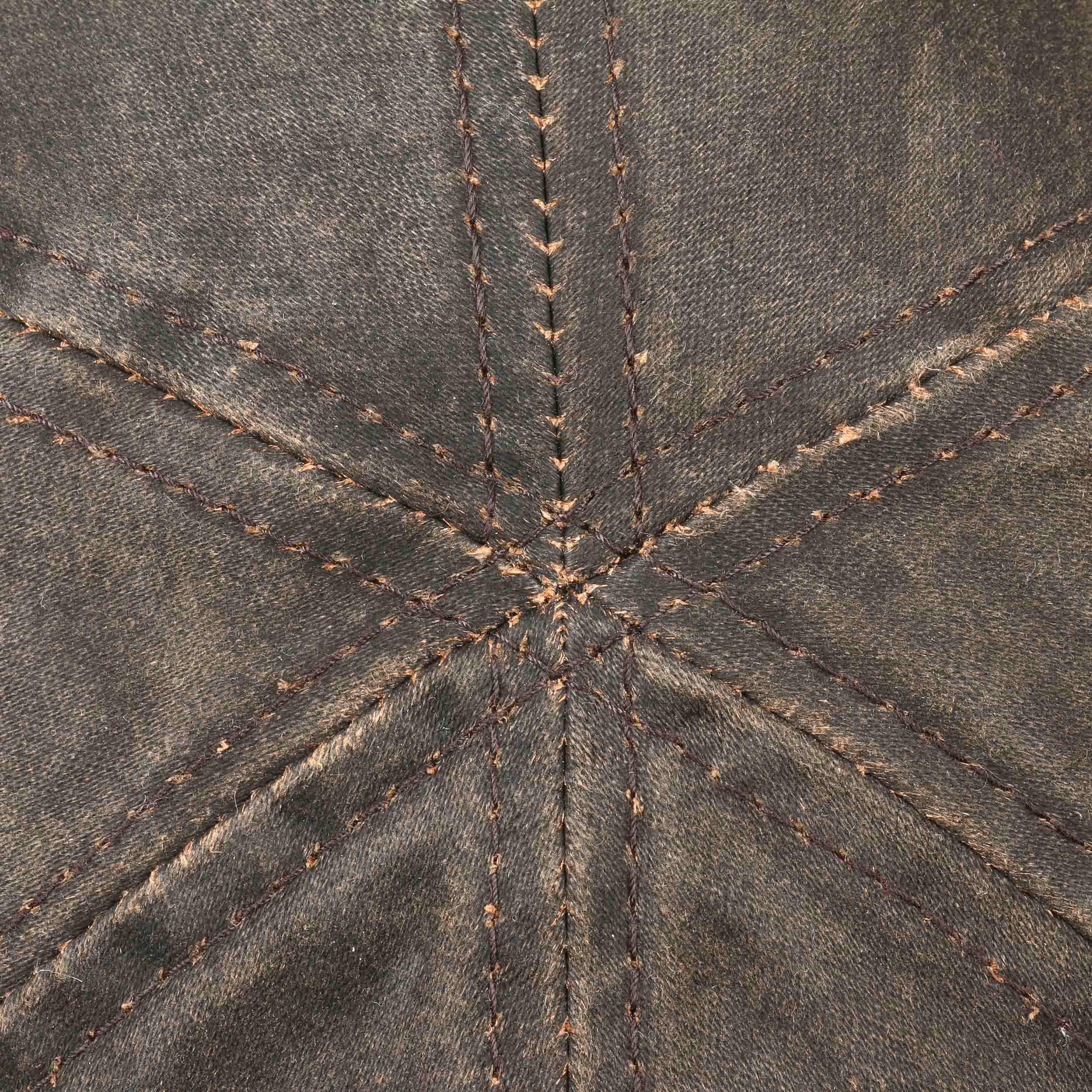 Waxed cotton makes this classic Stetson flat cap shimmer lightly. Its casual form promises comfortable headwear pleasure.With a high proportion of cotton and a polyurethane coating, the fabric has sturdy outdoor qualities, durability and water resistance. The on-trend distressed look and vintage styling result from rinsing off the protective coating after application.