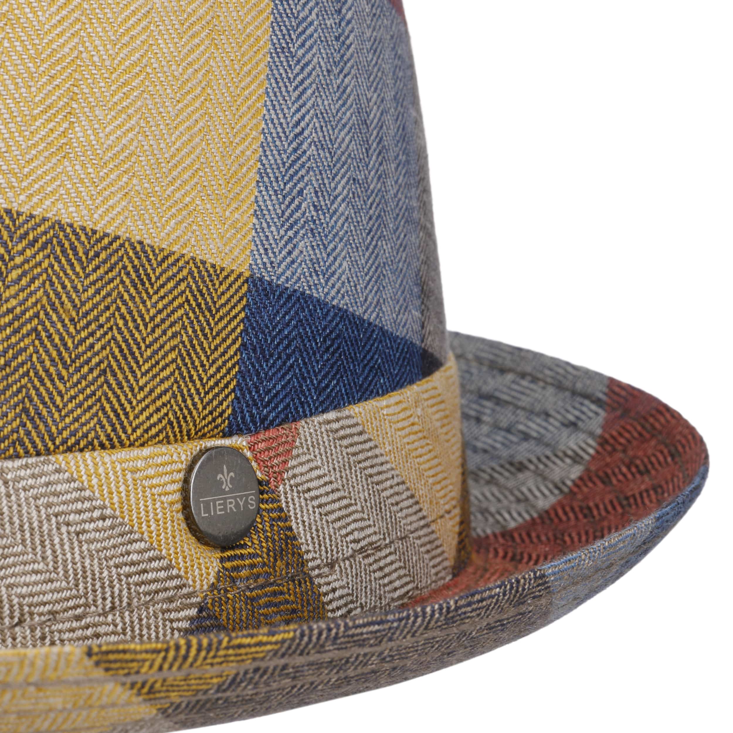 With its characteristic pork pie design, this hat brings joie de vivre and retro charm to any summer wardrobe. The multi-coloured checked look and compact shape make it a fashion statement for holidays, festivals and relaxed occasions in town. The fine linen material from Lierys is pleasantly light and gives an airy feel – perfect on warm days. The fine pattern and small brand emblem give the hat an individual touch. Made in Italy.