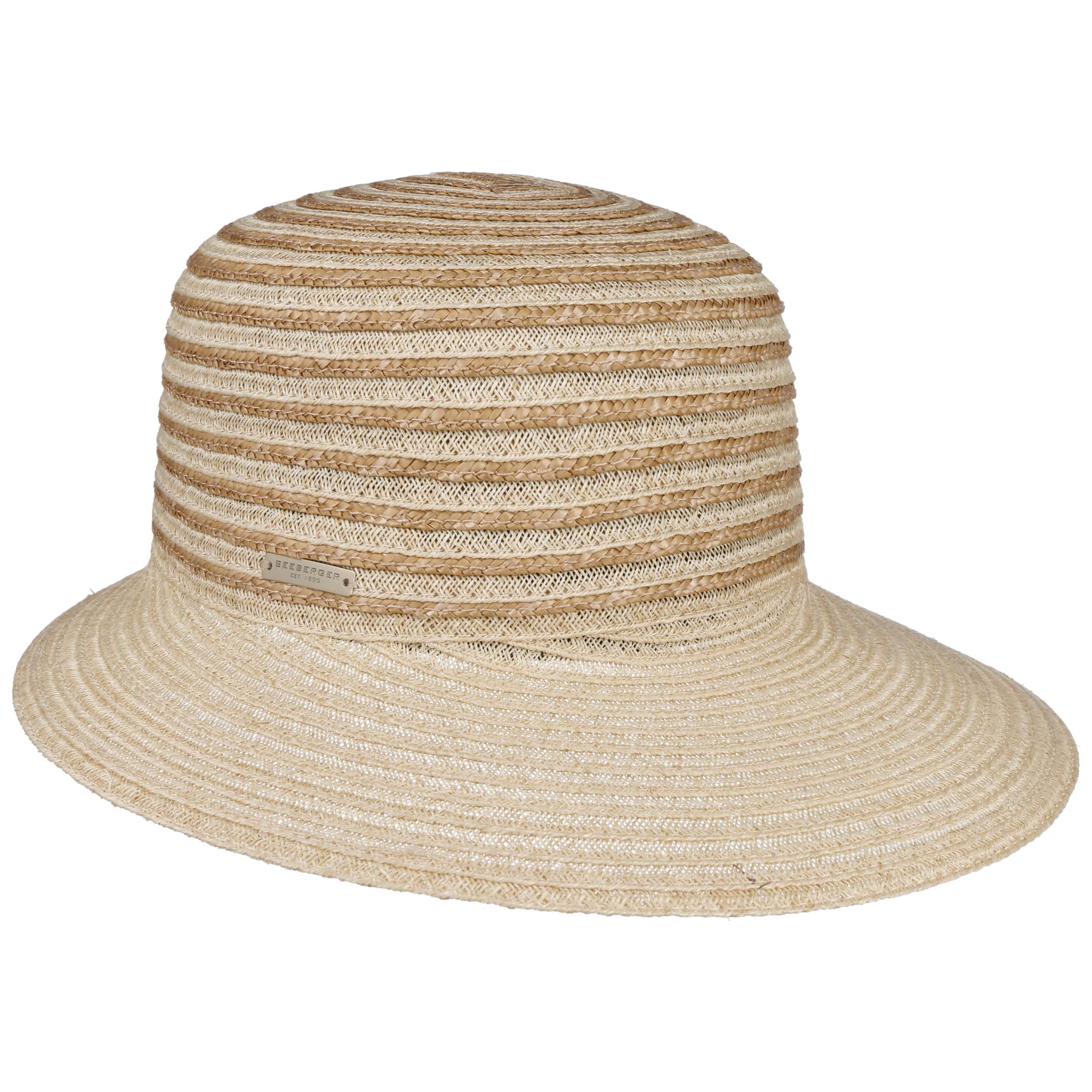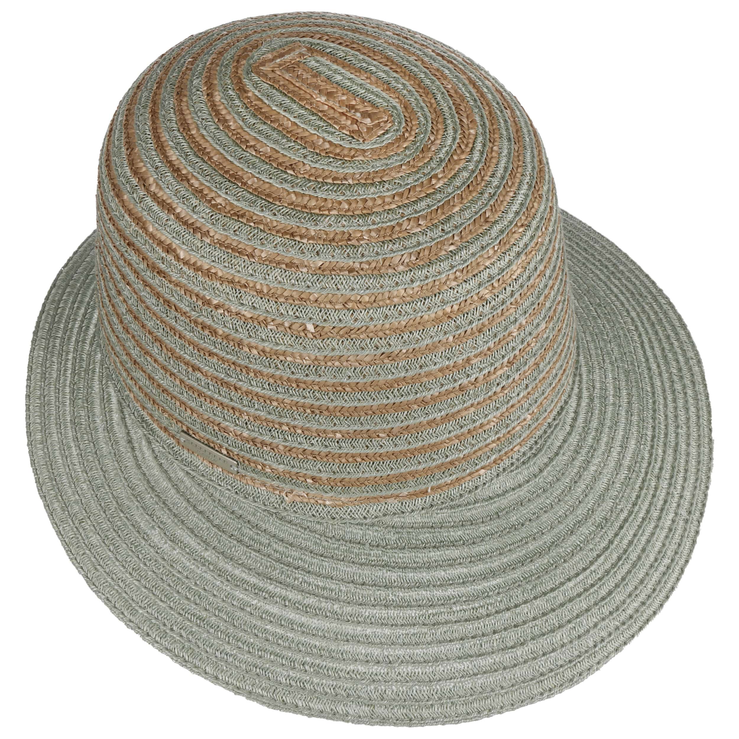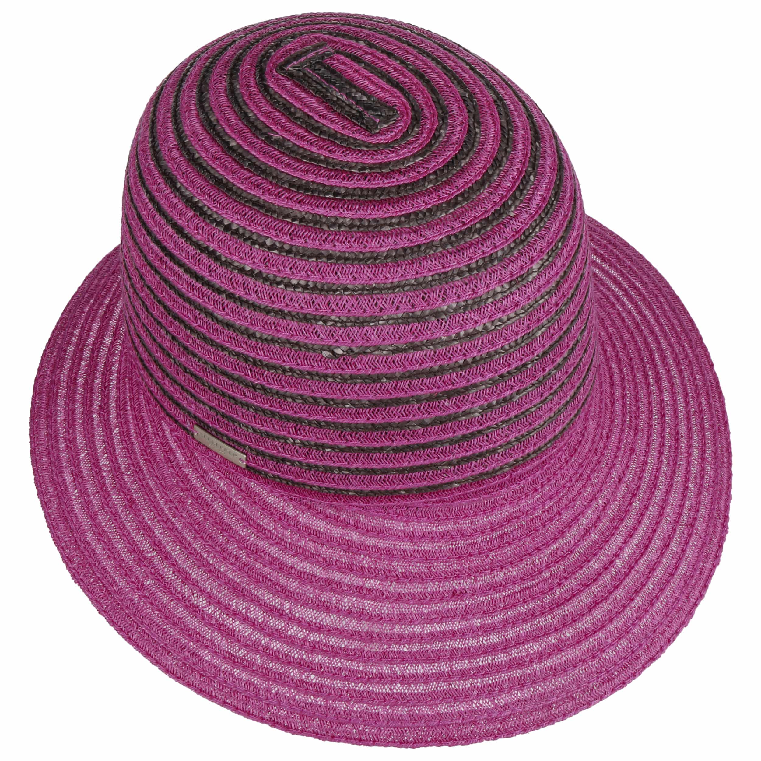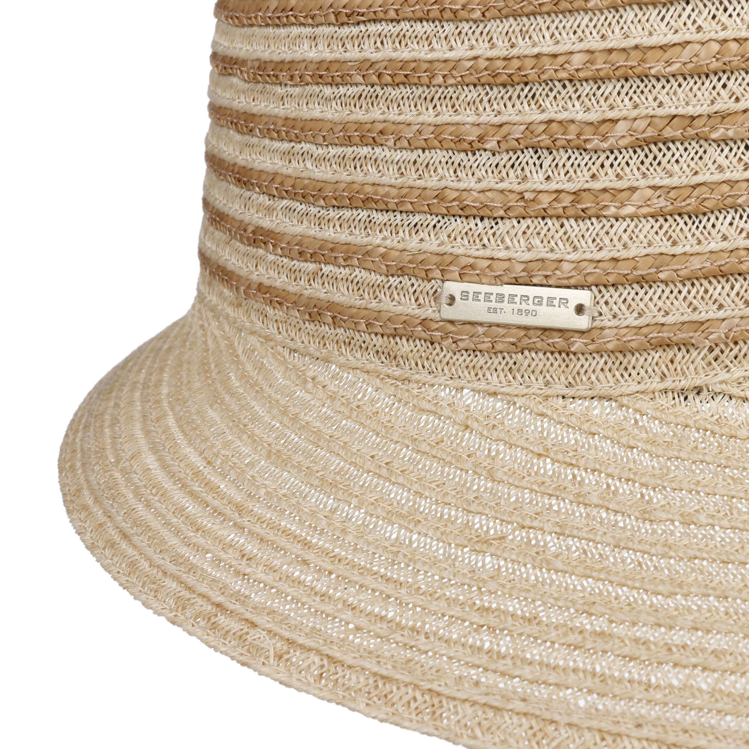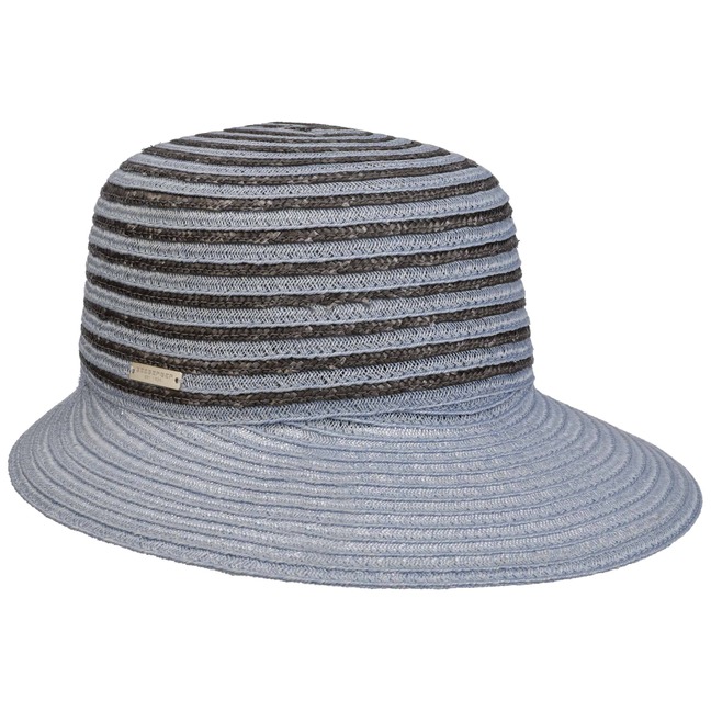 Different coloured braids made from 100% straw make the striped poke bonnet from Seeberger a fashionable eye-catcher. The elegant shape and maritime design exude summery lightness. An integrated stretch lining band ensures an optimal fit of the air-permeable headwear. This elegant straw hat with a wide plain-coloured brim is ideal for carefree holidays. It protects you from the sun and wind, and rounds off feminine casual outfits.
