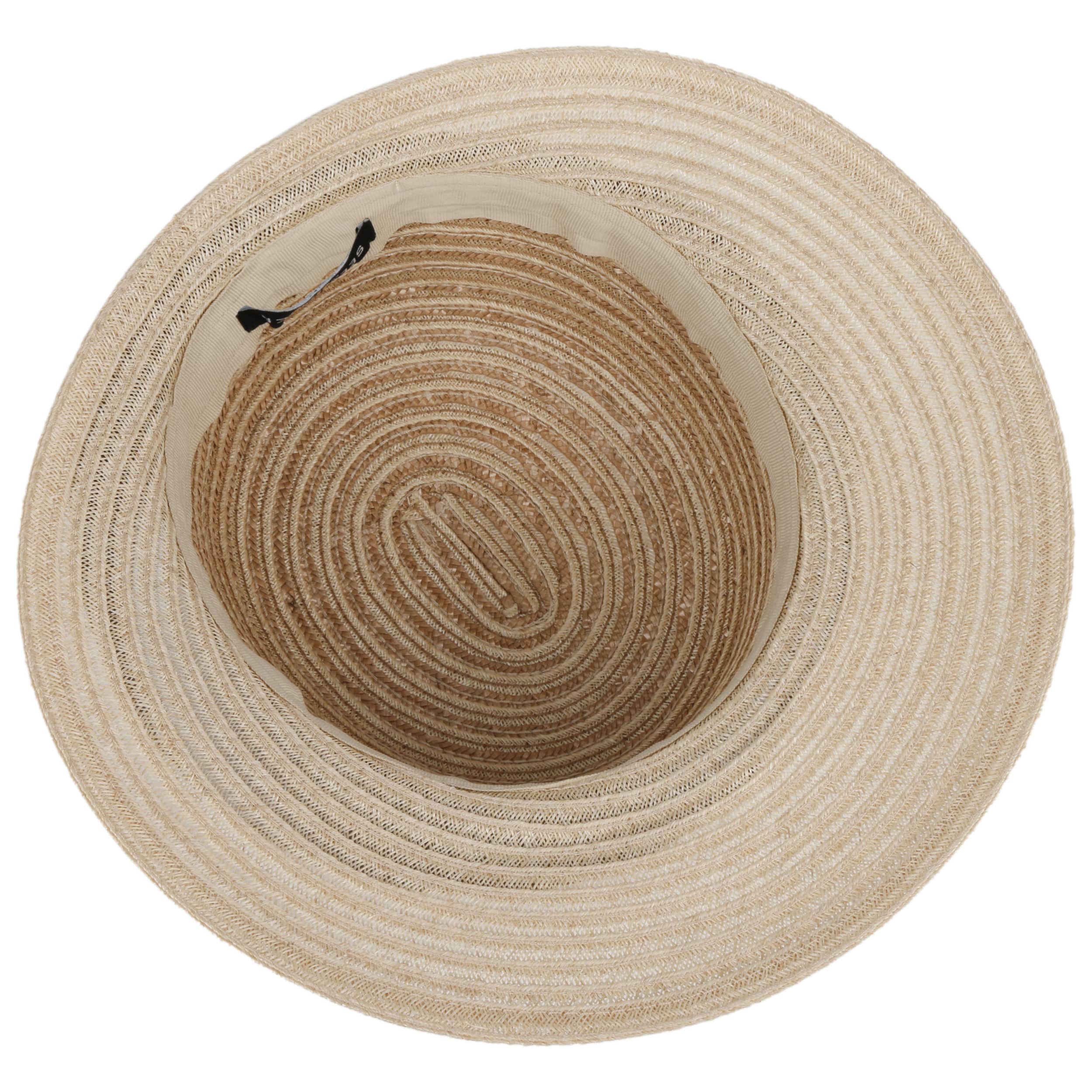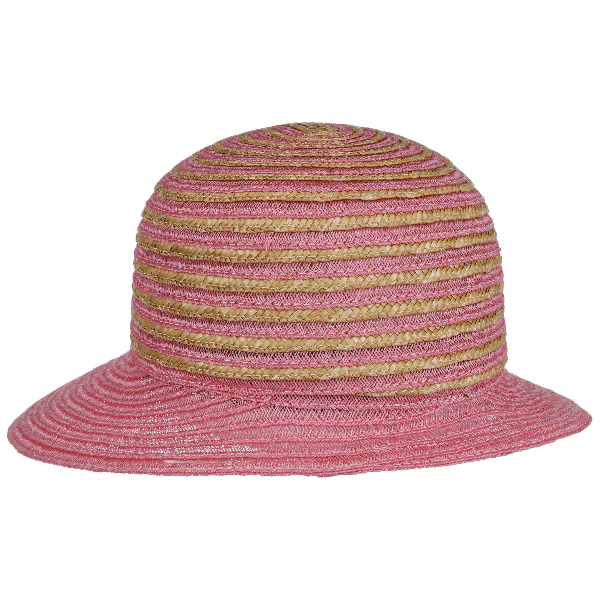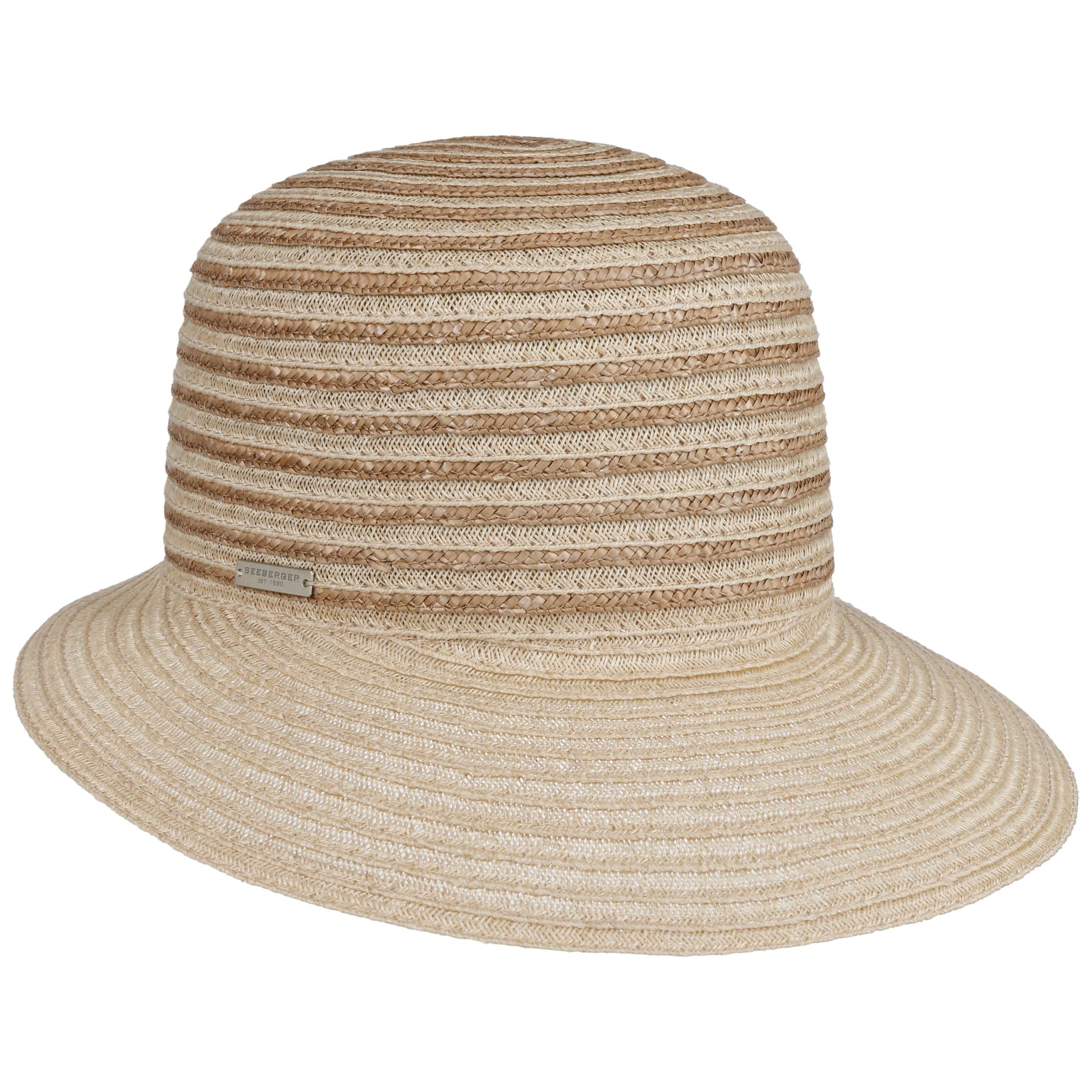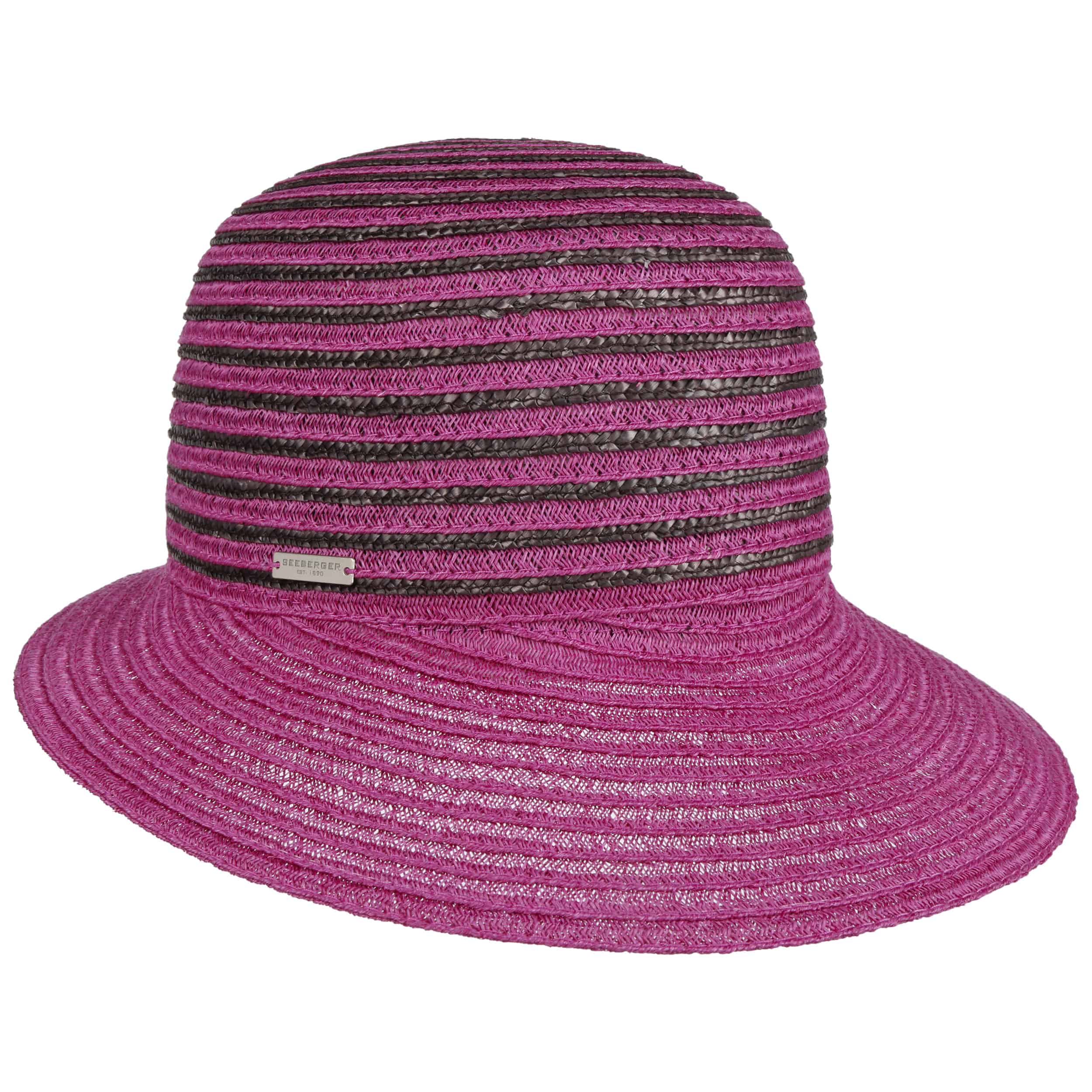 Different coloured braids made from 100% straw make the striped poke bonnet from Seeberger a fashionable eye-catcher. The elegant shape and maritime design exude summery lightness. An integrated stretch lining band ensures an optimal fit of the air-permeable headwear. This elegant straw hat with a wide plain-coloured brim is ideal for carefree holidays. It protects you from the sun and wind, and rounds off feminine casual outfits.