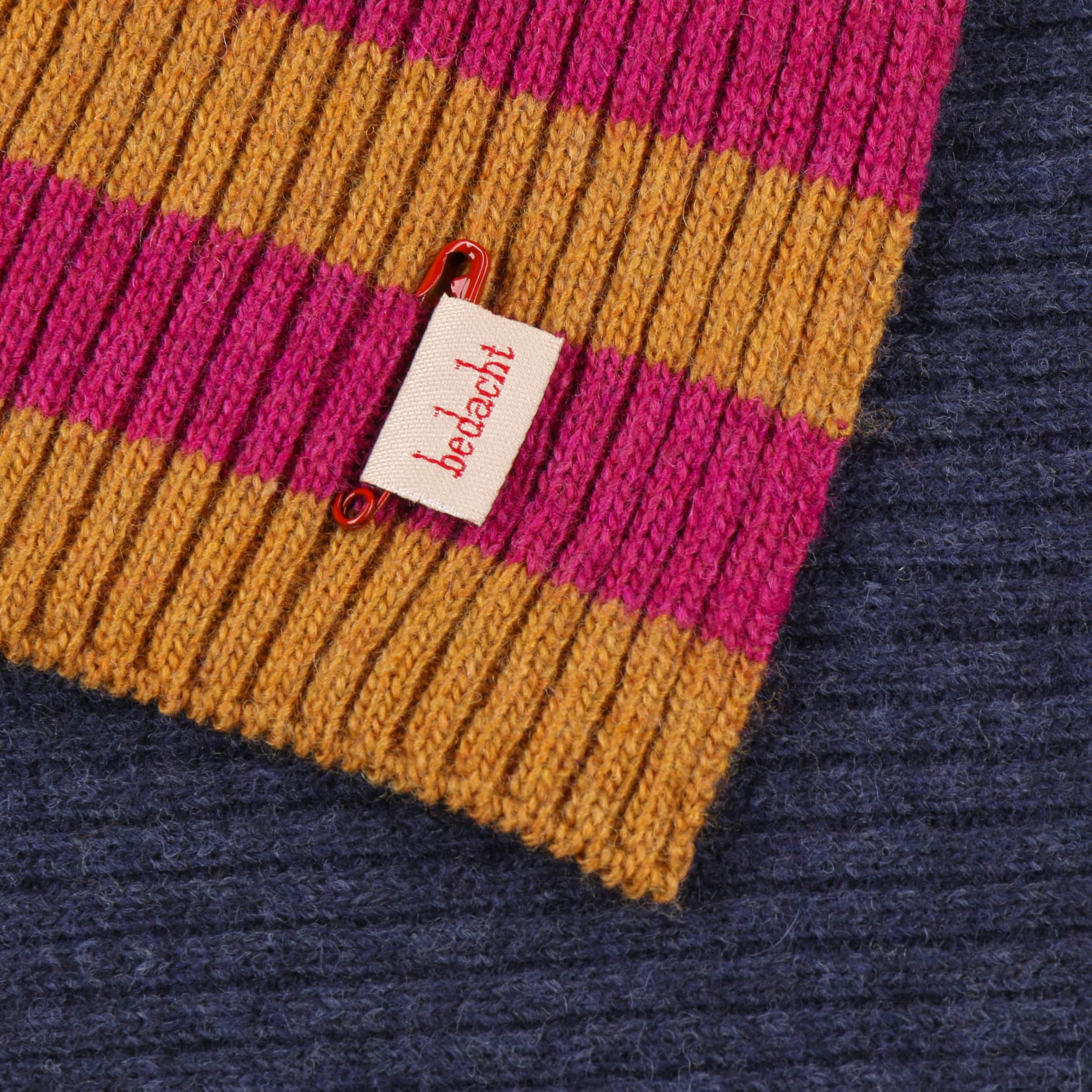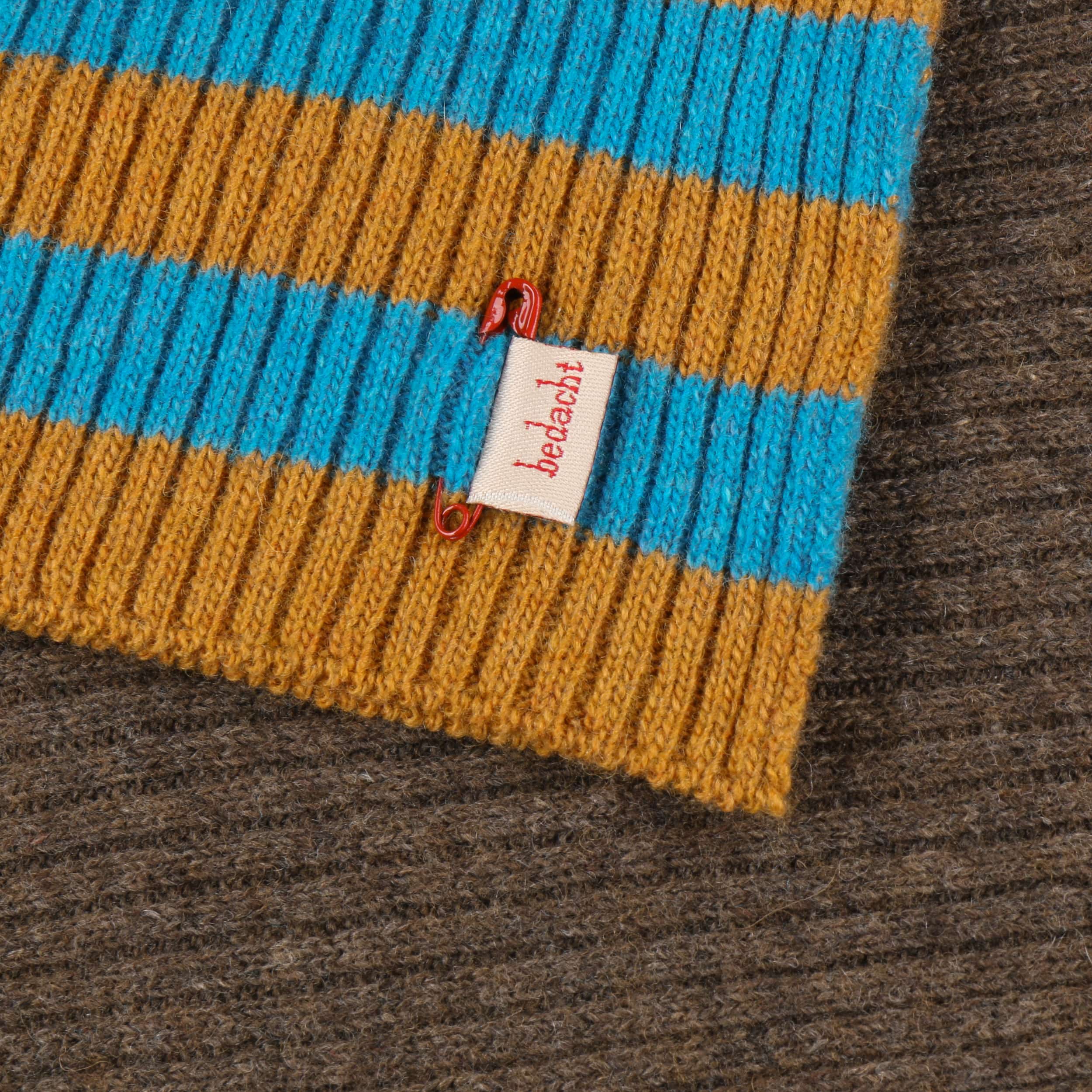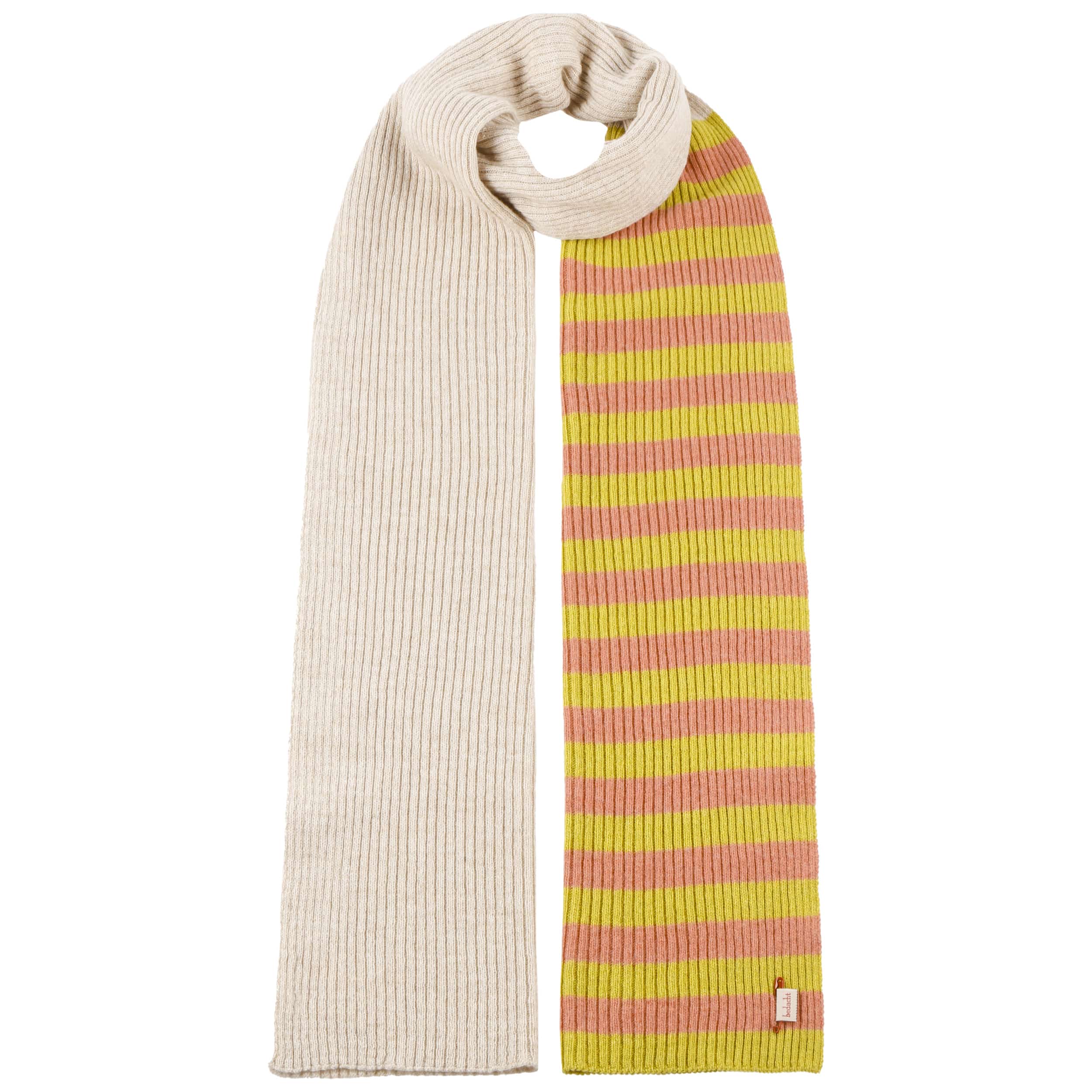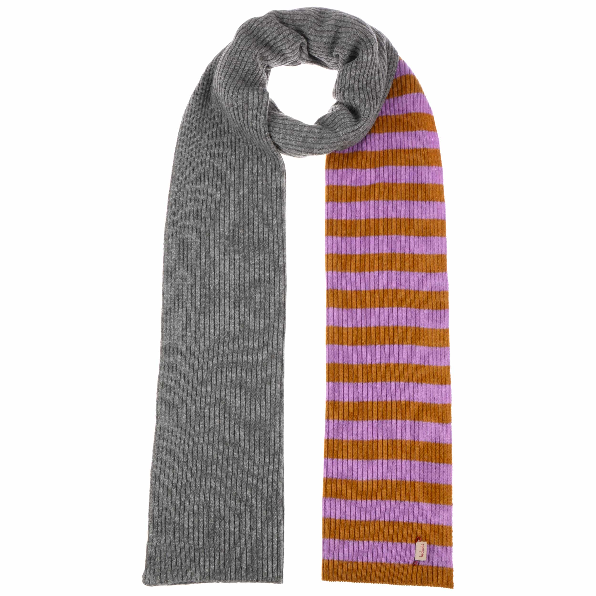 The fashionable knitted scarf from bedacht combines Italian quality workmanship with a pleasantly soft material mix of wool and fine cashmere. Its charming striped pattern on one side provides a lively contrast to the subtle plain colour on the other side – ideal for creating a variety of looks. With its generous size, this attractive winter scarf nestles warmly around the neck and is the perfect accessory for style-conscious women whenever it’s cold.