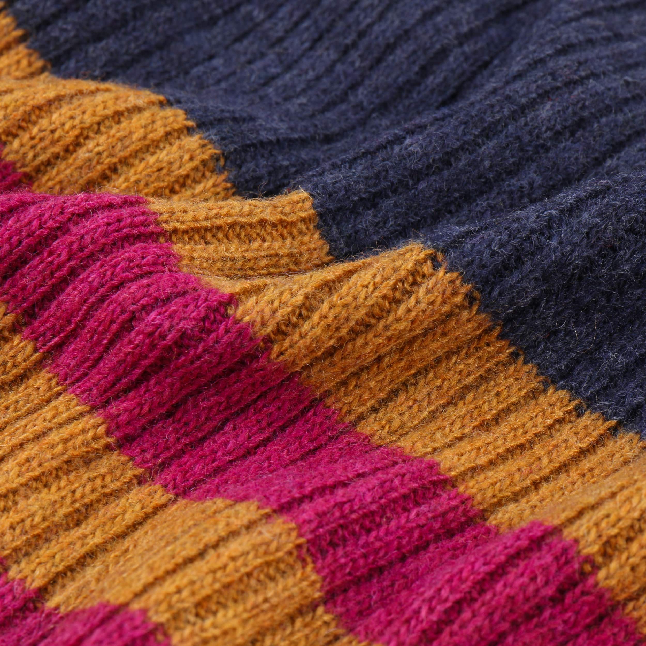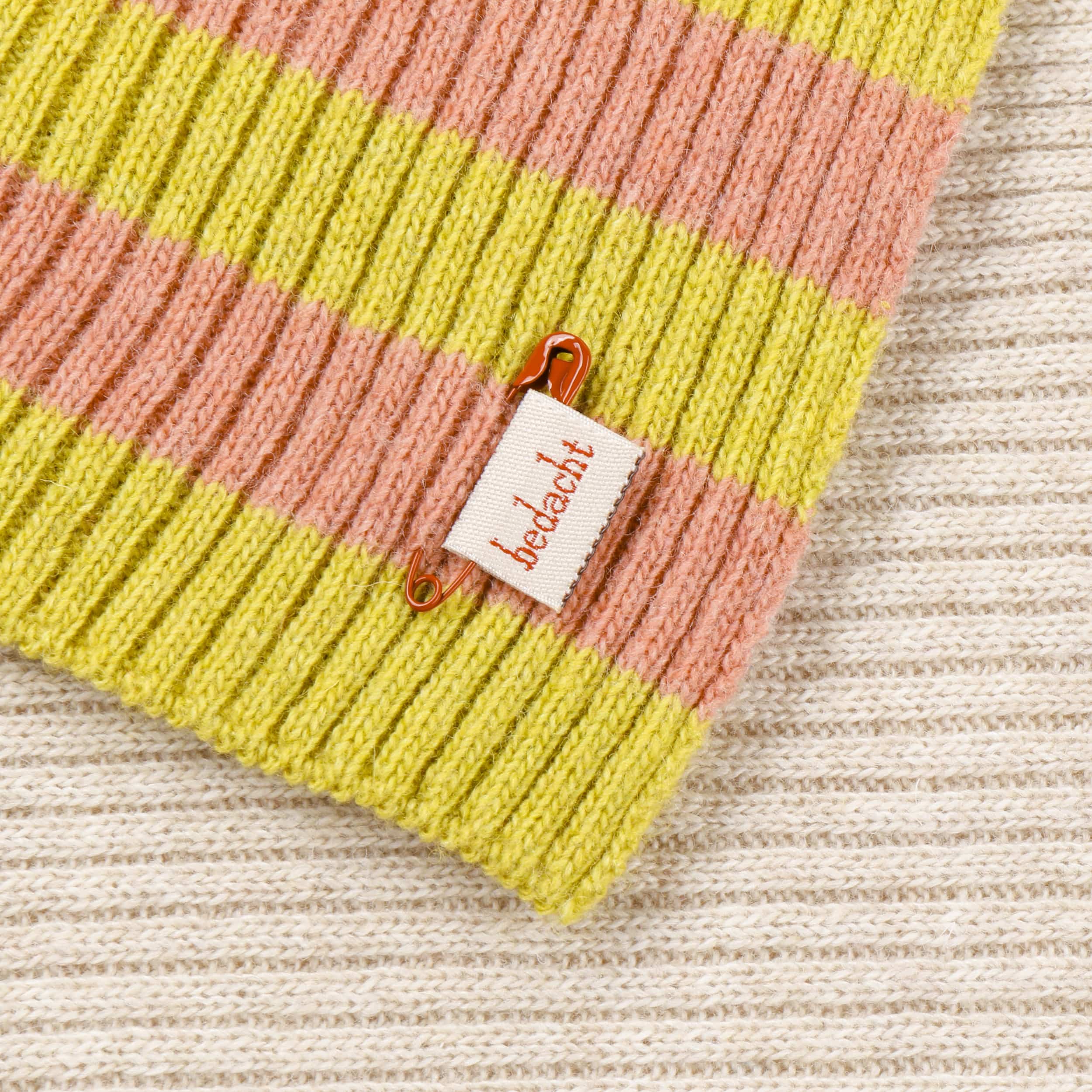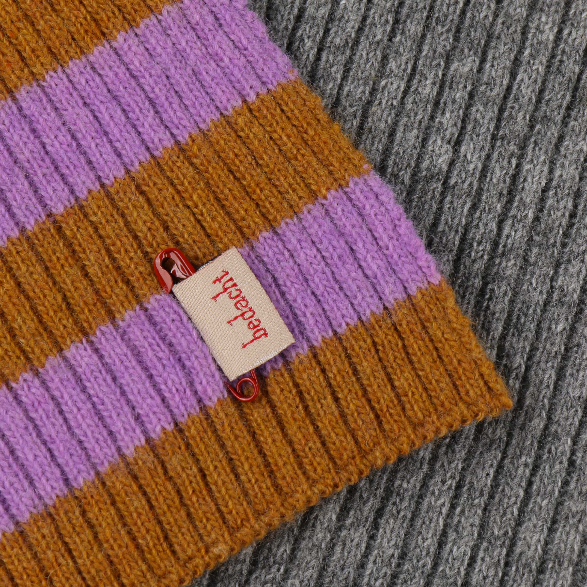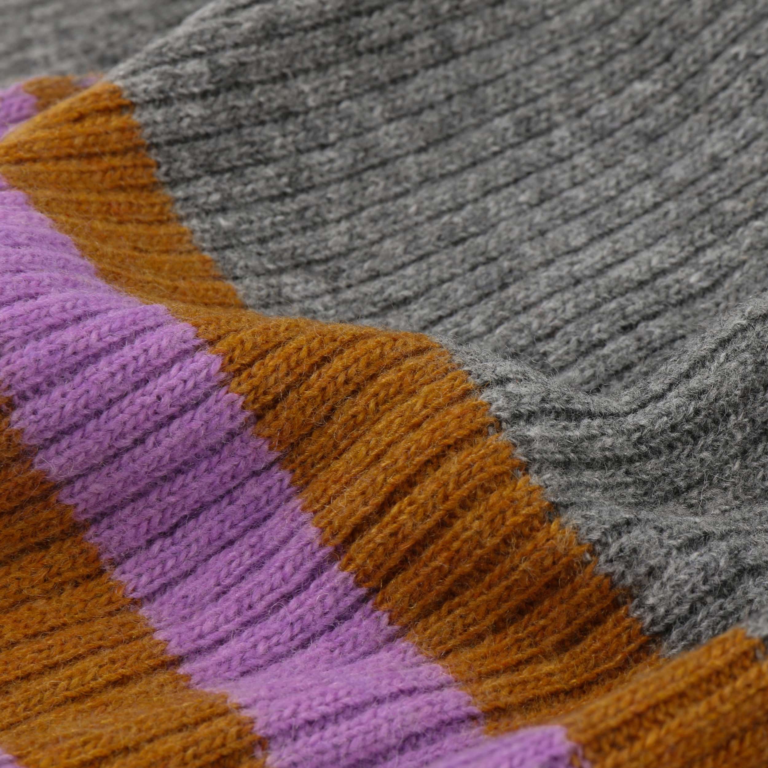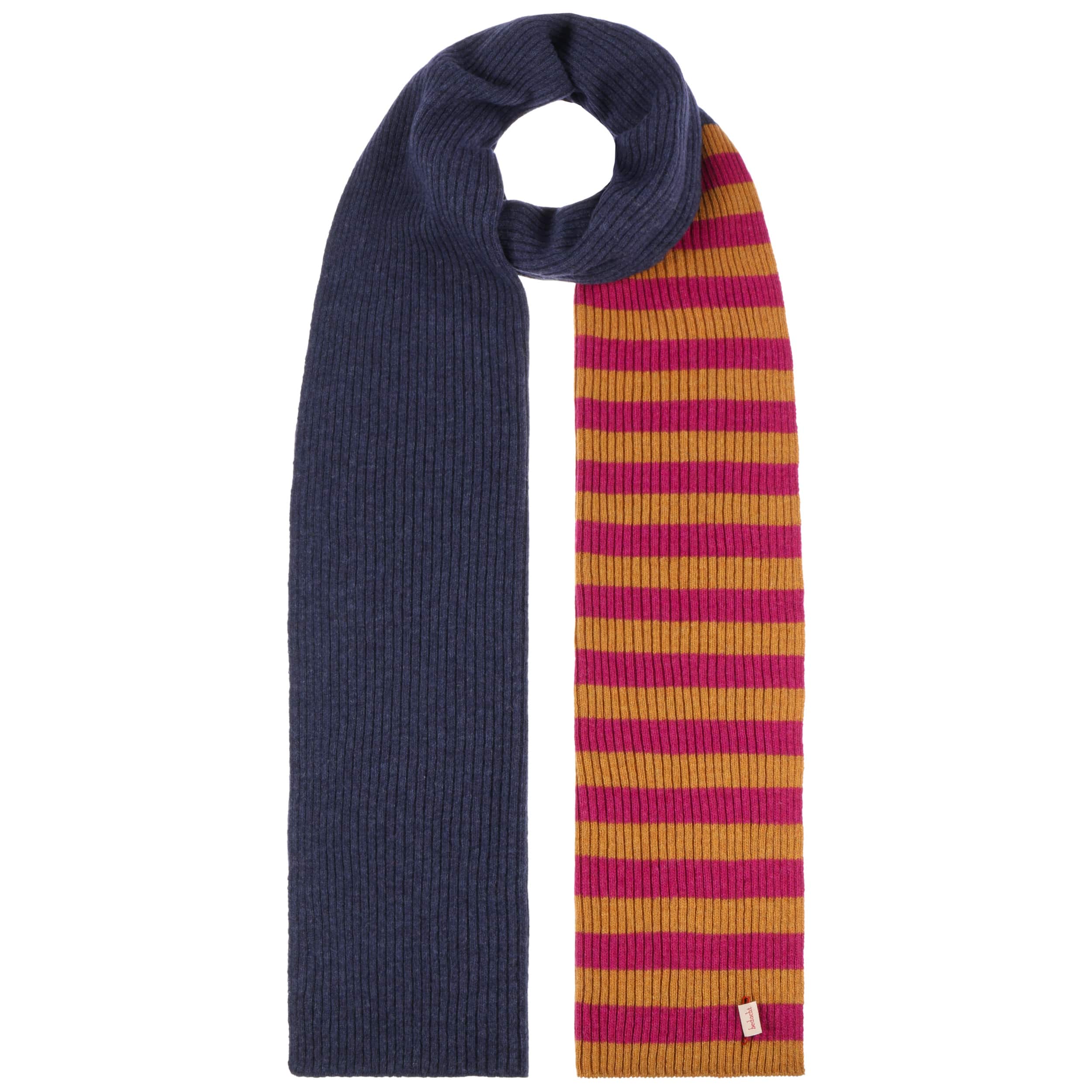 The fashionable knitted scarf from bedacht combines Italian quality workmanship with a pleasantly soft material mix of wool and fine cashmere. Its charming striped pattern on one side provides a lively contrast to the subtle plain colour on the other side – ideal for creating a variety of looks. With its generous size, this attractive winter scarf nestles warmly around the neck and is the perfect accessory for style-conscious women whenever it’s cold.