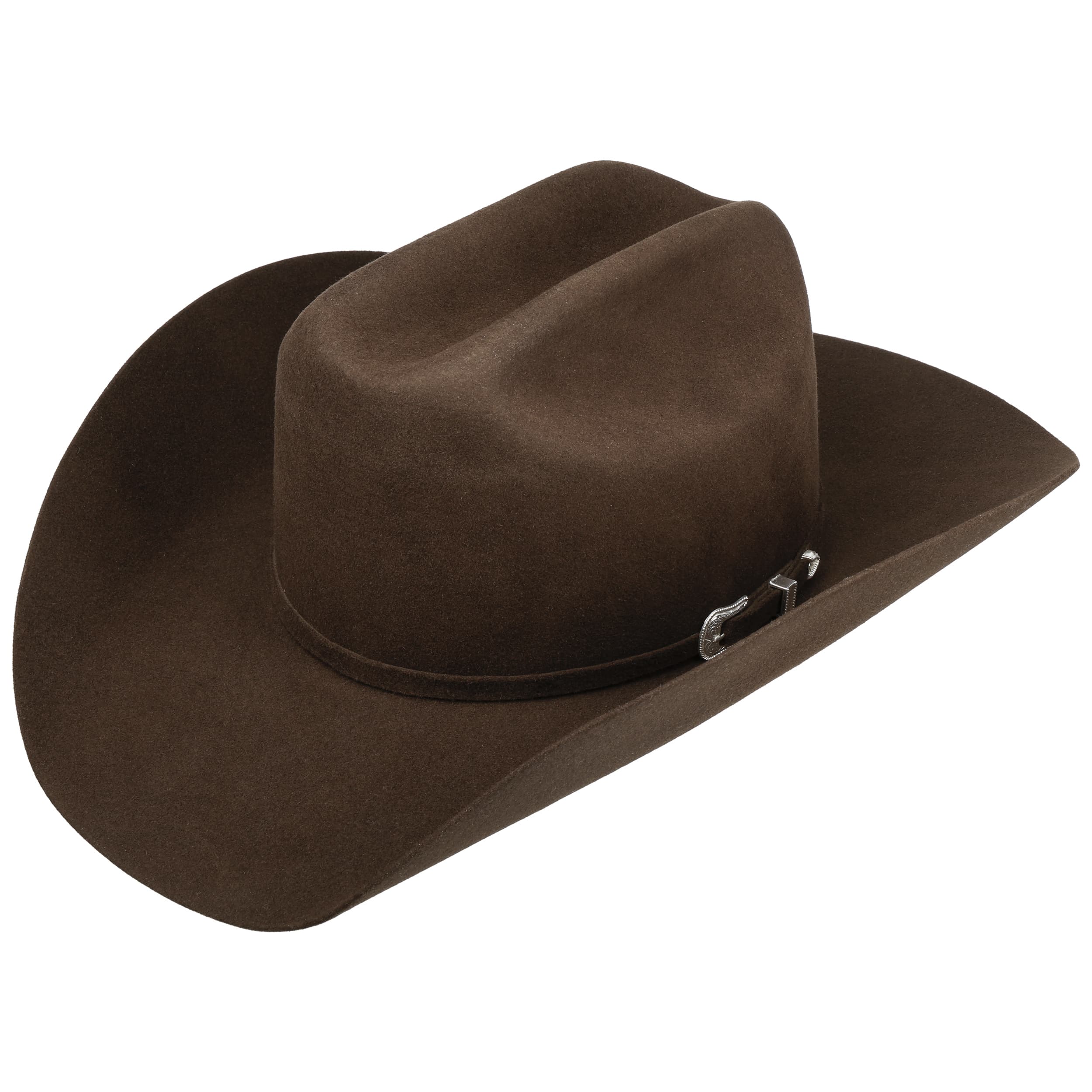 With its typical cattleman shape, this Western hat embodies the traditions of the American West. The narrow trim band with silver-coloured metal buckle gives the Bailey 1922 design an authentic character, while the wide brim not only makes an impression but also offers practical protection. High-quality wool felt, combined with fine rabbit hair, ensures a pleasant, dimensionally stable feel. A breathable inner lining and a soft leather lining band further emphasise comfort. Made in the USA.