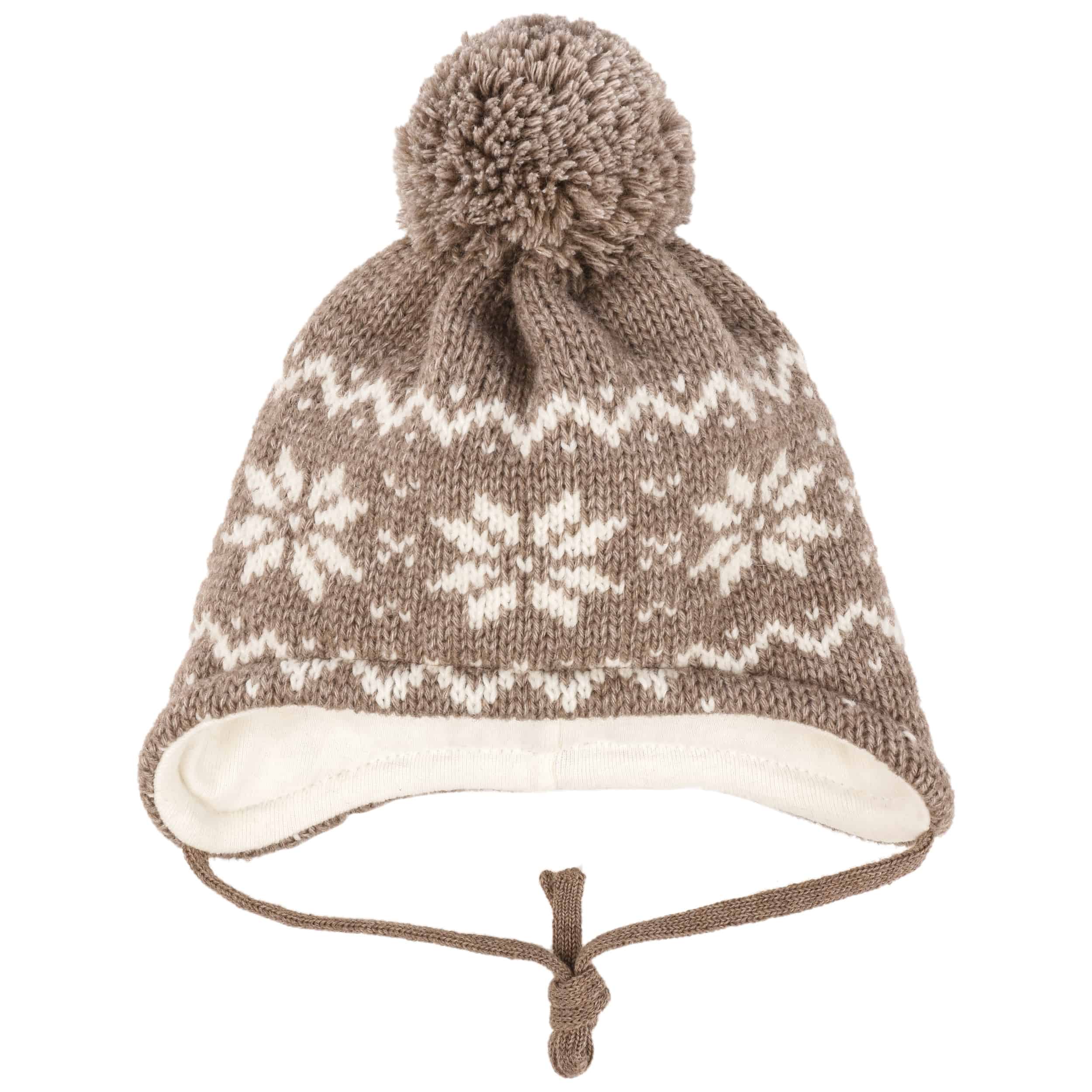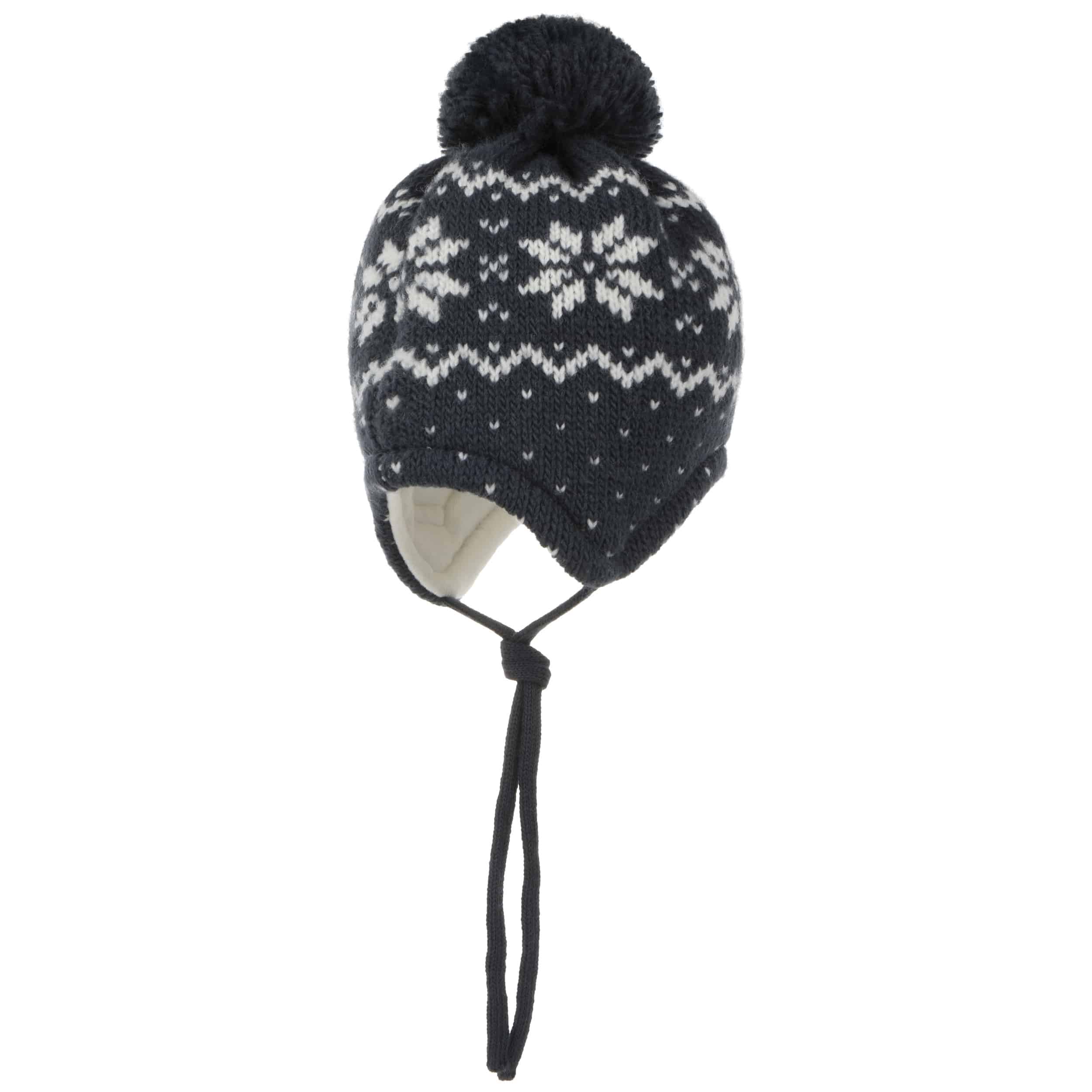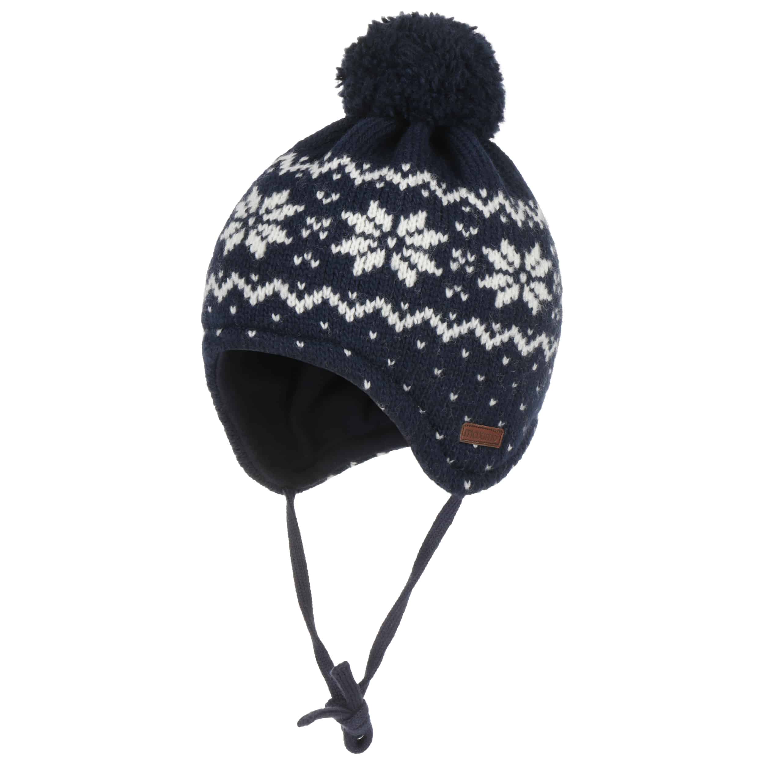 It longs for the first snowflakes as much as the child who wears it: A warm, woolly knit fabric with a snowflake pattern on it makes up this beanie from maximo, which nestles against the head with its cotton lining. On top of this, a fluffy pompom cheerfully shares the joy of winter hustle and bustle. If the ties on the side are fastened under the chin, the knitted hat sits perfectly, even in a turbulent snowball fight.