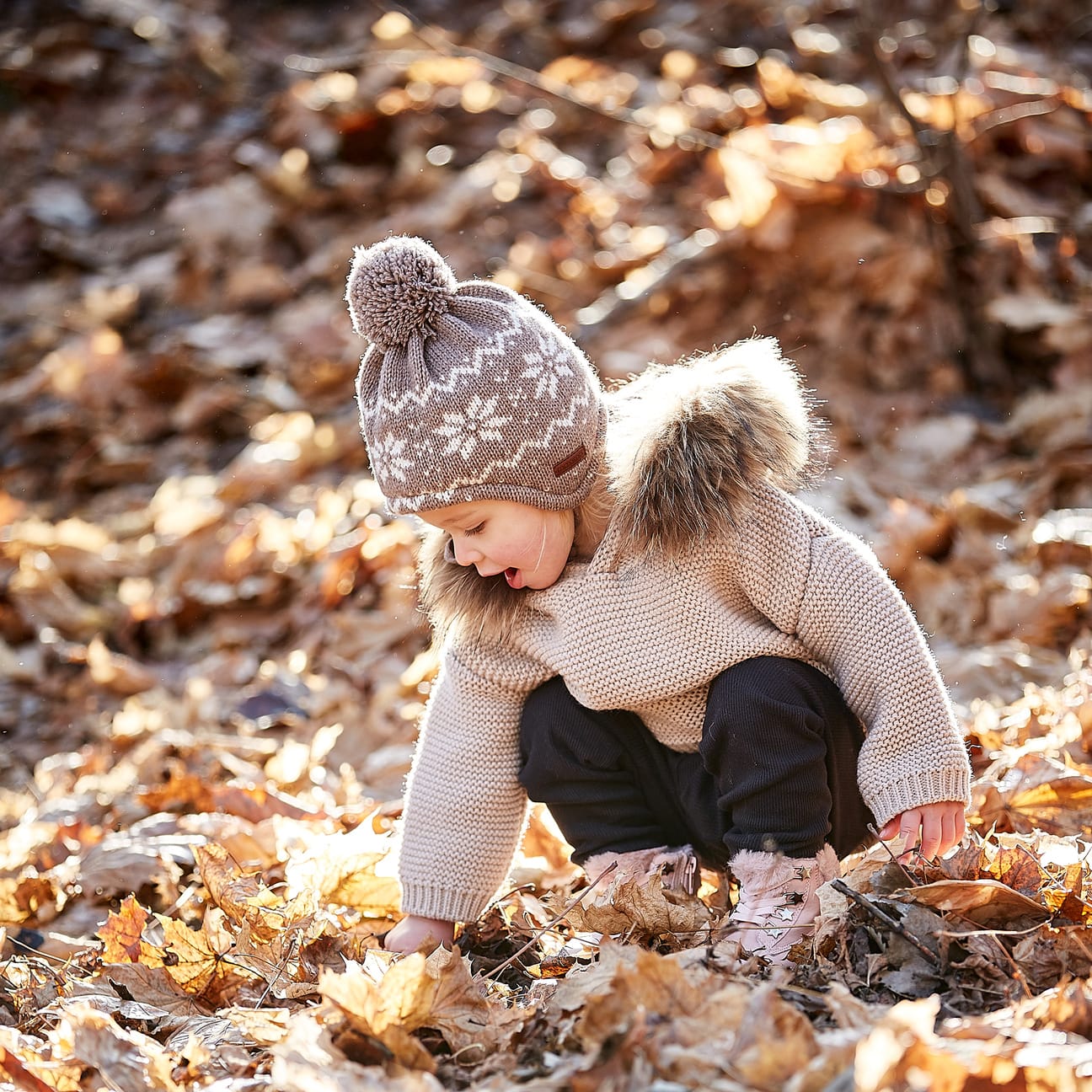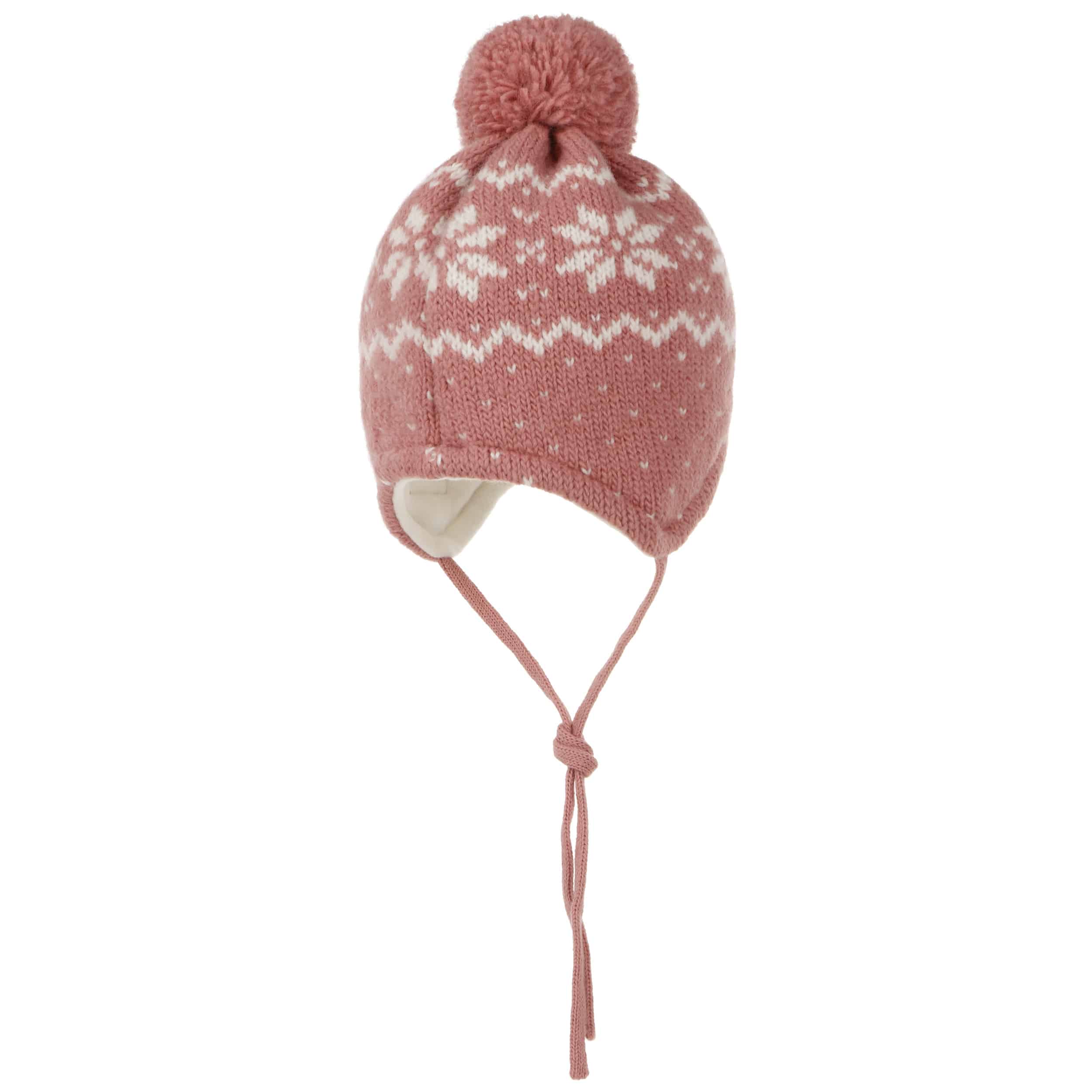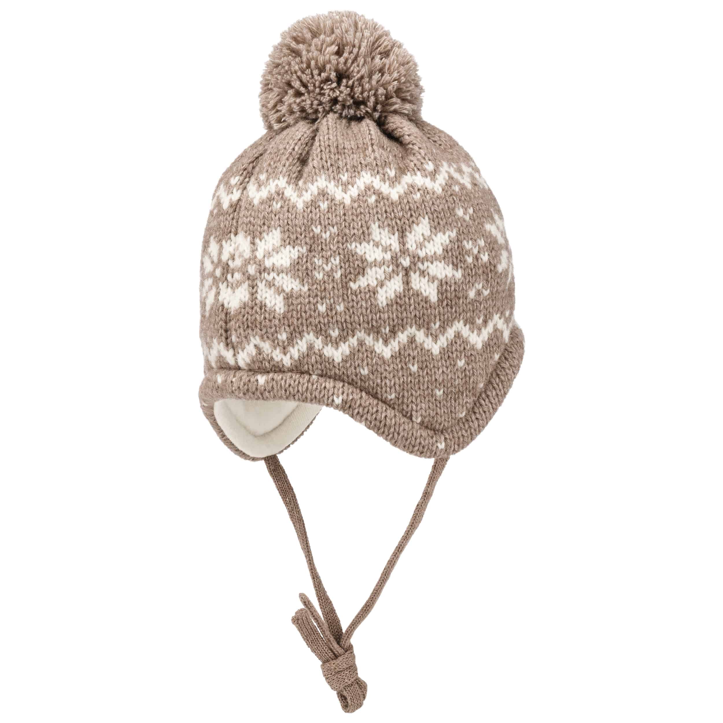It longs for the first snowflakes as much as the child who wears it: A warm, woolly knit fabric with a snowflake pattern on it makes up this beanie from maximo, which nestles against the head with its cotton lining. On top of this, a fluffy pompom cheerfully shares the joy of winter hustle and bustle. If the ties on the side are fastened under the chin, the knitted hat sits perfectly, even in a turbulent snowball fight.