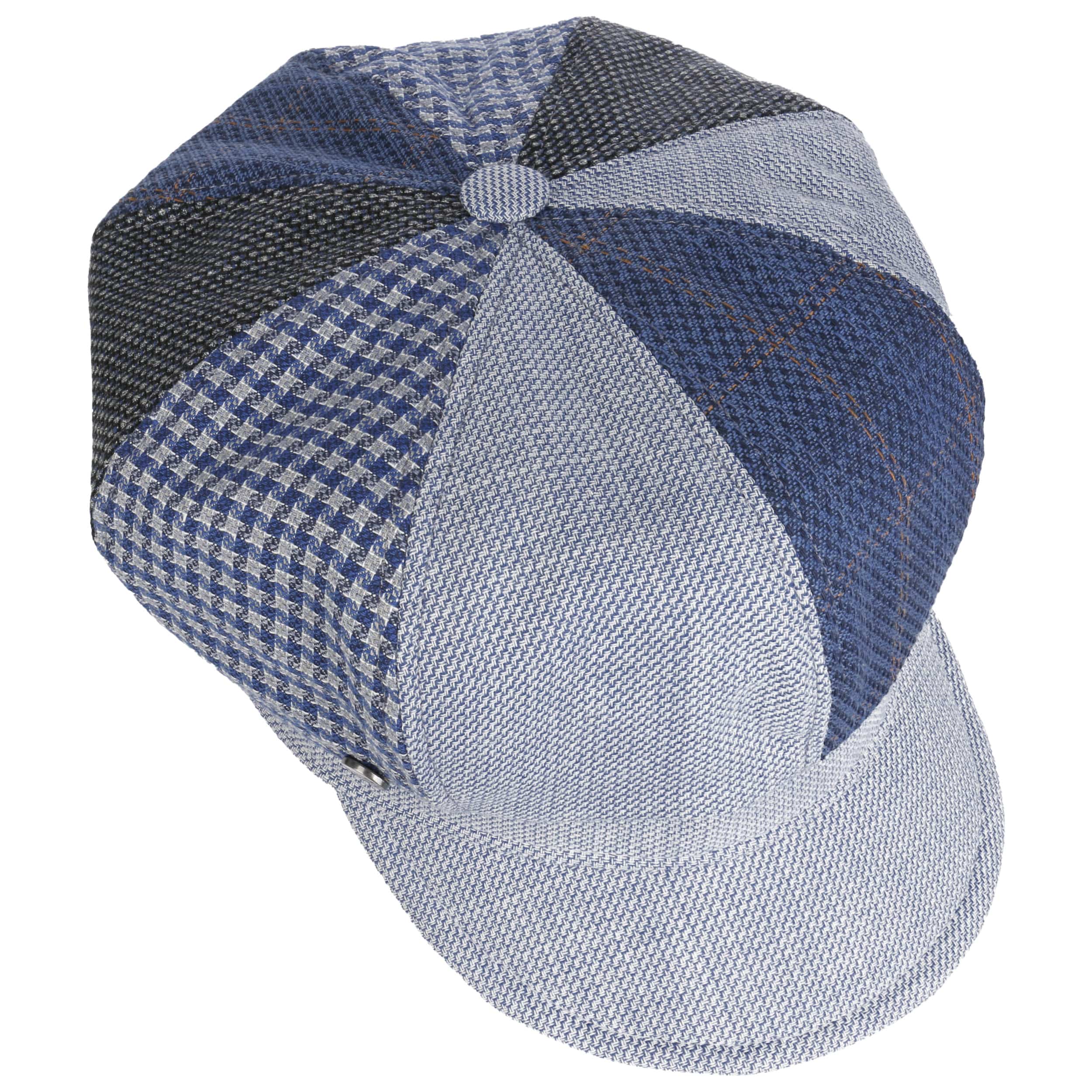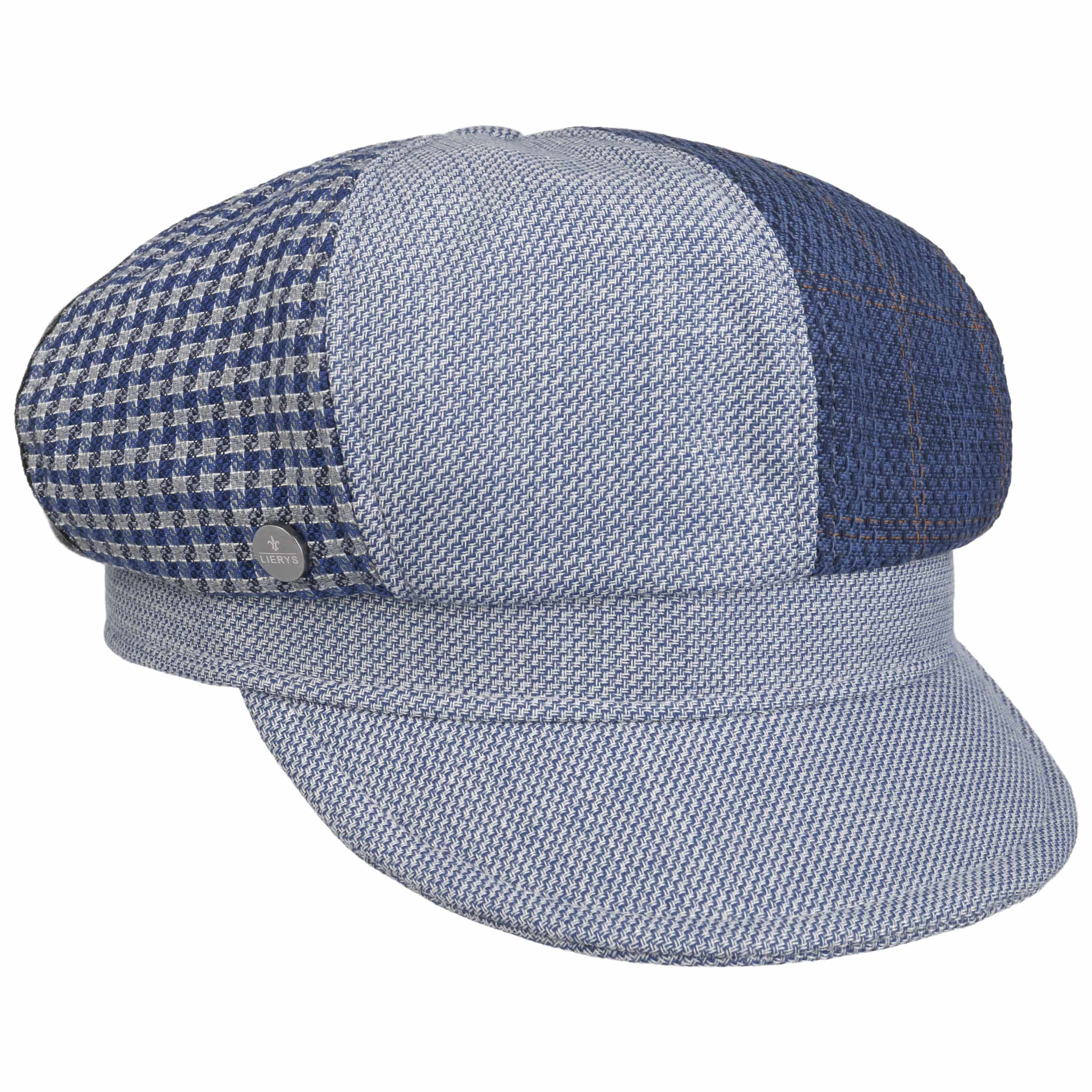 The label with the iris logo has dedicated itself to making modern, stylish and comfortable headwear along with matching accessories. Baseball caps, Trilby hats and Bogart hats have been made into timeless designs that give an outfit a classy splash of colour and bring a smart cut to your headwear. High quality knitted sets, which are available individually as beanies, peak pull on hats, Laplander hats, headbands, scarves, gloves etc., discreetly accentuate each lady’s or gentleman’s individuality. From woollen hats to flat caps, Lierys accessories can be worn in endless fashionable combinations.- Lilydale Patchwork Newsboy Cap by Lierys - navy 1