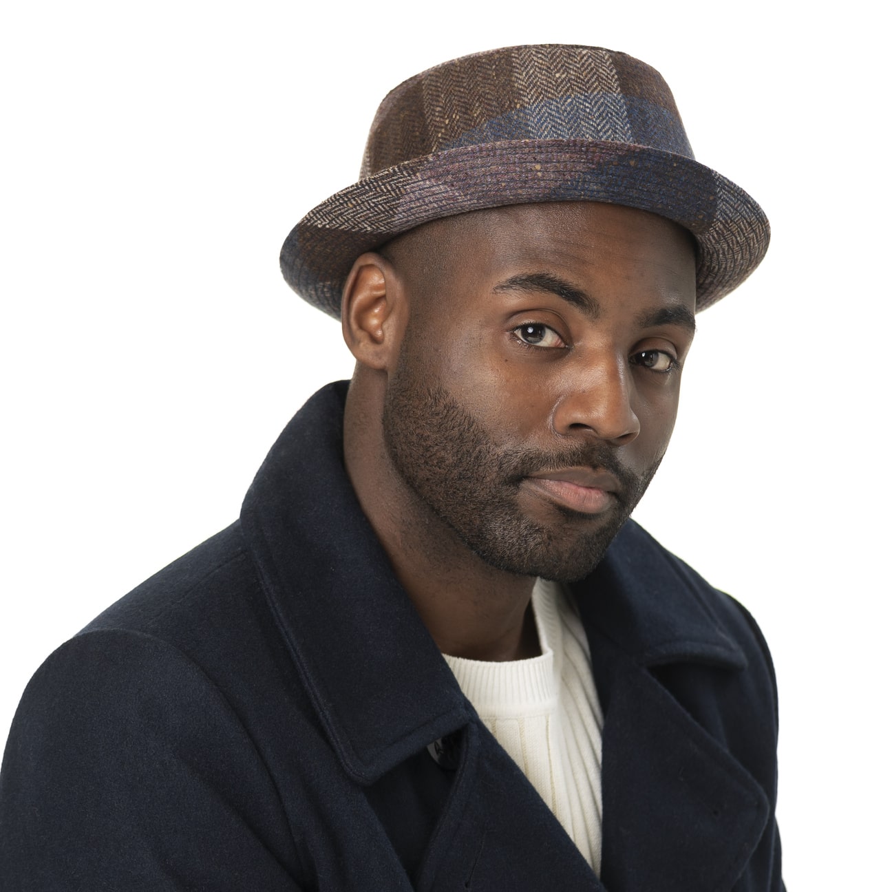 Wool is an excellent choice of material for cool weather, so the pork pie from Lierys, made in Italy, opted for warm comfort. The design stands out with its round, slightly indented crown and narrow upturned brim, which, combined with the colourful check pattern, creates a trendy and versatile finish.