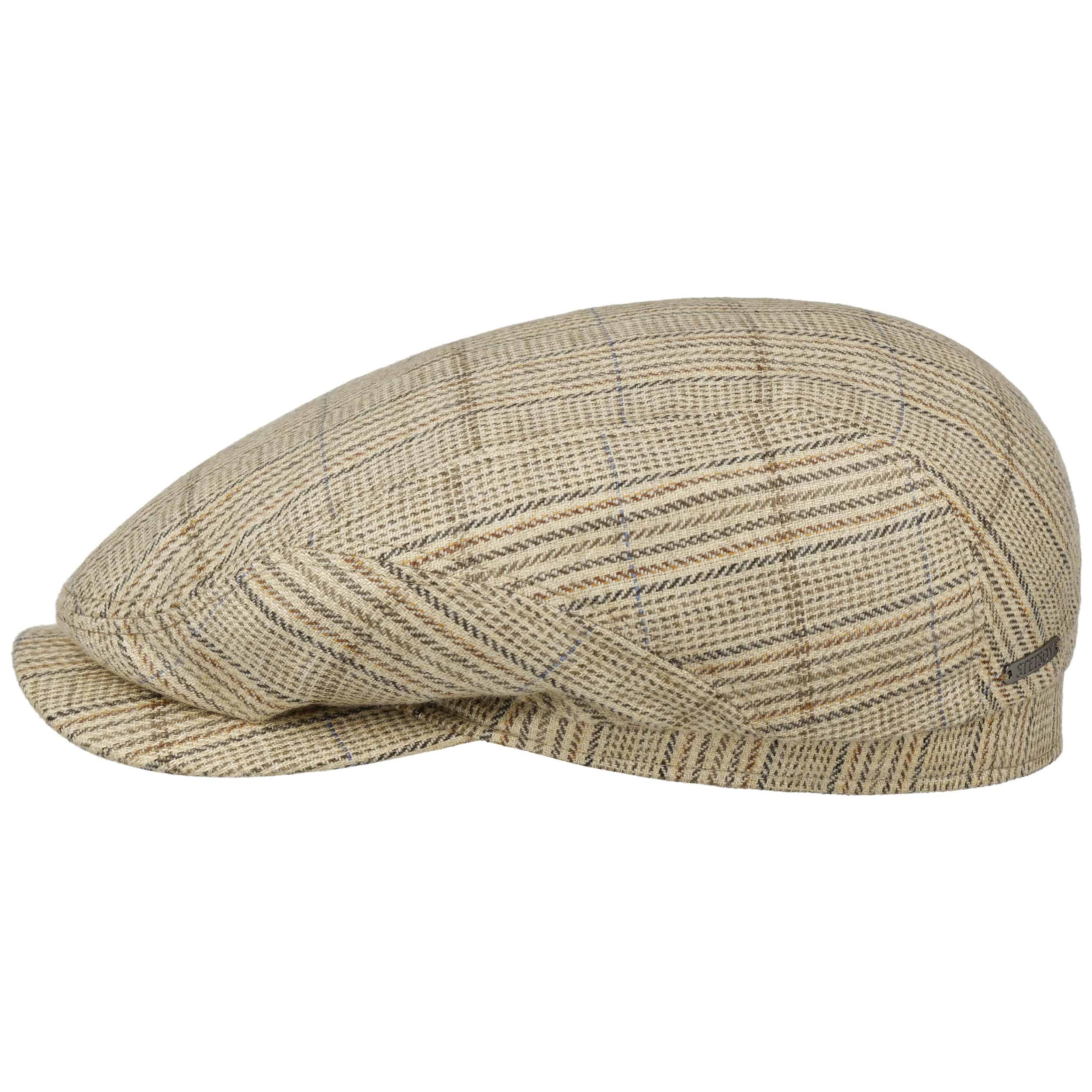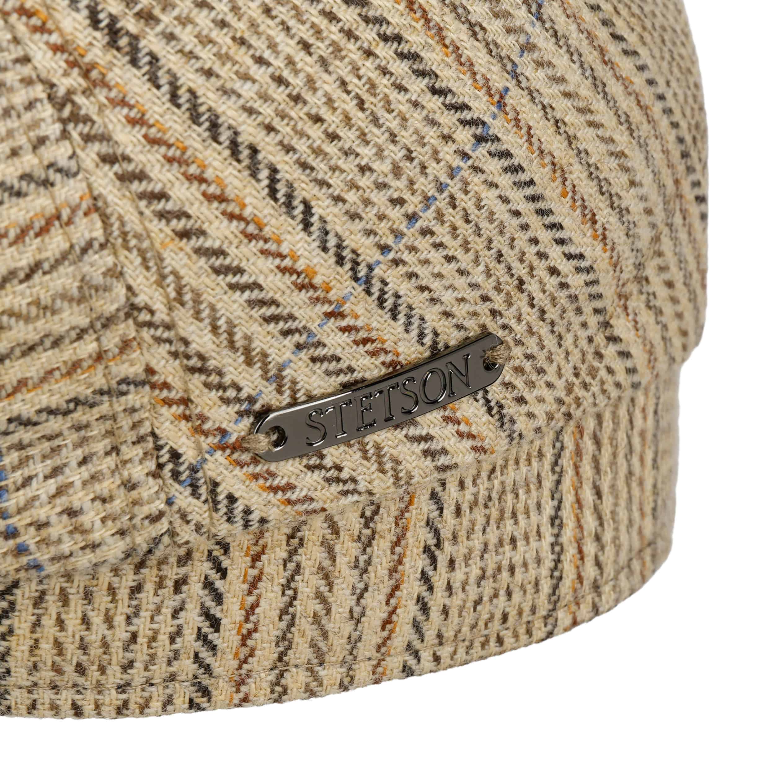 This flat cap by Stetson is handmade in Germany from a breathable linen and wool blend that feels pleasantly light yet reassuringly structured. Its subtle striped pattern underlines the classic driver shape, while the short visor with firm insert made of PET provides reliable shade and keeps its neat contour. A pure cotton lining enhances wearing comfort and makes it an appealing choice for the warmer months.