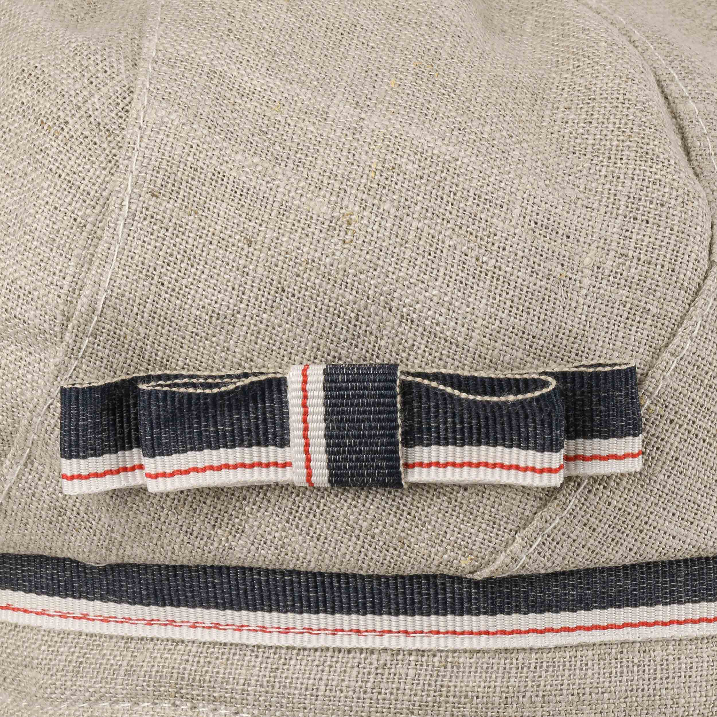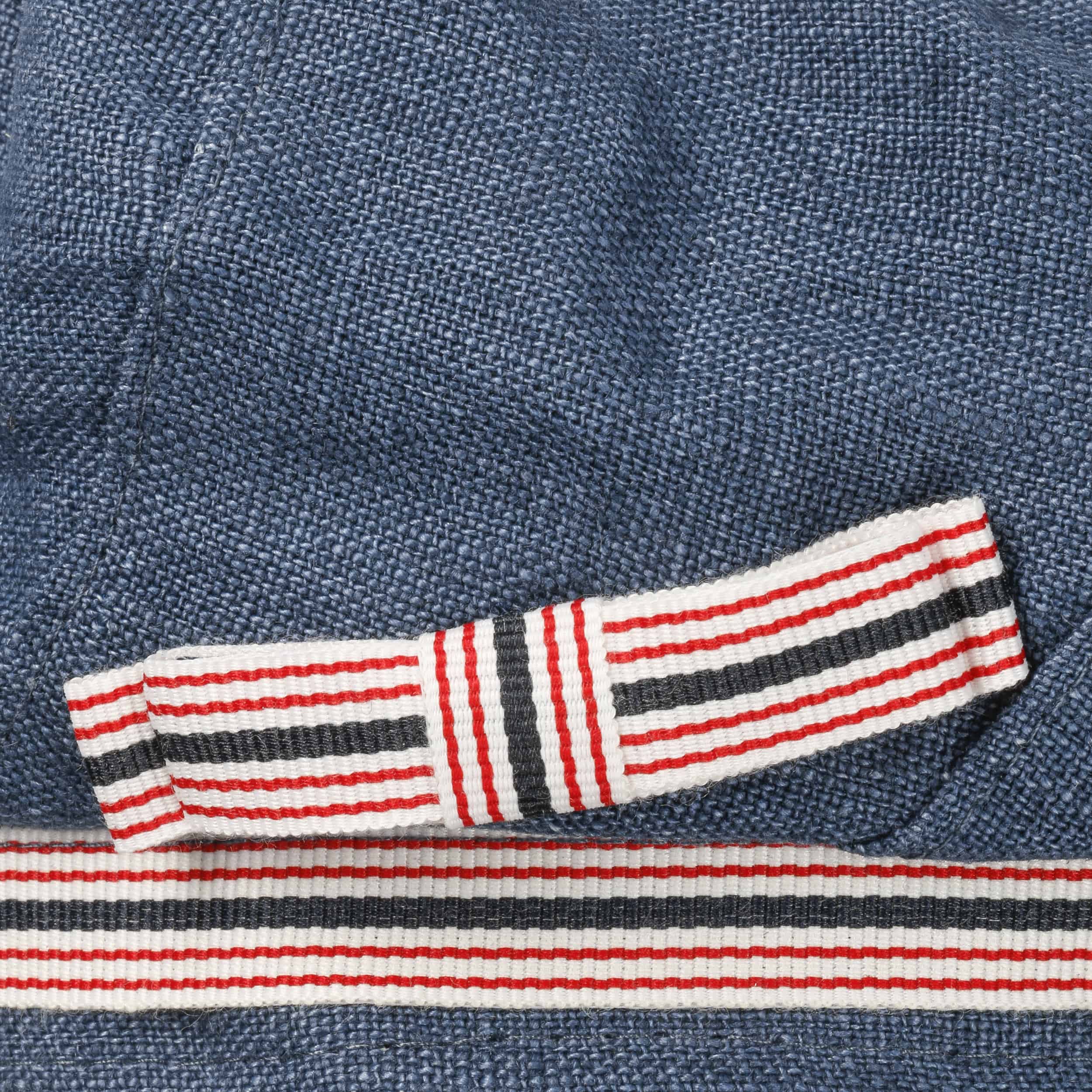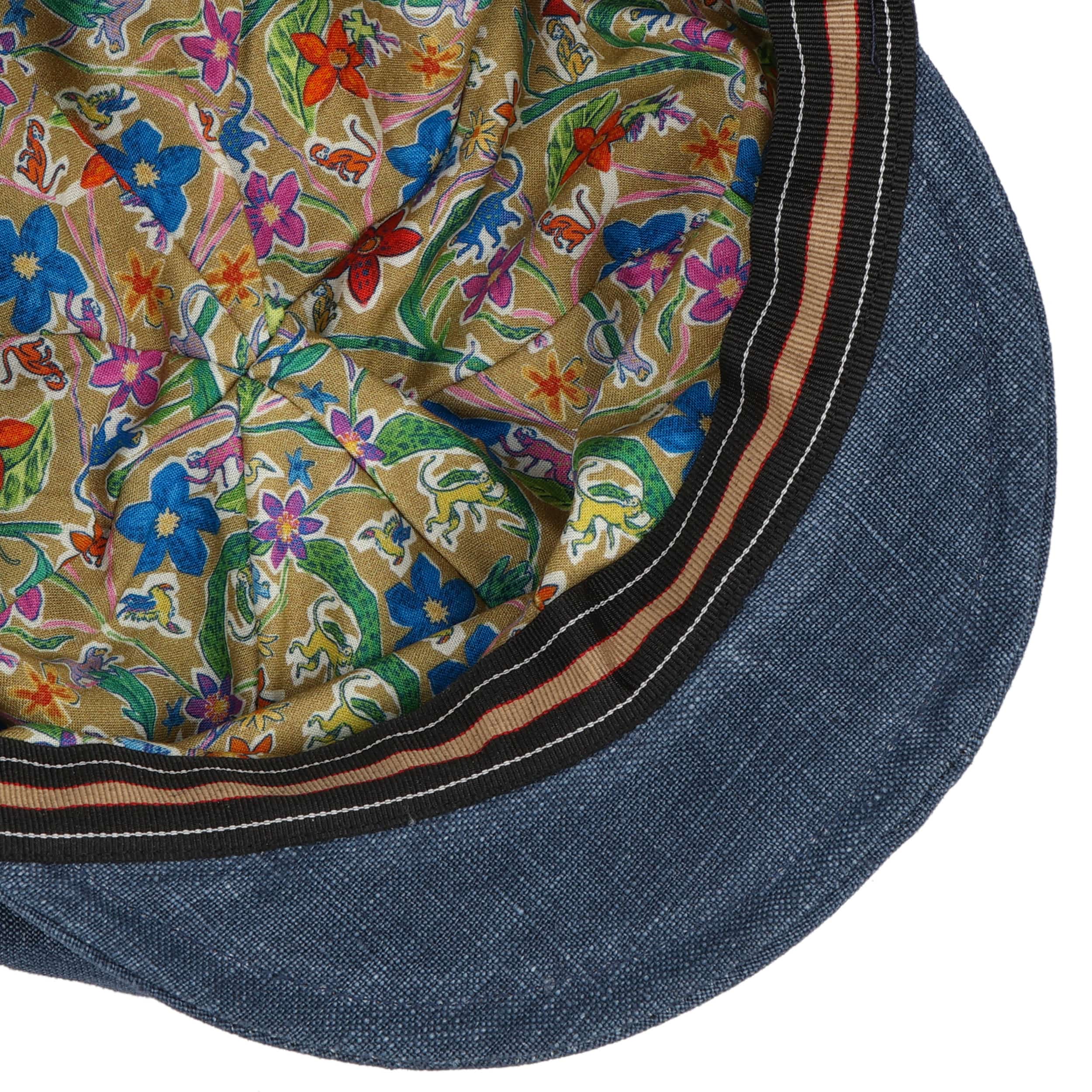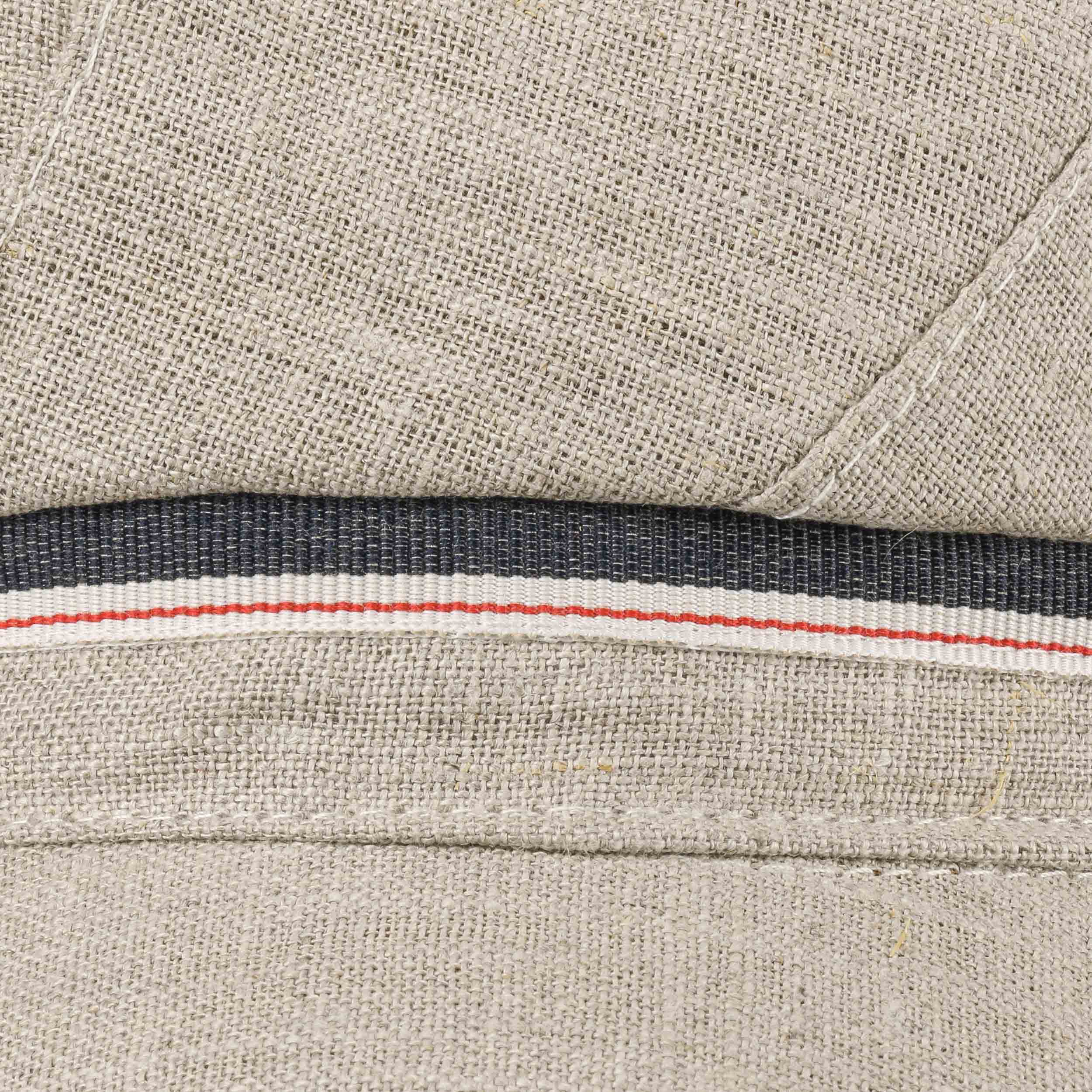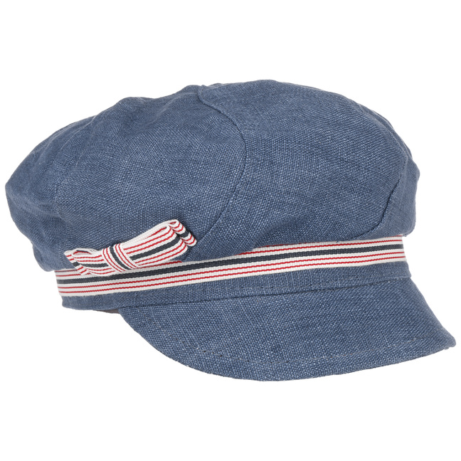 This high-quality baker boy hat by bedacht has a fascinatingly sophisticated combination of different design elements. The classic look of this voluminous peaked cap is enhanced by the fashionable denim look of the linen fabric. A narrow decorative band with multi-coloured stripes pattern is a real eye-catcher.