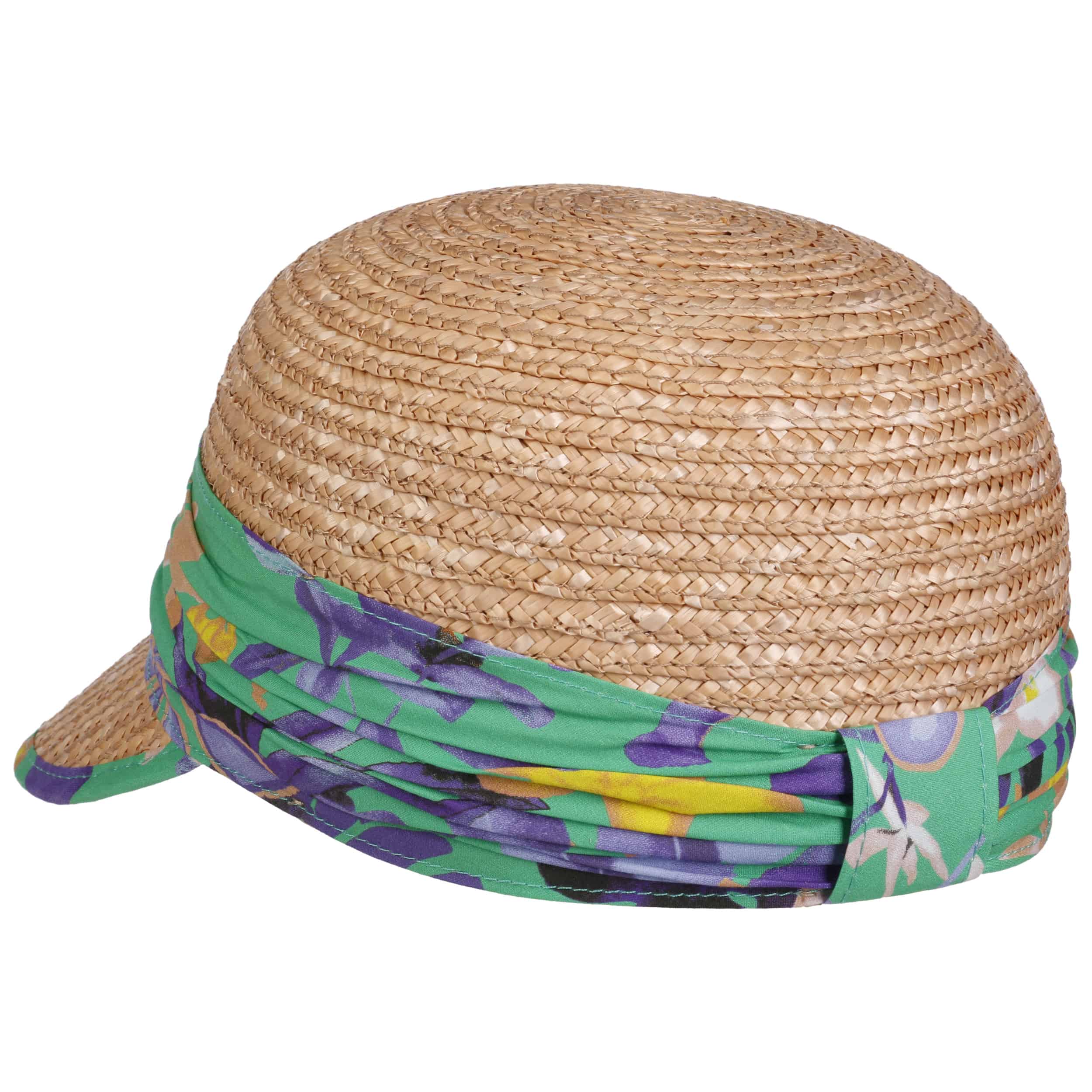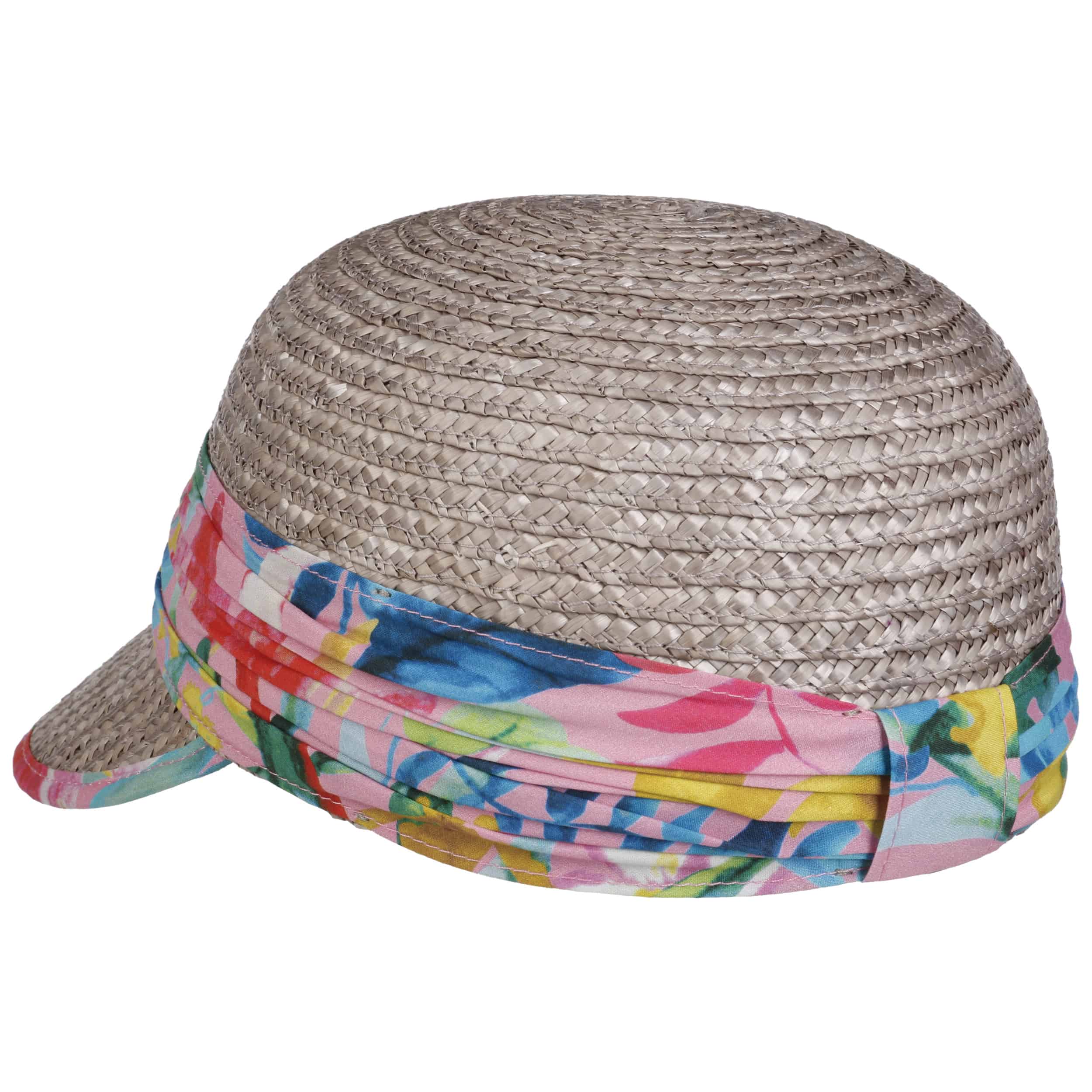 As soon as you put on the light peaked cap, you can feel a breath of sea air. If you close your eyes, with a little imagination you can feel the warm rays of the sun on your skin. And can´t you hear the sound of the waves from afar? How good that the lightweight cap made of 100% straw can be pulled low over the face if necessary. Its eye-catching braided pattern and colourful flowered band make this baseball cap a favourite.