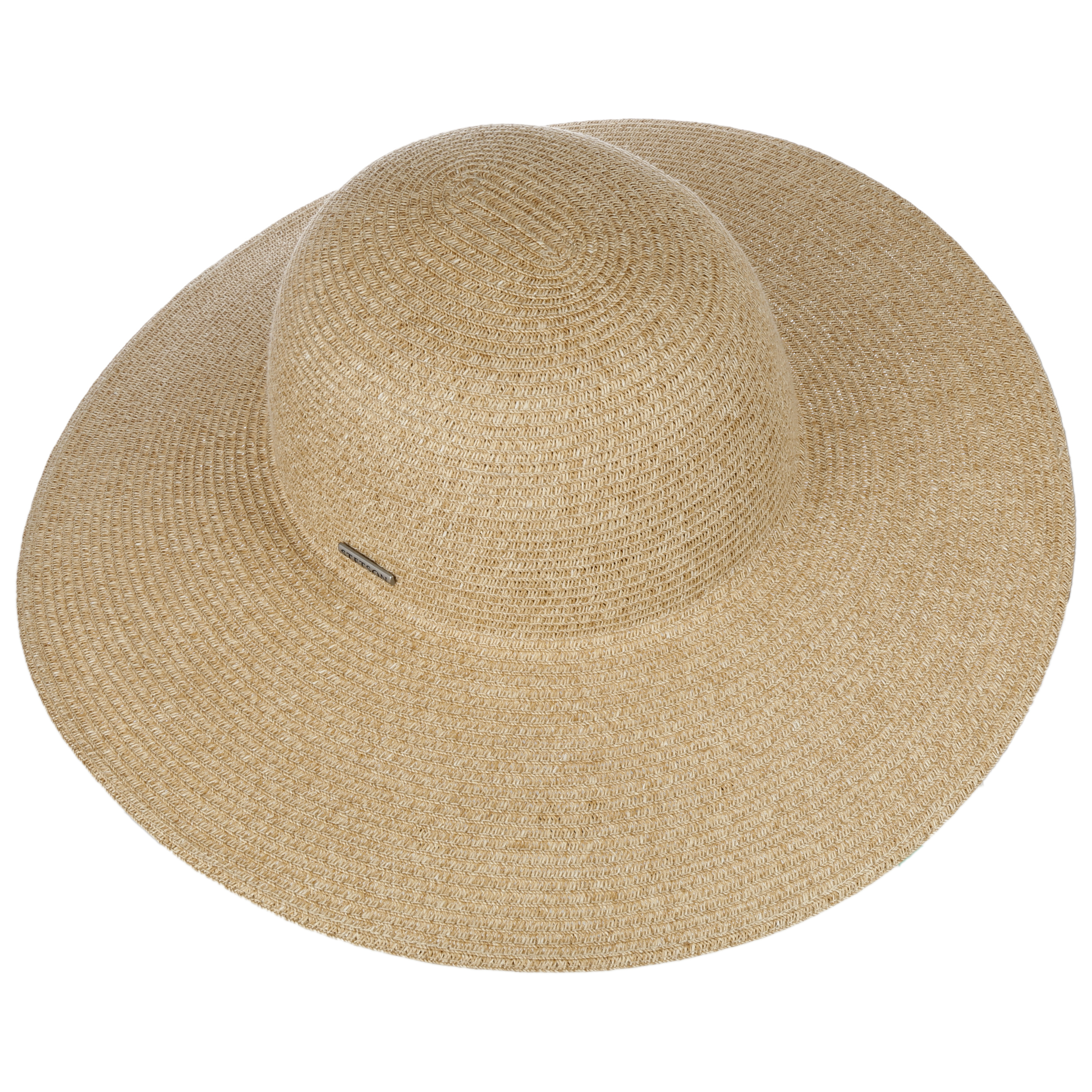 This floppy hat from Stetson is made of 100% Toyo straw. The soft viscose material feels pleasantly lightweight atop the head. The heathered colouring gives the hat a natural charisma and ensures it looks just as good with a casual beach outfit as it does with a summer dress. With its wide brim, the ladies hat provides reliable sun protection when travelling and when in the garden at home.