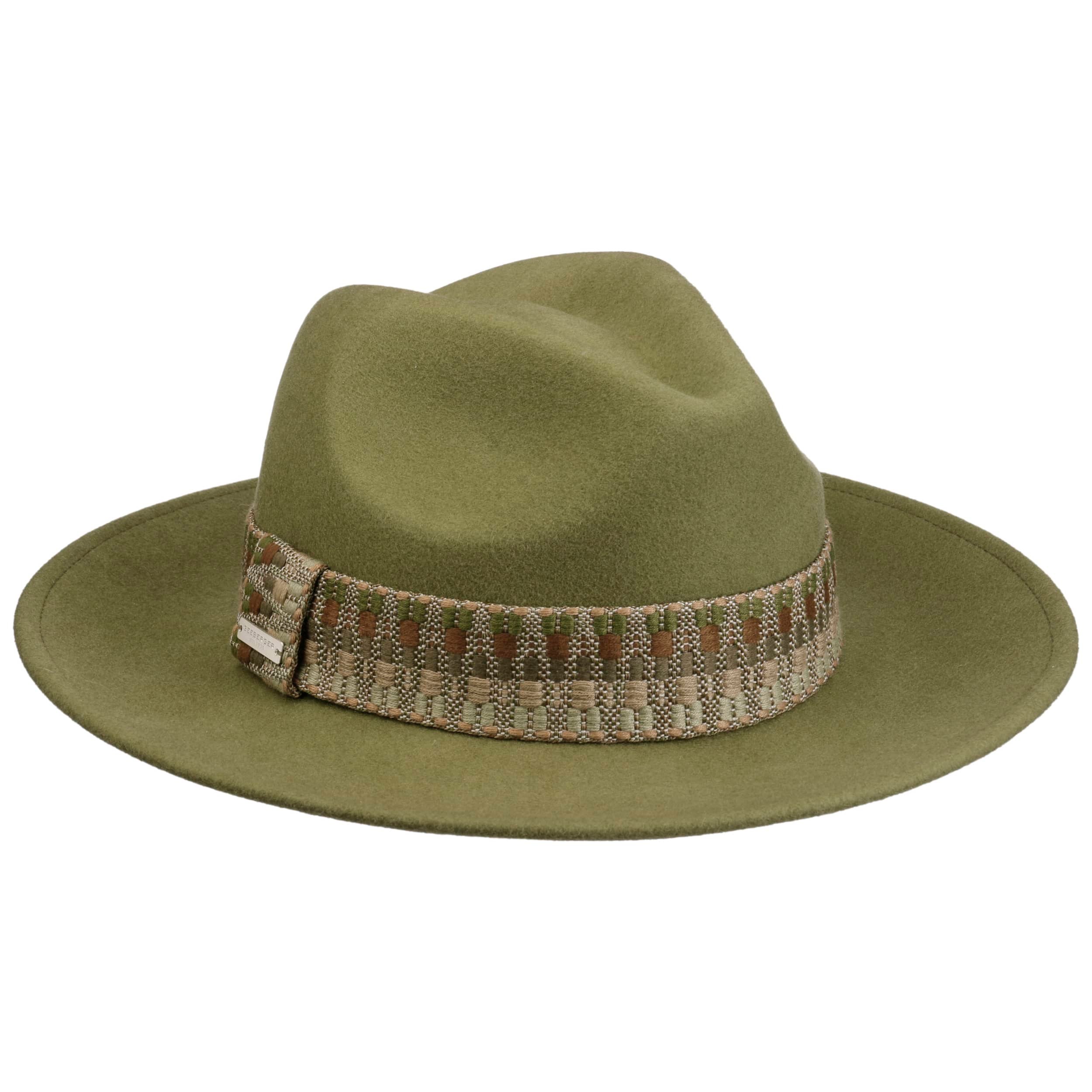 The wool felt fedora from Seeberger will enchant you with its feminine charm. Perfect for autumn and winter days, the high-quality wool felt keeps you nice and warm at all times. A colour-coordinated fabric yarn band adds a note of sophistication and gives the hat an individual touch. Its classic shape with a wide brim makes it versatile and suitable for a variety of occasions – from a stroll through town to a cosy walk.