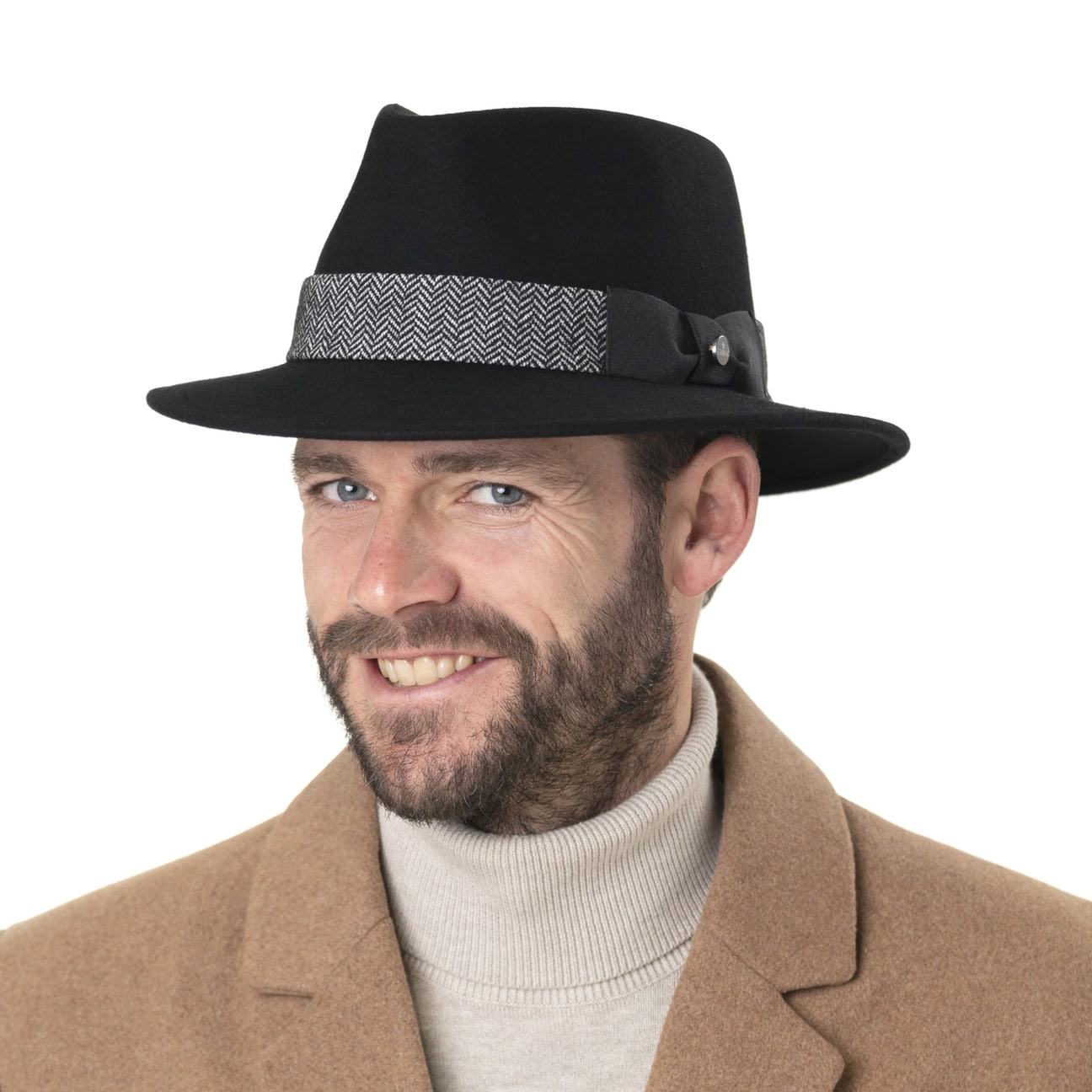 This charming traveller hat from Lierys is versatile in combination with a variety of outfits thanks to its single colour finish. The wide trim band, which is decorated with a stylish herringbone pattern, is the design’s most eye-catching feature. A bow on the side rounds off the look of this handmade felt hat by adding a touch of classic elegance. The integrated stretch lining band ensures a comfortable fit.