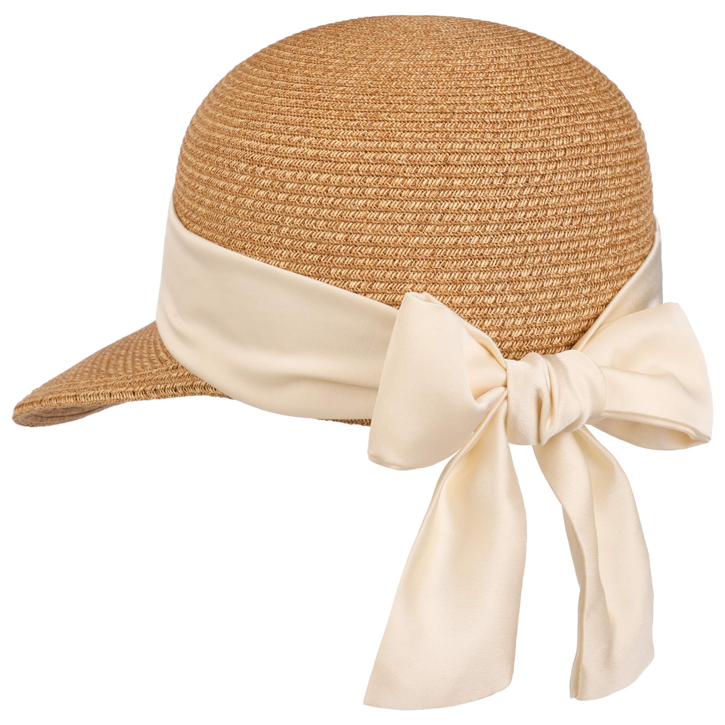 The feminine visor cap has a classic summer hat-style rounded shape and combines the look of a cap with a charmingly wide peak. This model from Lierys features carefully crafted paper straws in an extravagant, single-colour design ? perfect for laid-back days at the beach and stylish outings. This fine, natural material is comfortable to wear, even in hot weather. The exclusive character is emphasised by a decorative ribbon. This fashionable accessory is made in Italy and impressive due to its sophisticated look.
