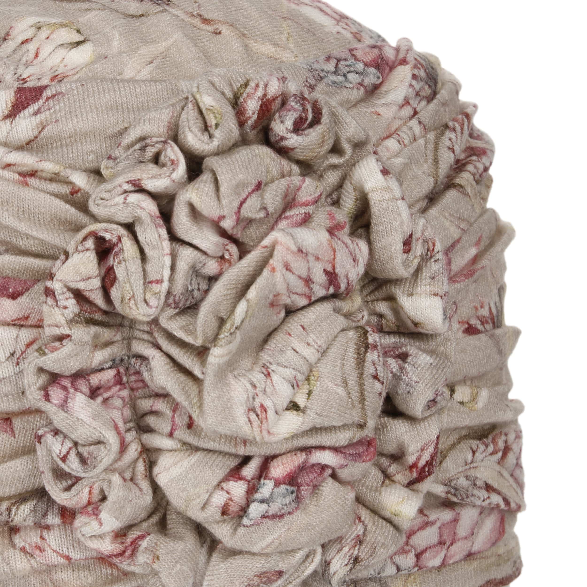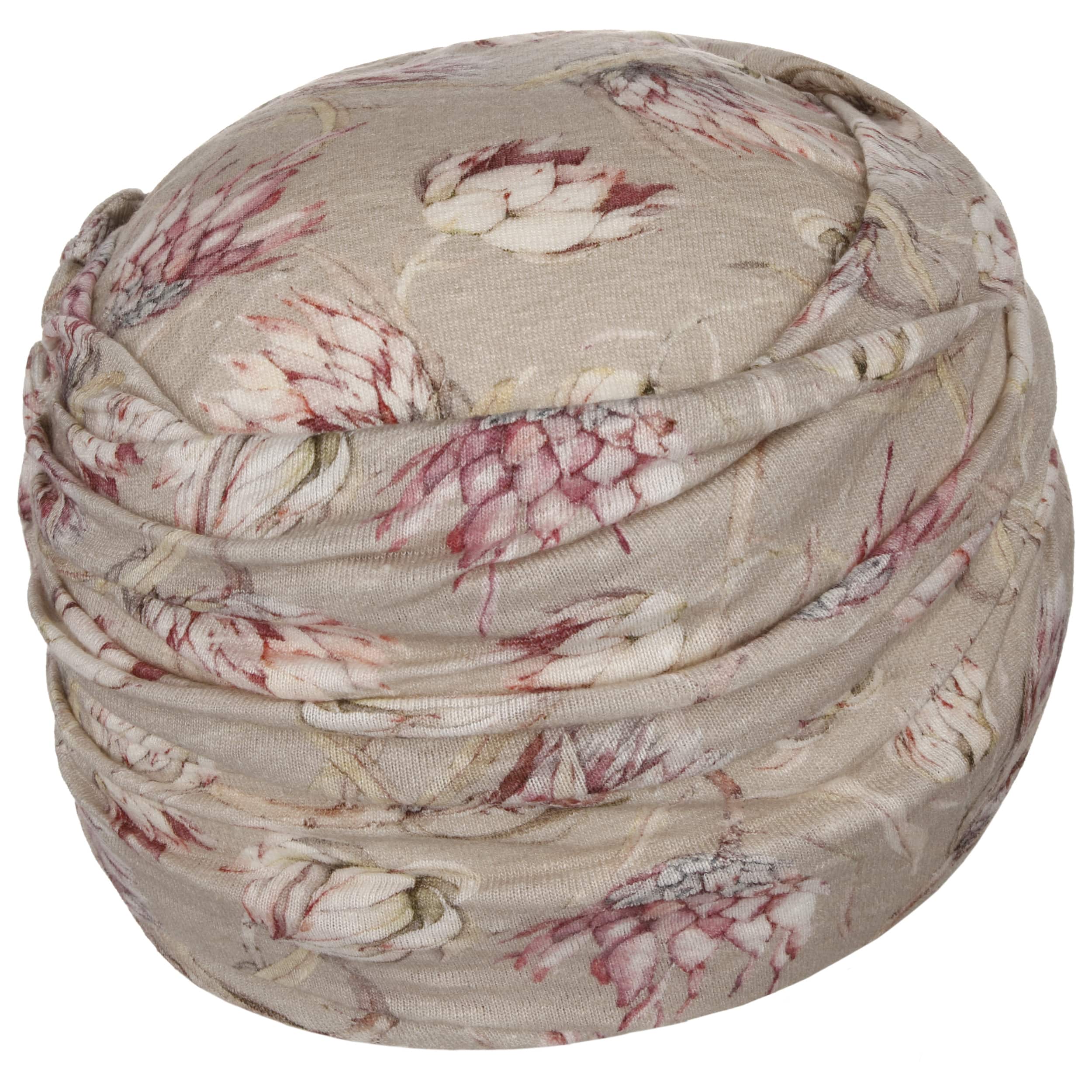 A print of lotus blossoms and a large floral appliqué adorn the women’s turban from Christine Headwear. Stretchy linen gives it climate-regulating properties and makes it the ideal headwear for summer. The viscose lining, which adapts flexibly to the shape of the head thanks to the addition of elastane, also contributes to the high level of comfort.