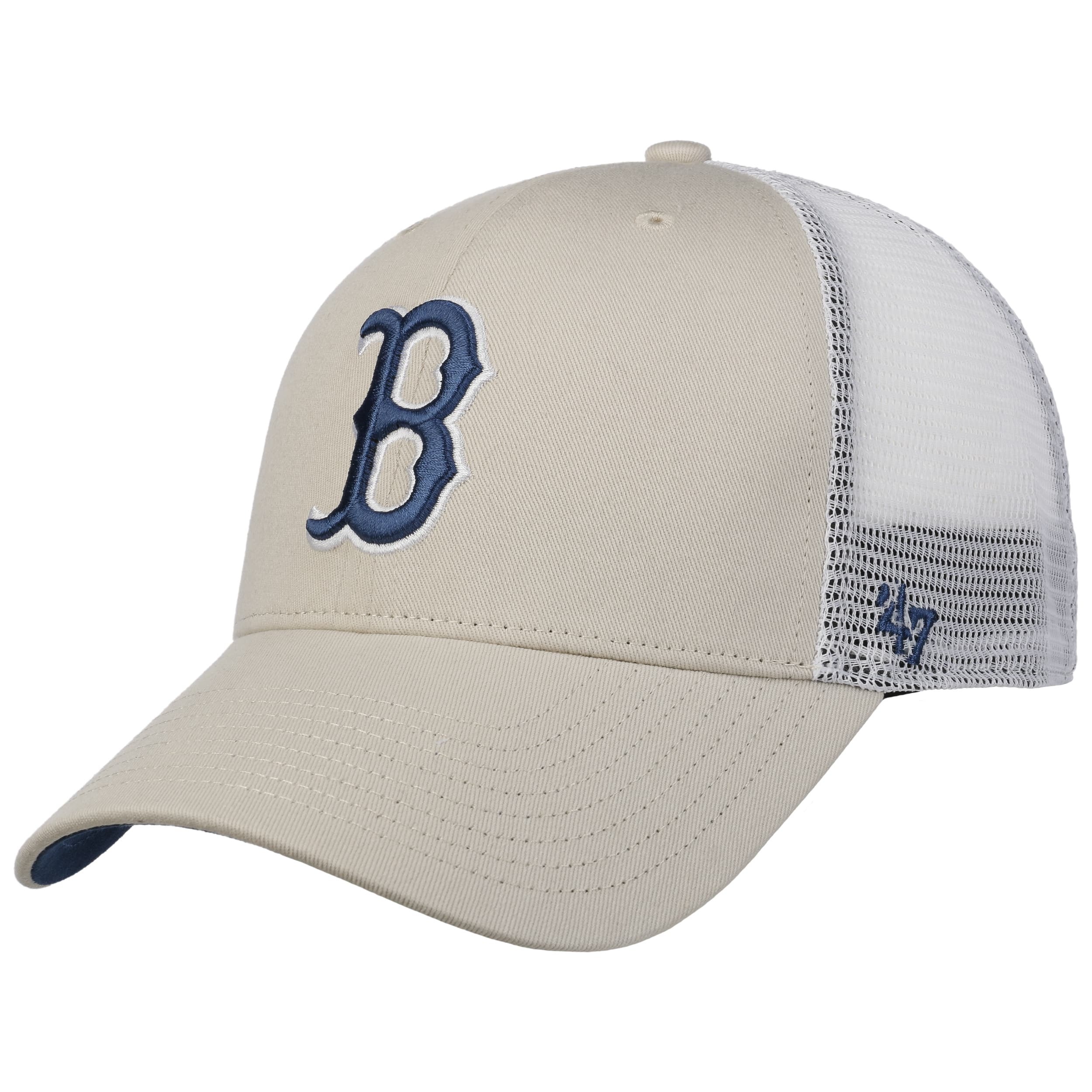 47 Brand offers a huge selection of unique products. From snapback caps to strapbacks and trendy flat brim caps, from conventional six panel baseball caps to highly fashionable five panel caps. Founded in 1947 by twin brothers Arthur and Henry D’Angelo, the company has constantly developed innovative ideas, while always retaining its old value. So if you are looking for a cool baseball cap that combines style with high quality, you should look no further than 47 Brand for a new cap.- MLB Red Sox Ballpark Mesh Cap by 47 Brand - cream white 1