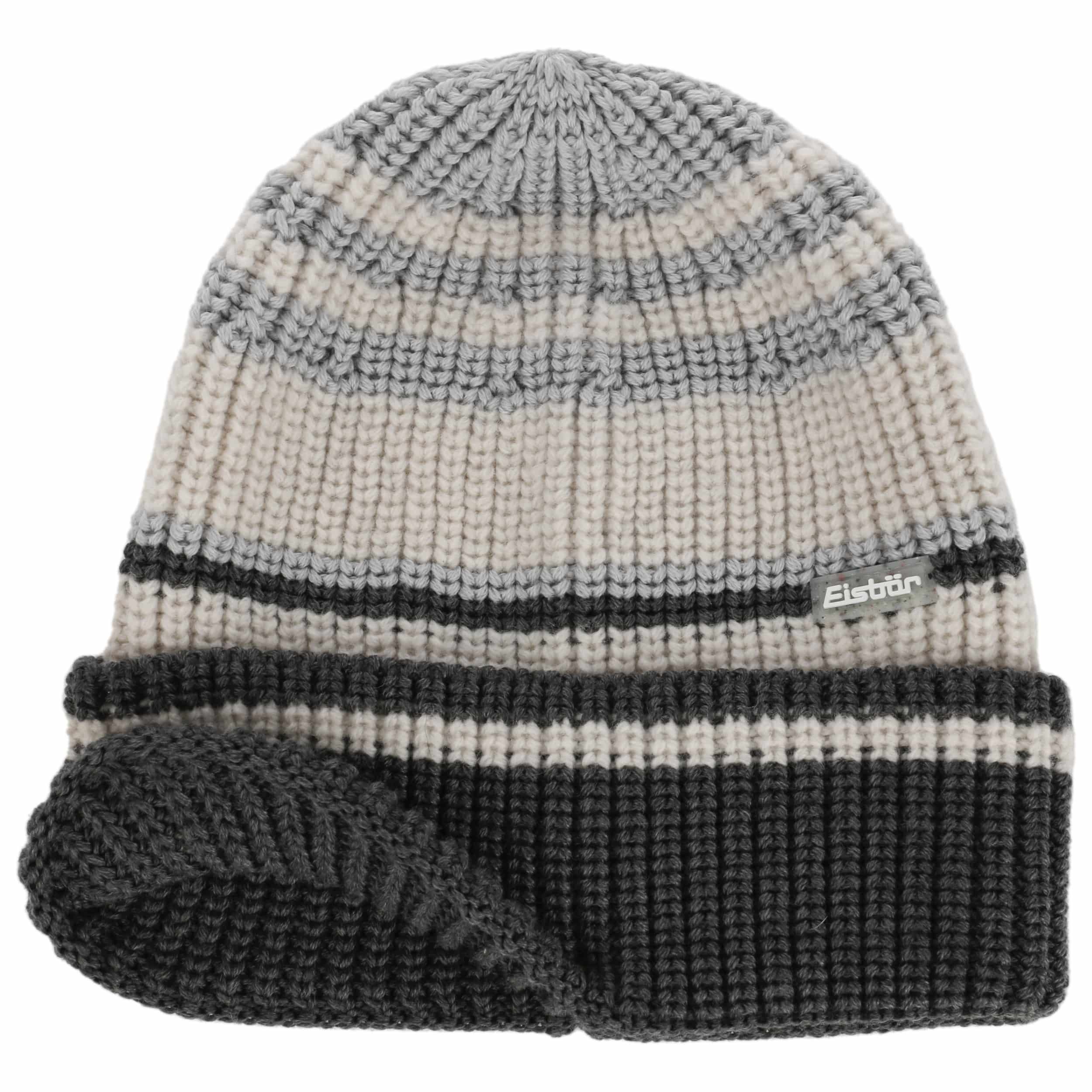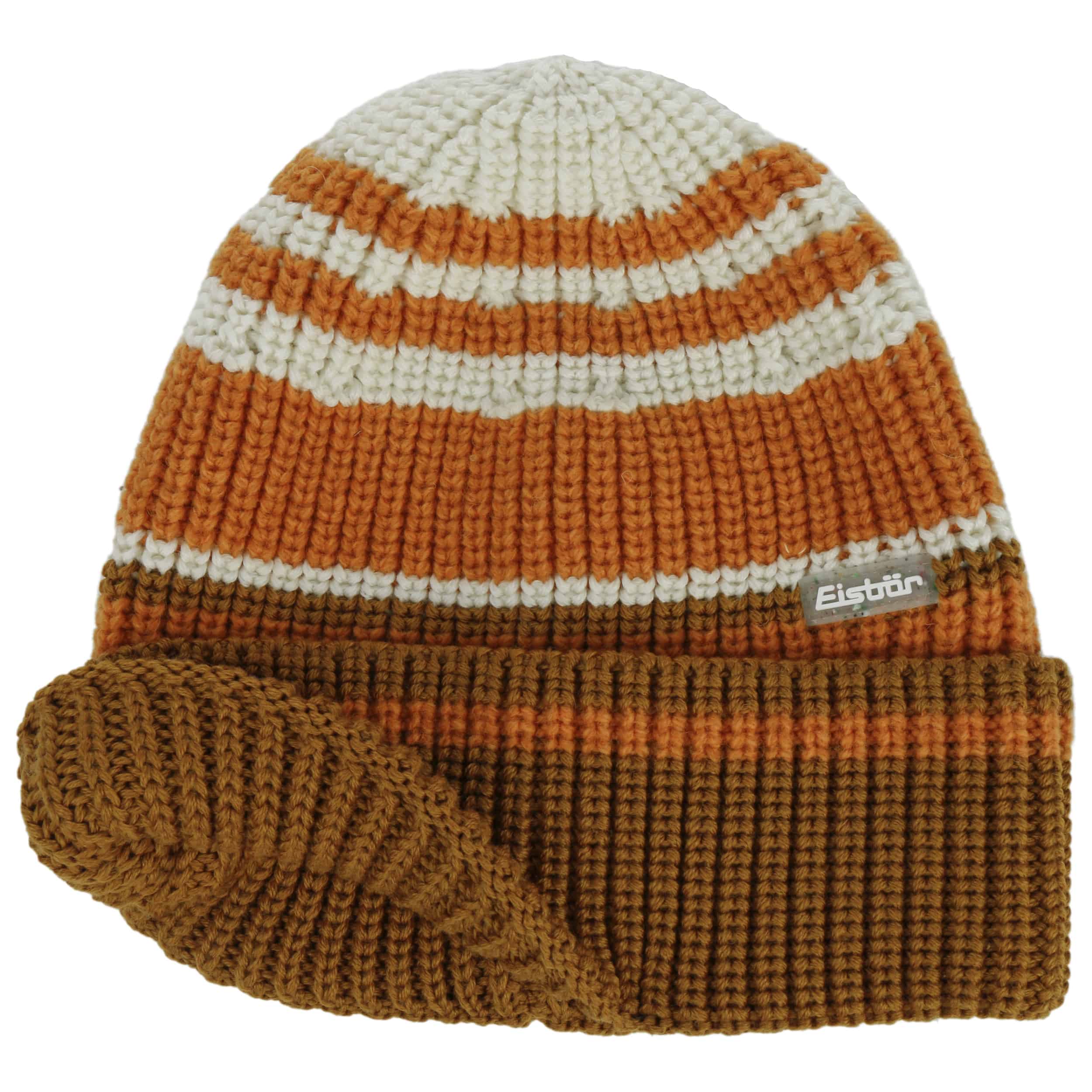 The short beanie by Eisbär is knitted from a cuddly soft yarn with a high wool content. A rustic ribbed pattern gives this striped woollen cap a sporty chic. The wide turn-up rounds off the urban retro design. This winter cap is versatile and can be combined with a ski jacket or a chic winter coat. It can also be worn well under a jacket or coat hood.