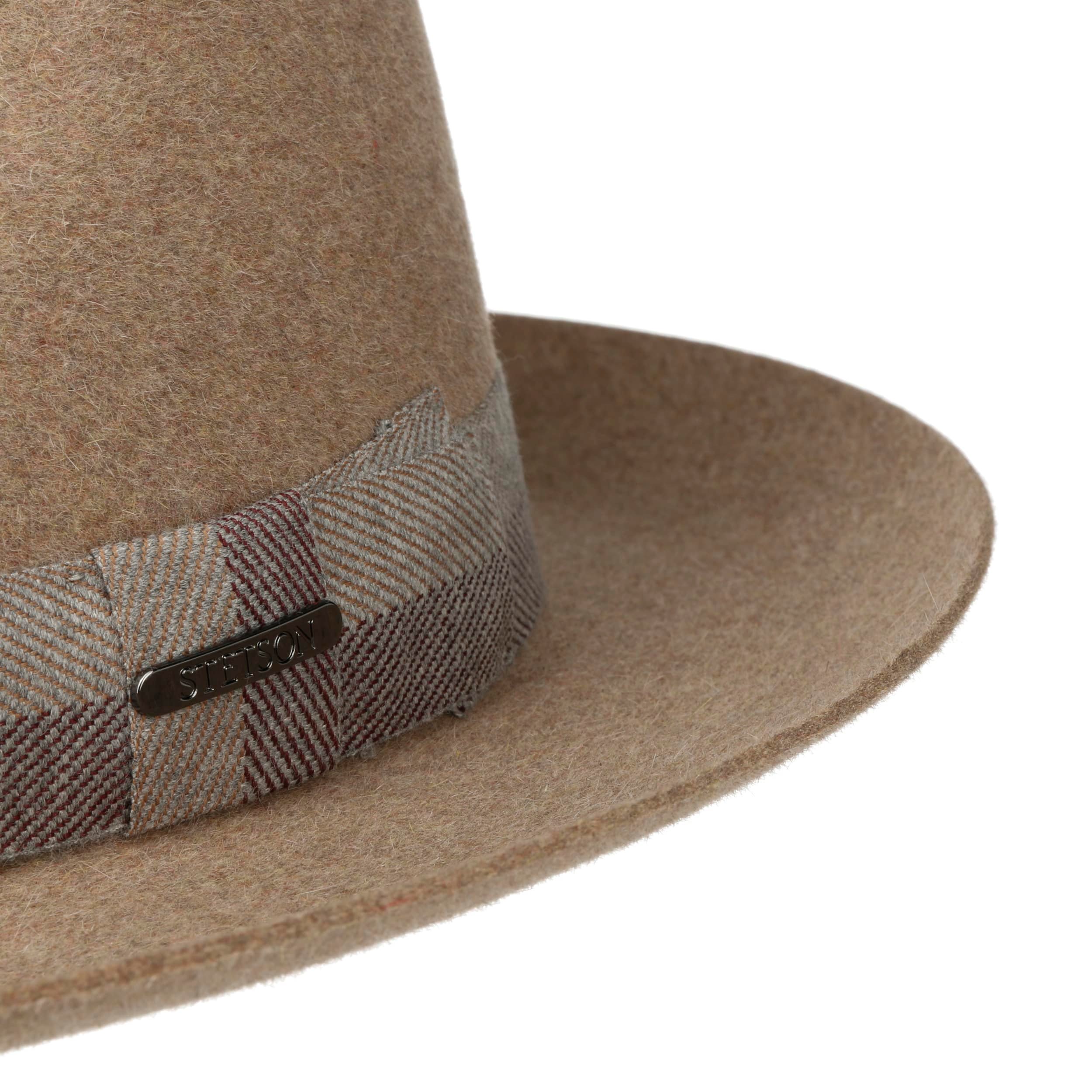 Since 1865, the name of John B. Stetson has been a synonym for best quality cowboy and Western hats. With the increasingly popular VitaFelt and VitaStraw collections, the U.S. brand has become pioneer of lightweight, water repellent and packable headwear. In the meantime, Stetson manufactures a wide range of first-class styles: army and baseball caps, flat hats, docker caps, beanies, trilbies and cowboy hats in many different designs.- Manderson Fedora Fur Felt Hat by Stetson - brown-mottled 1