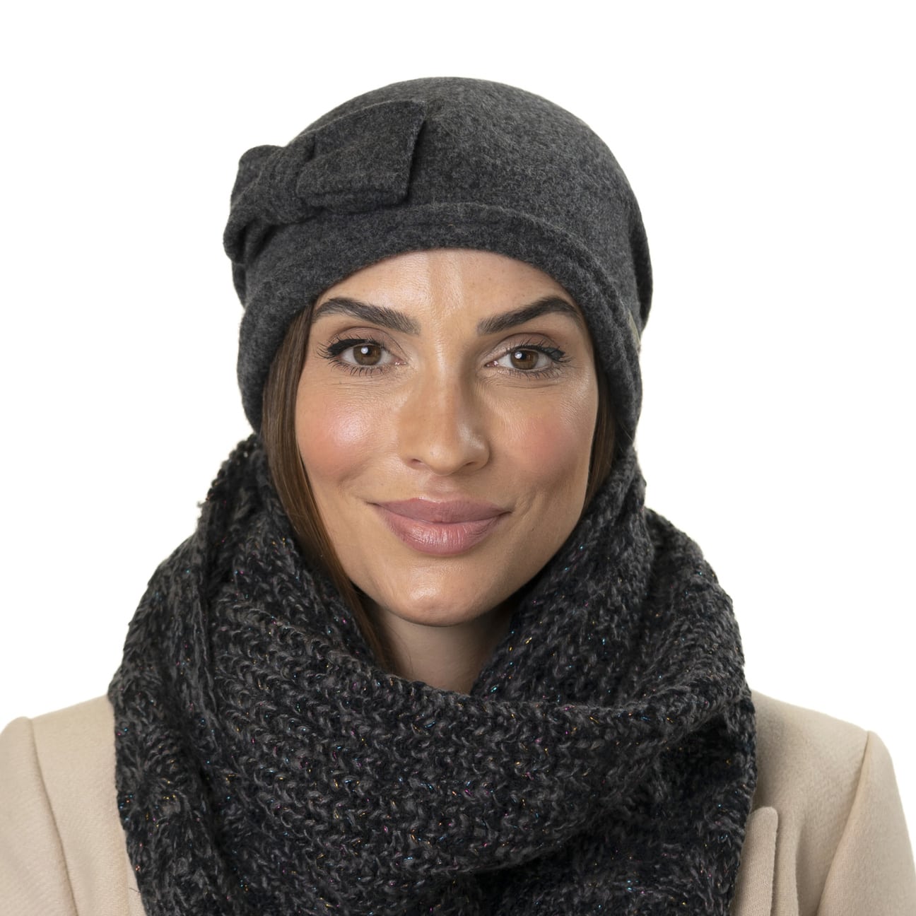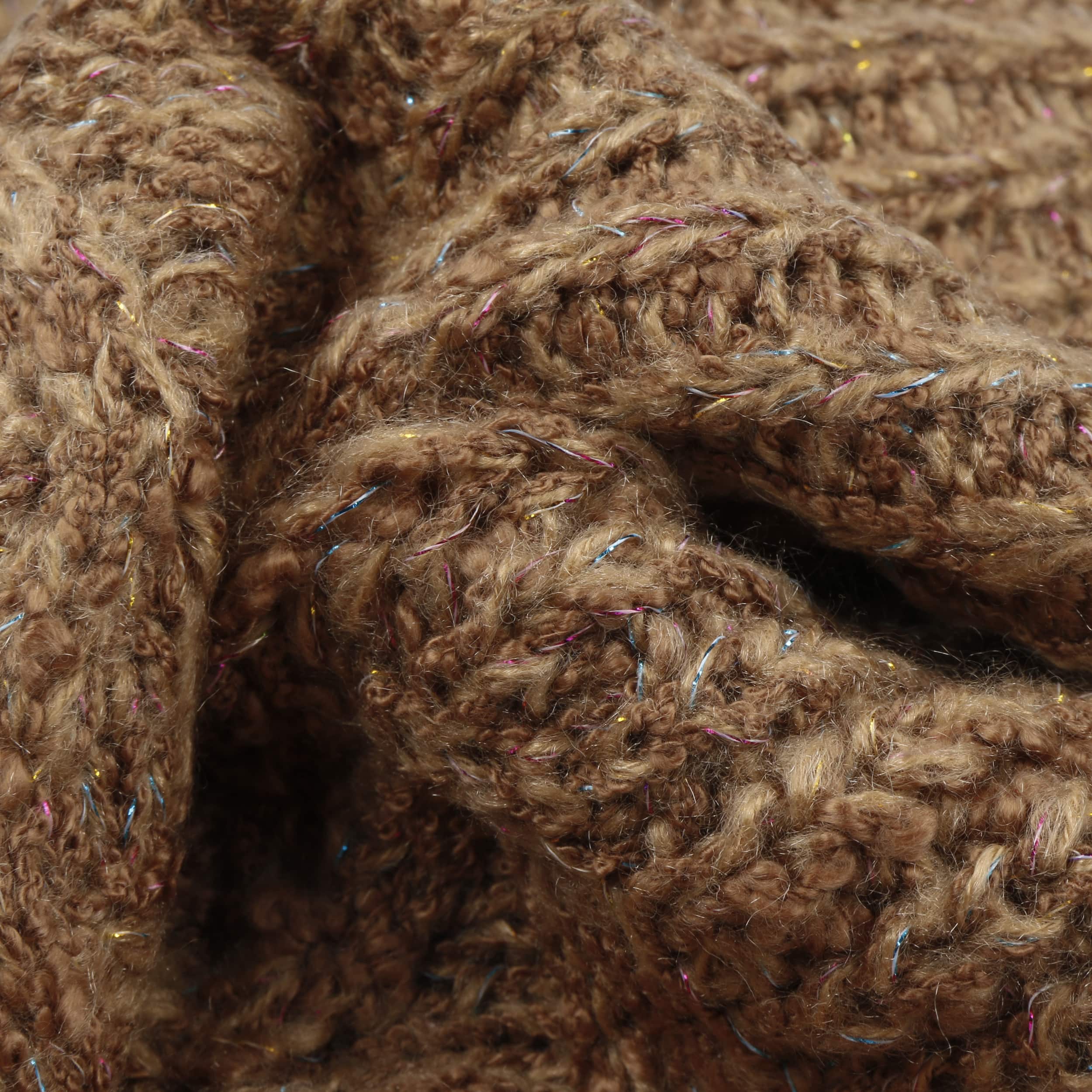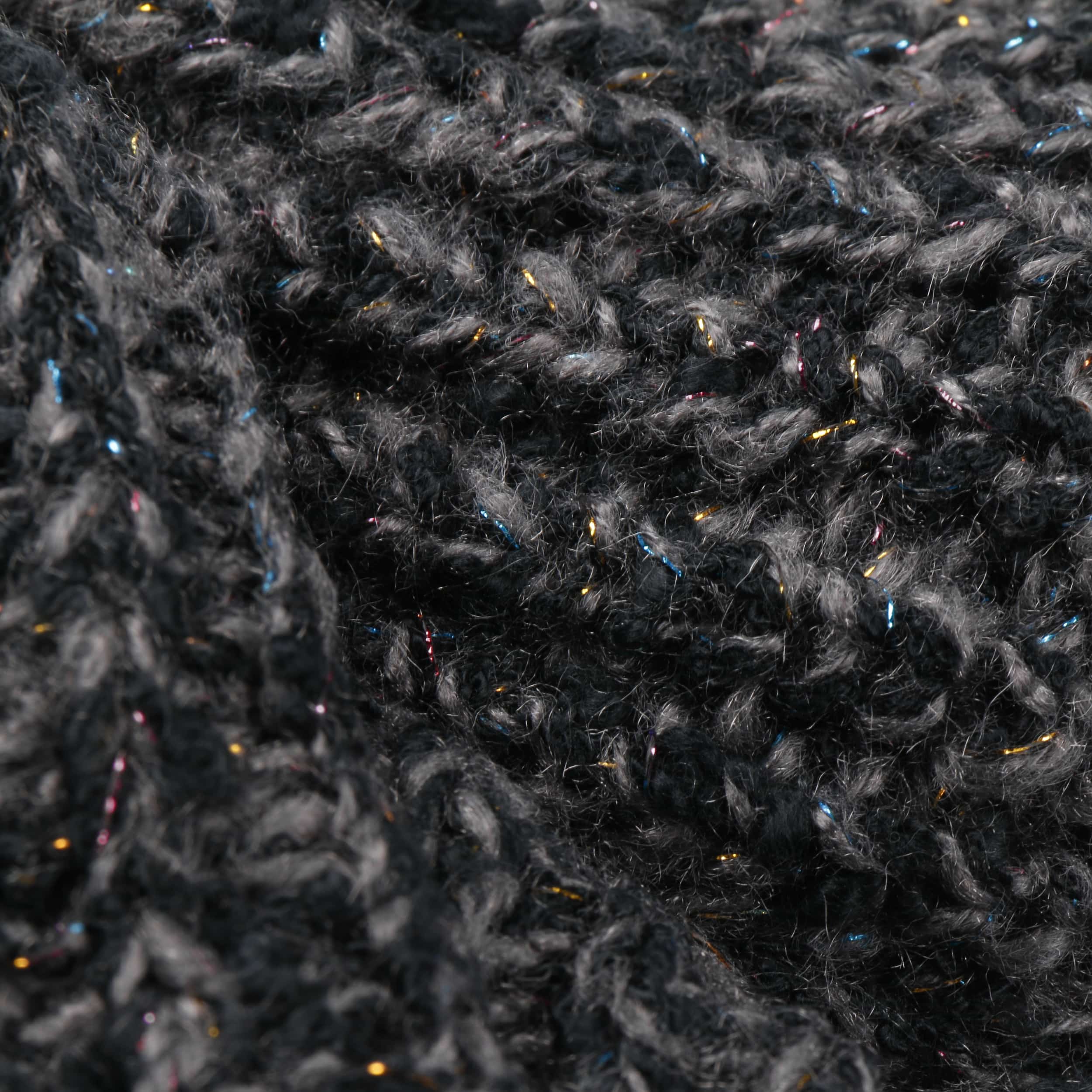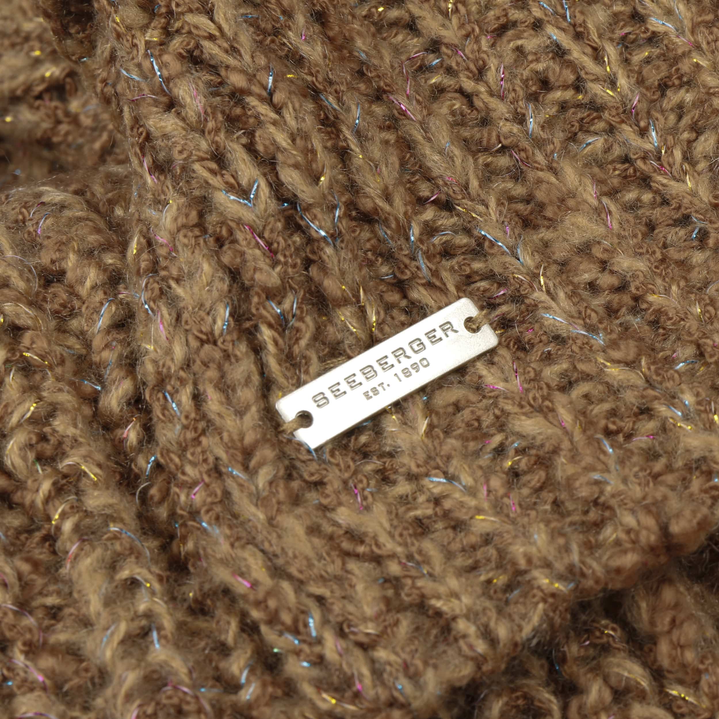 Cosy knit with textured patterns are shaped into this women’s scarf from Seeberger. The plain-coloured appearance is permeated by countless glittering dots that glisten like tiny ice crystals in the winter sun, effortlessly making the knitted scarf an eye-catching accessory. From autumn into the new year, it cosily snuggles against your neck, giving protection from the biting wind.