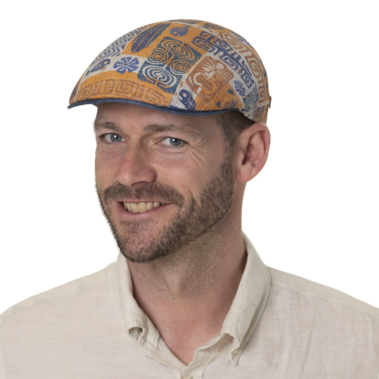 This flat cap from Alfonso D’Este expresses its summer joy both in terms of its quality and looks. Linen with a pleasant handle provides cooling heat and moisture exchange, while a cotton lining ensures good moisture absorption. The head feels comfortable beneath the handmade cap, which is fashionably adorned with a cheerful, casual coloured pattern above the plain-coloured peak.