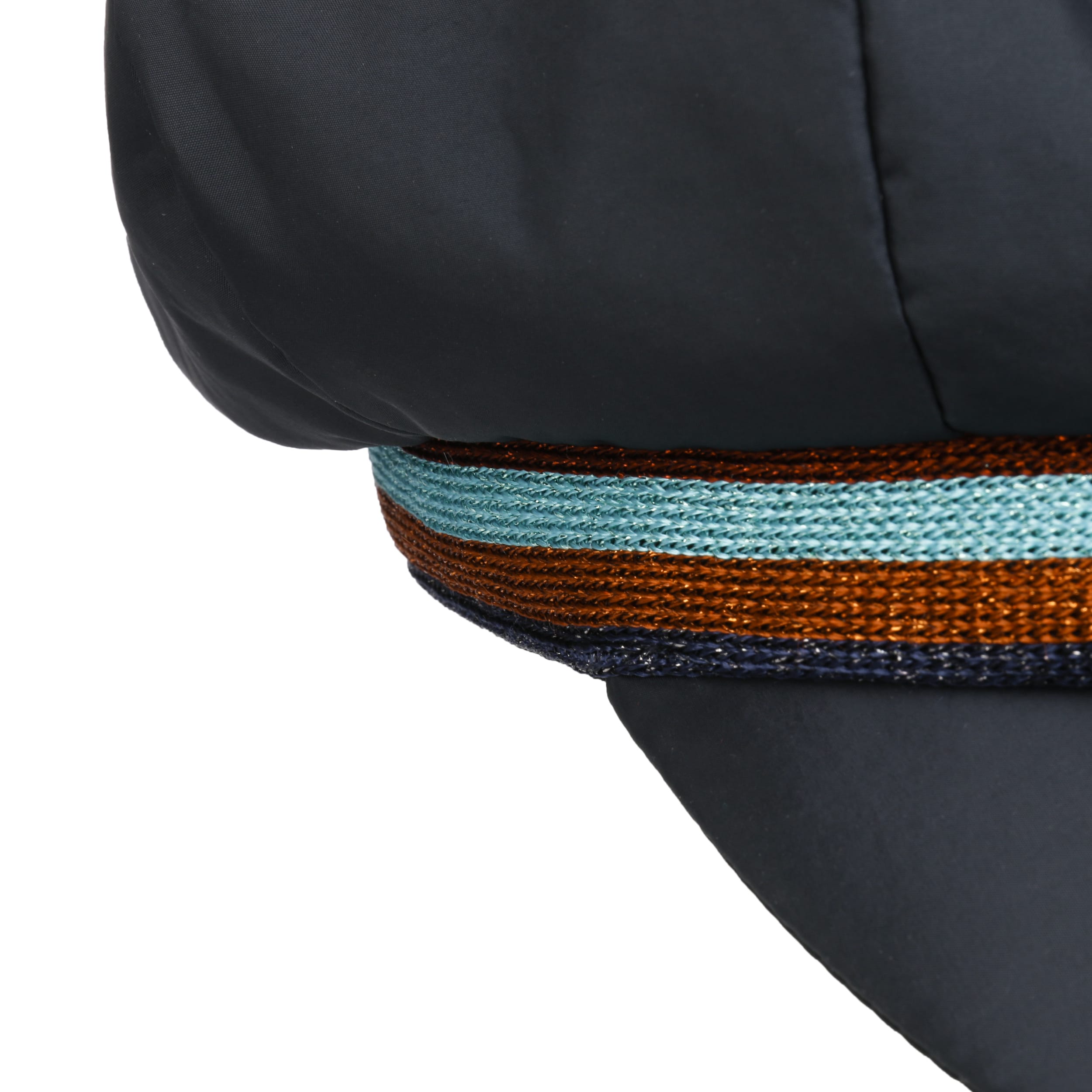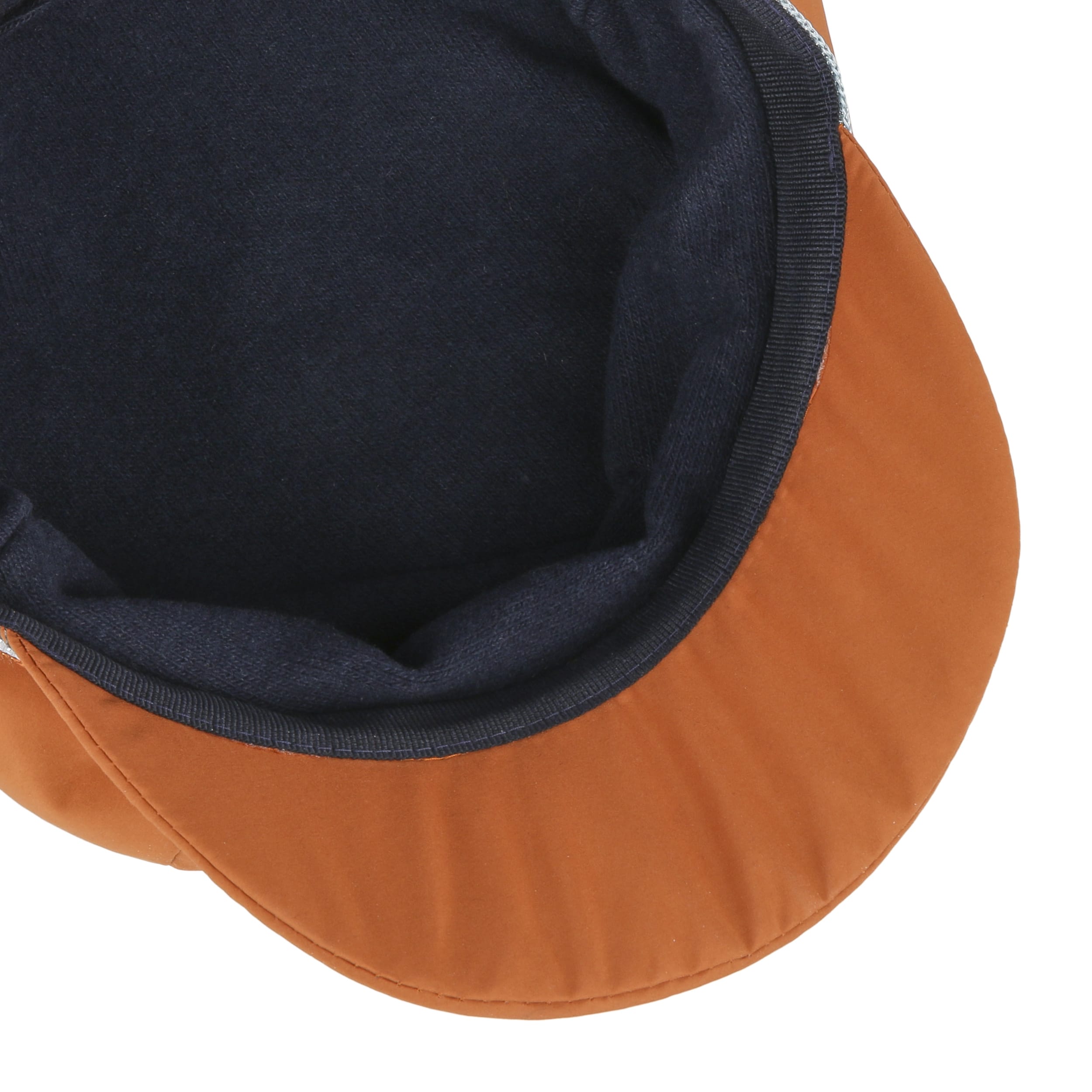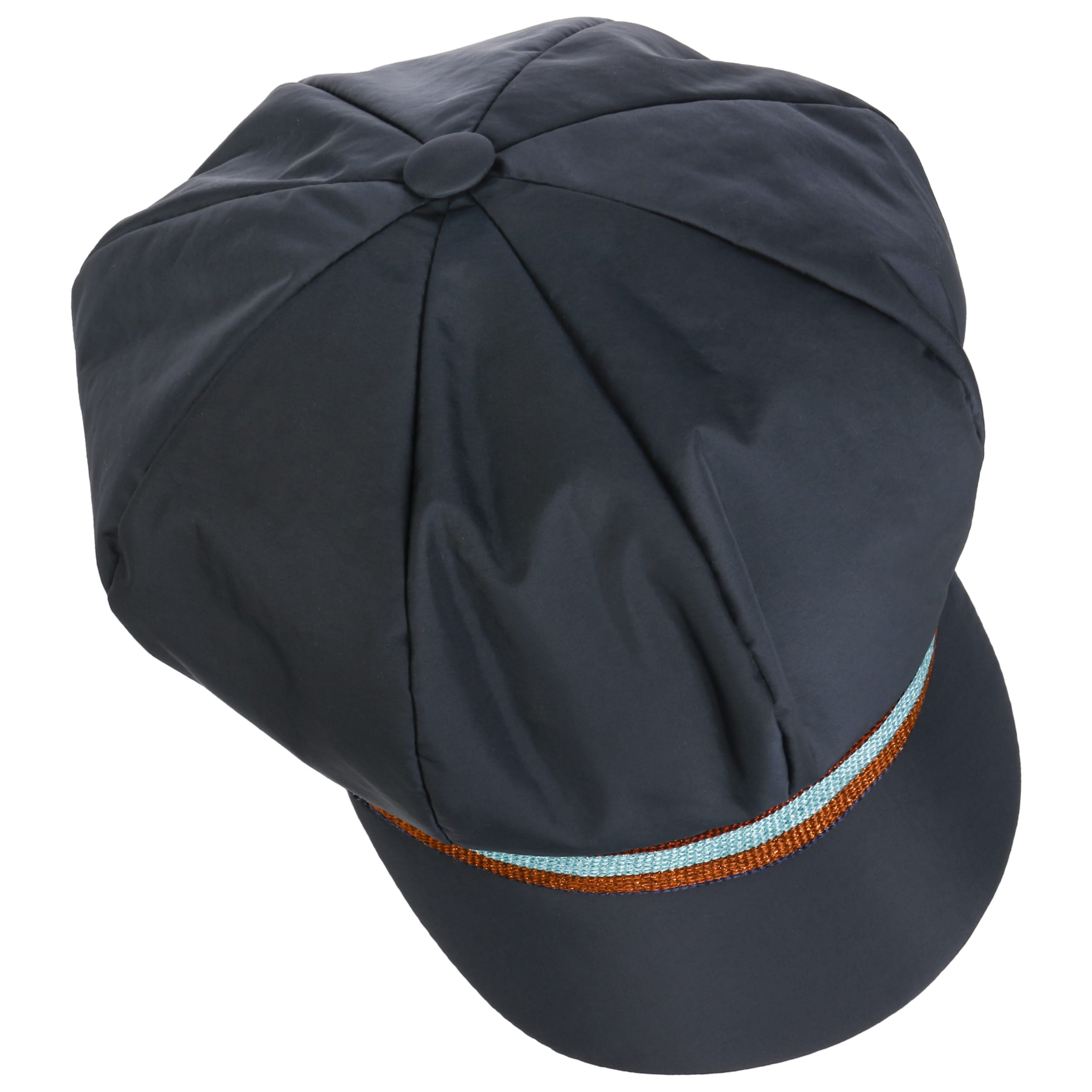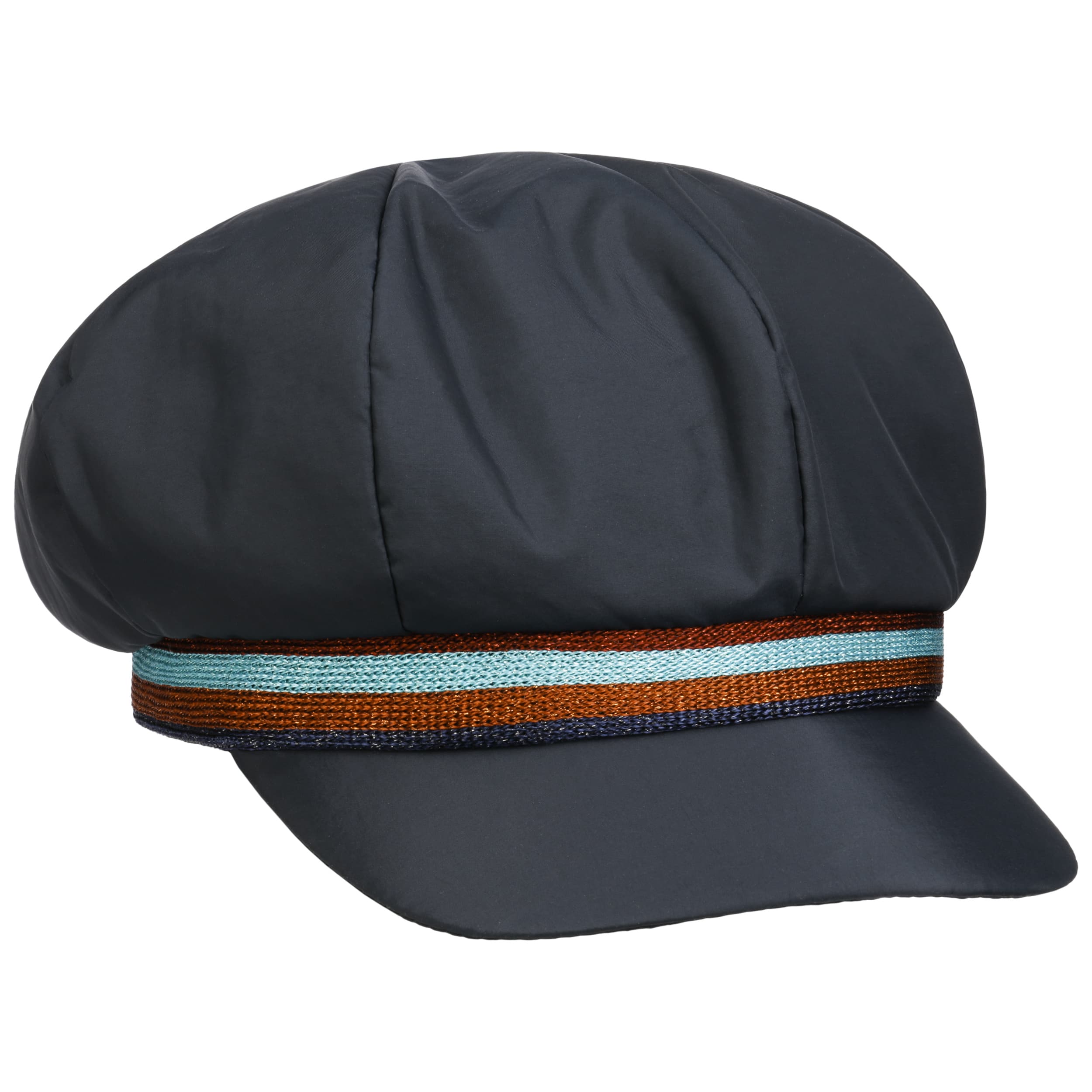 Thanks to its water-repellent properties, the trendy, Italian-made baker boy cap from bedacht stays dry and keeps its shape even in the rain. The soft material and a warming full lining ensure maximum comfort and a pleasant head climate. The playful design of the plain-coloured fabric hat with a voluminous crown and lightly curved peak is given a casual accent by a striped trim band.